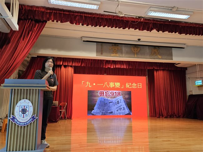 9月18日是「九‧一八事變紀念日」,本校在早會舉行升旗禮後,老師進行國旗下講話,並讓學生觀看有關「九‧一八事變」的短片,期望學生能加深對「九‧一八事變紀念日」的認識。