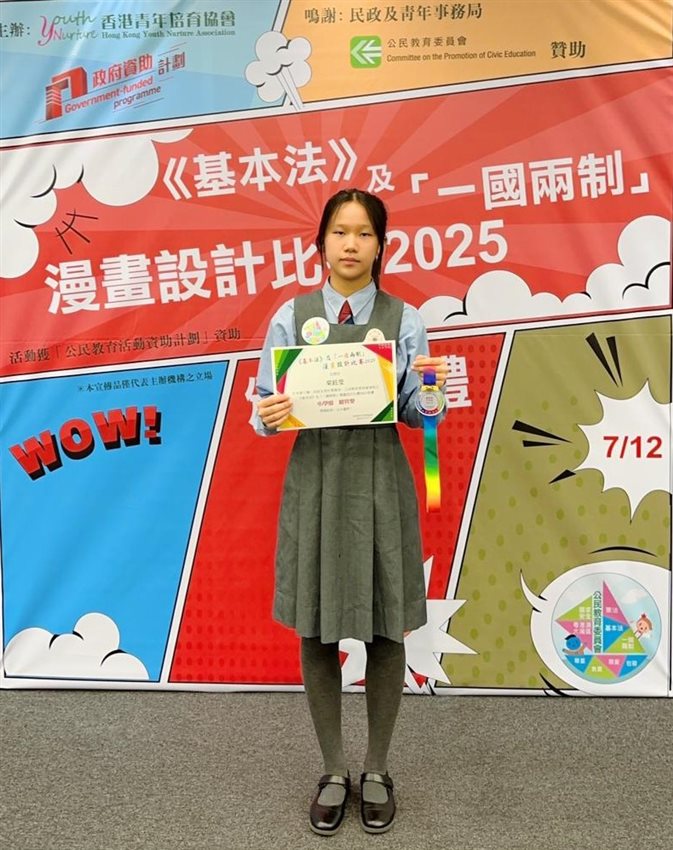 本校參加由香港青年培訓協會主辦的《基本法》及「一國兩制」漫畫設計比賽2025, 6B 梁同學獲得小學組優異獎。