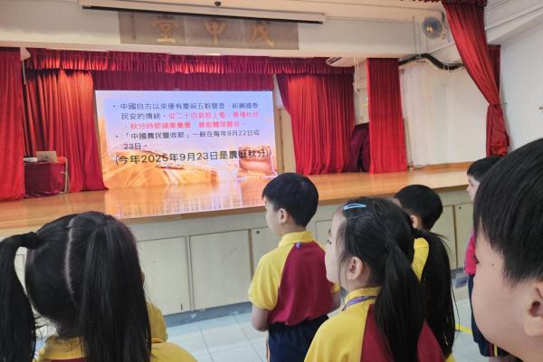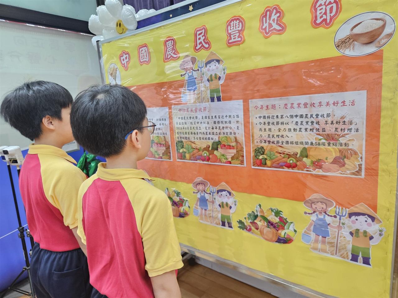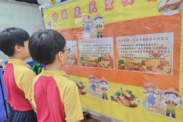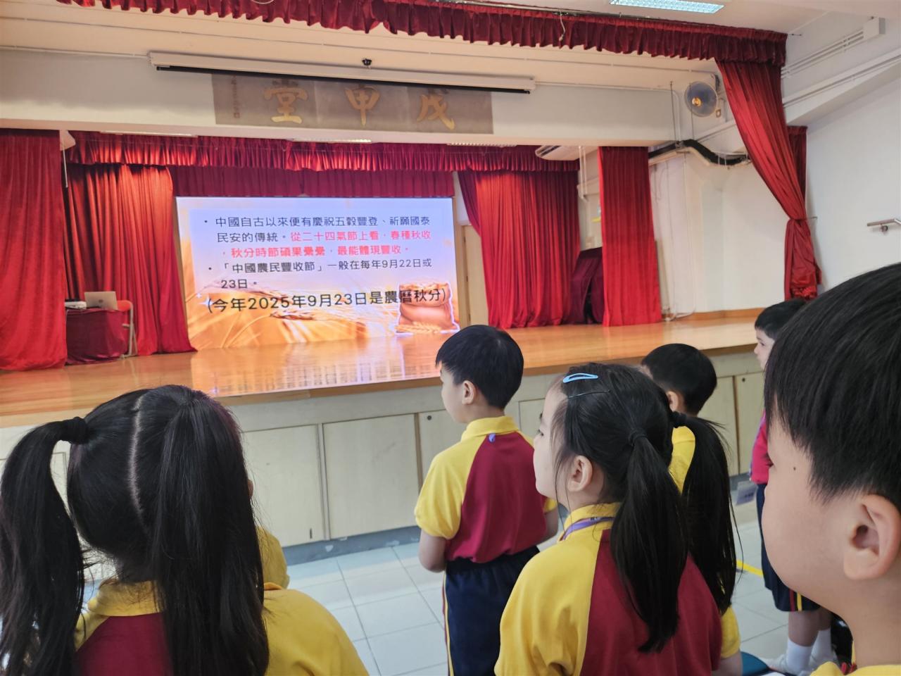 2025-09-23 「中國農民豐收節」定於每年農曆秋分日,一般在每年9月22日或9月23日。 本校在早會舉行升旗禮後,老師利用簡報向學生講解節日的來源及意義,並製作展板讓學生在小息觀看。 公民教育活動