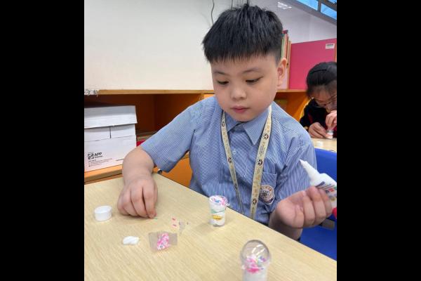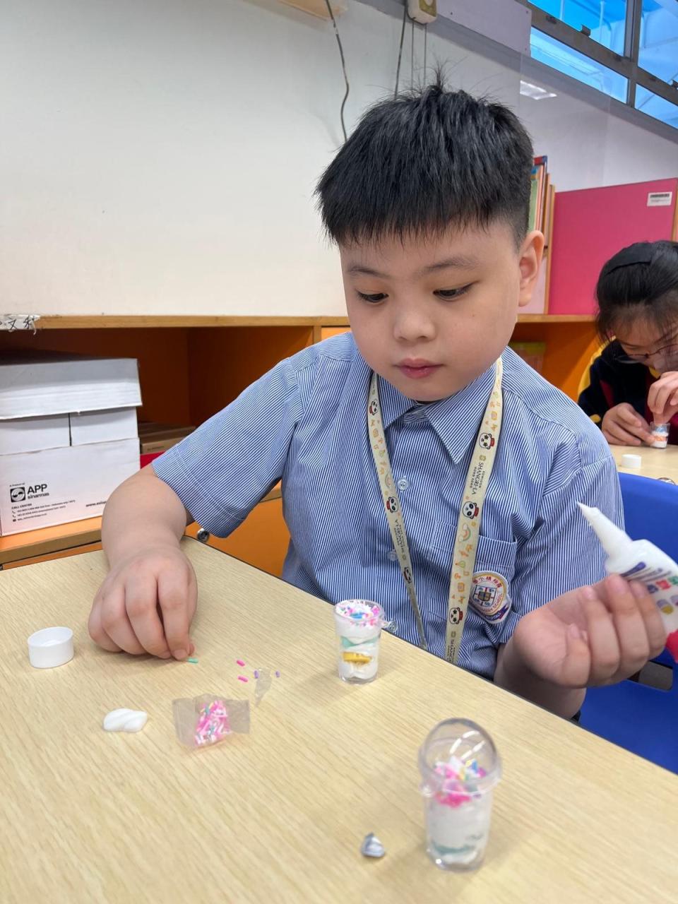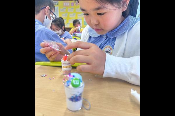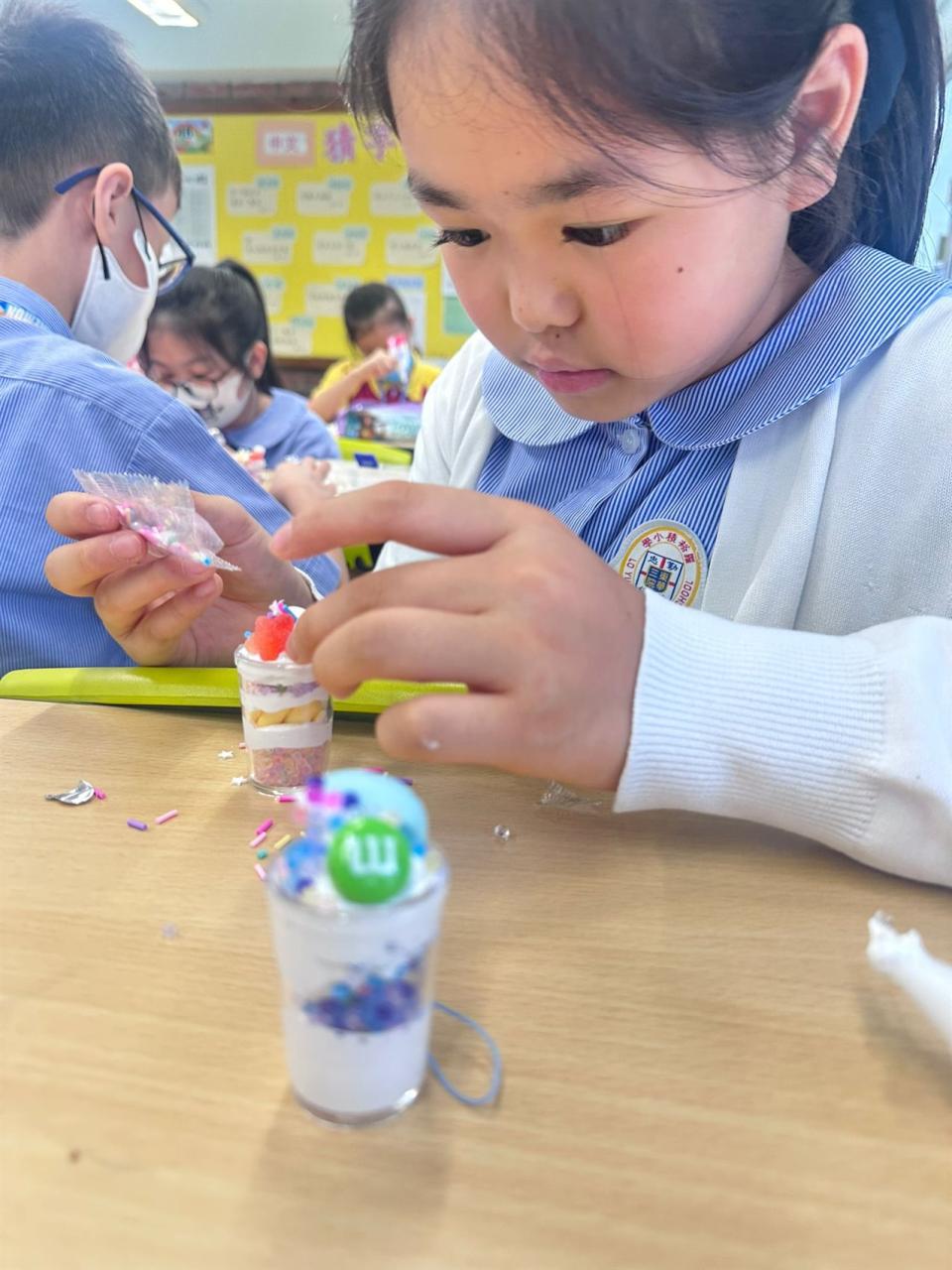 本校四年級學生於下學期活動週參與「仿忌廉卡通甜品鎖匙扣工作坊」。