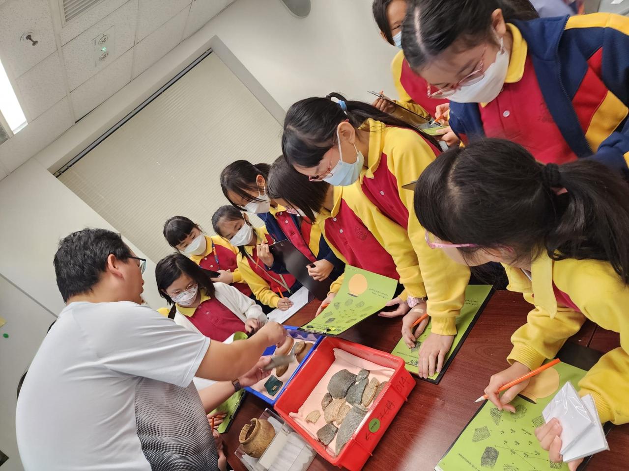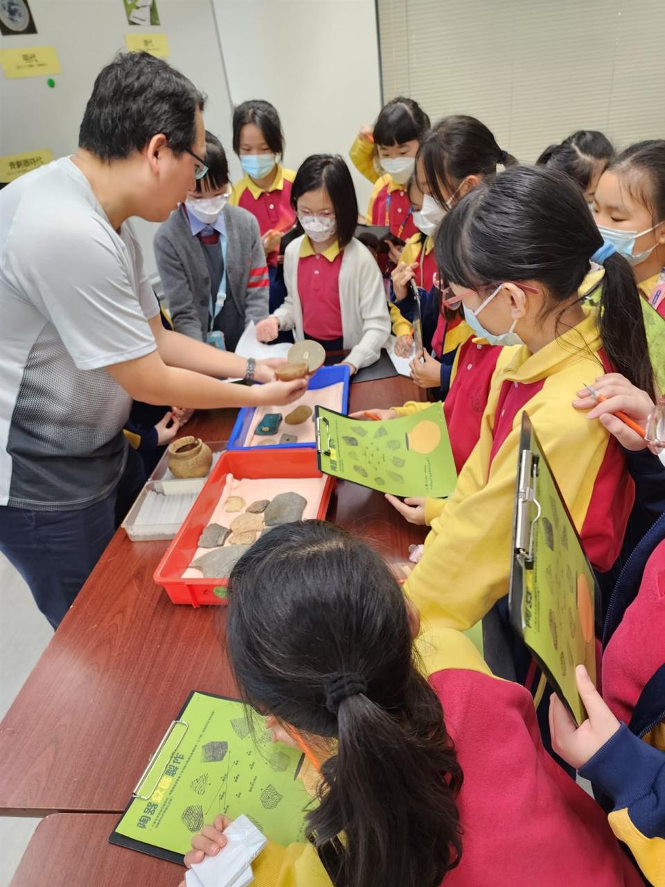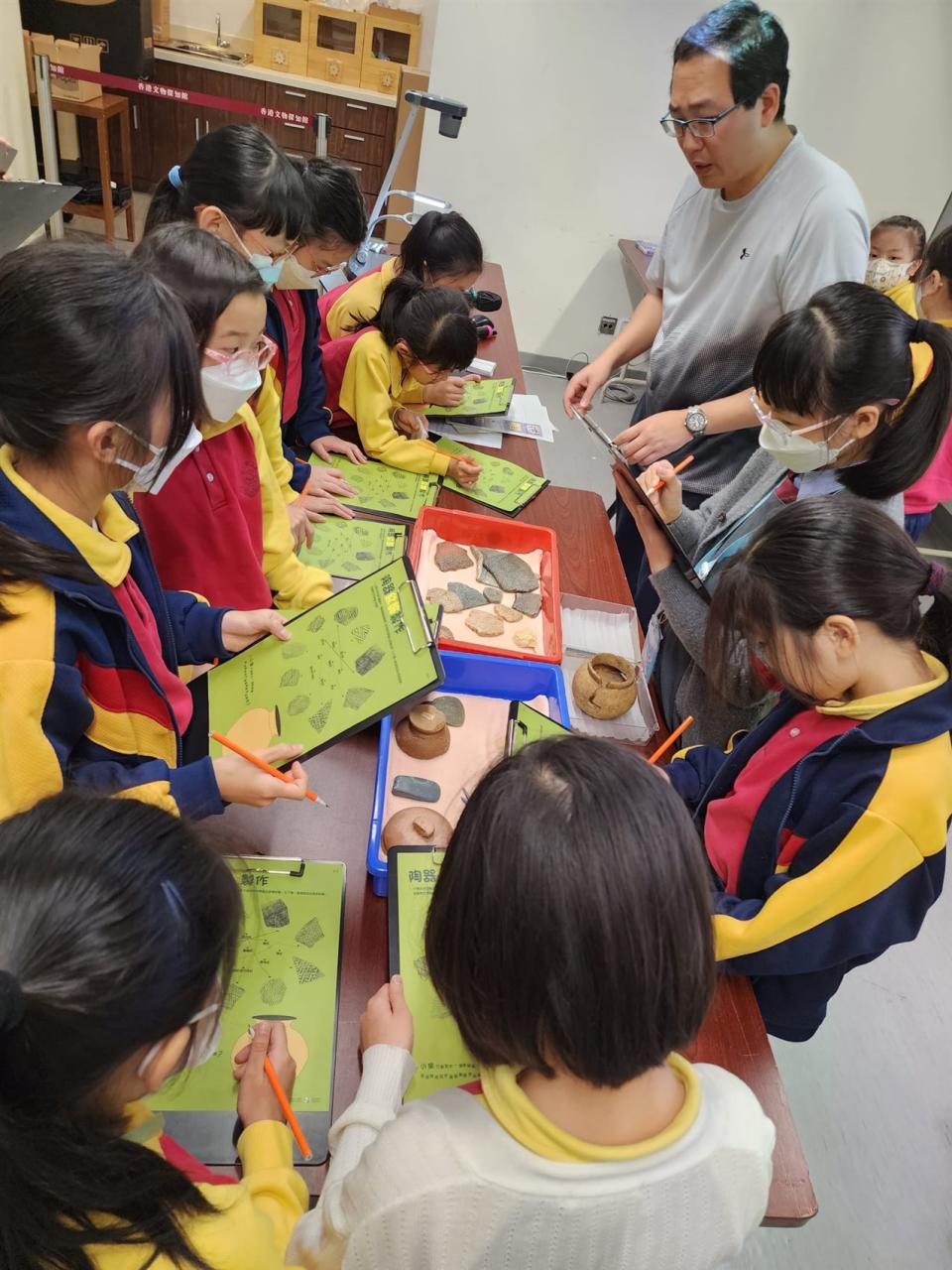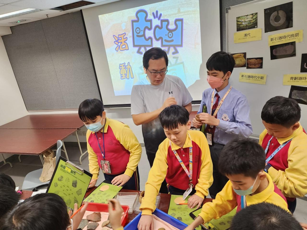 2024-02-28 四至五年級同學參加由康文署於香港文物探知館舉辦的「學校文化日計劃—考古文物多面睇」工作坊,讓學生認識考古學的基本知識、辨別文物的種類及特徵,並透過互動遊戲藉以培養學生視覺藝術的賞析能力。 視覺藝術活動