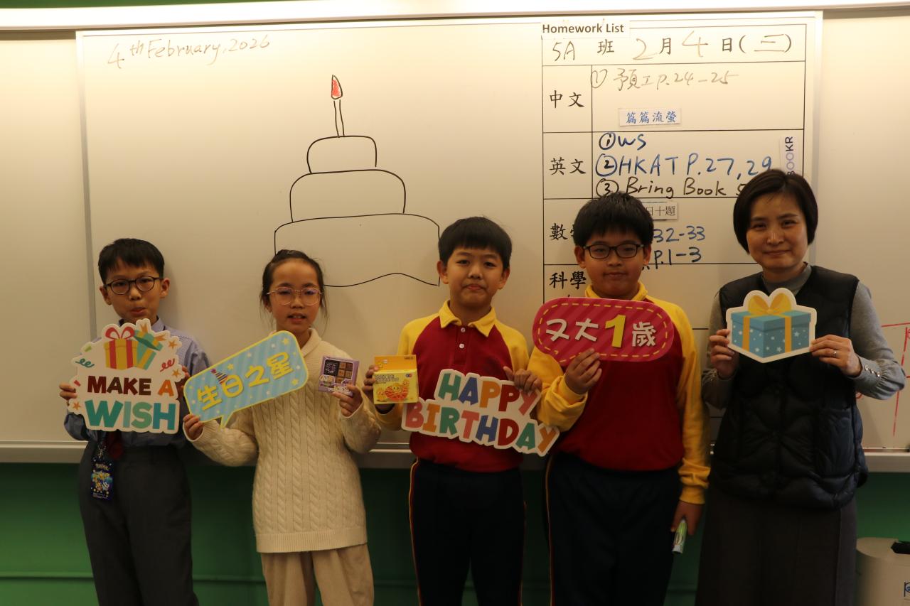 2026-02-04 為營造正向愉快的班級氣氛,促進師生關係與校園關愛文化,本年度第一次「幸福滿校園生日會」於2026年2月5日學生培育課舉行,為12月至3月生日的同學慶祝。當日生日之星可穿著喜愛服飾回校參加,分享喜悅,學校亦會送上生日禮物及祝福,讓幸福洋溢全校! 公民教育活動