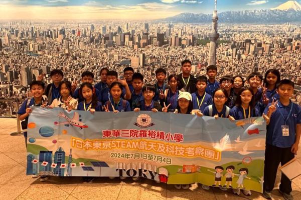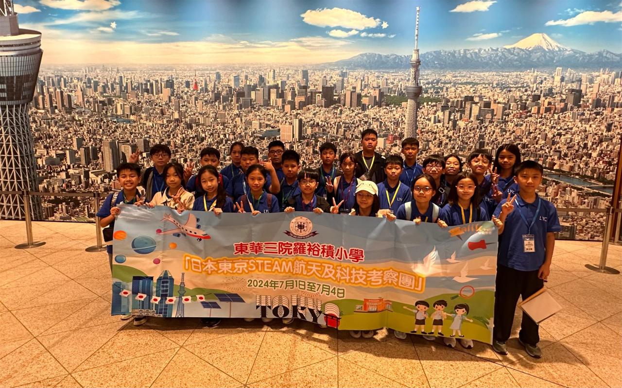 為了讓學生擴闊在航天及不同生活層面上有關STEAM科技及知識的眼界,本校於1-4/7/2024帶同24位五年級學生前往日本東京進行為期四天的學習行程,考察及認識航空發展和創新科技應用的現況。同時,本考察團期望讓學生在陌生環境中培養自理能力、獨立思考的能力、整體禮儀及合作精神;更透過學生與不同文化背景的人交流,深入了解不同的價值觀,培養尊重、包容和全球公民意識。 四天的學習行程包括前往航空科學博物館、JAXA筑波宇宙中心、東京Skytree晴空塔、川崎重工的機器人展廳、日本科學未來館、東京幻視藝術館、TEPIA先端技術館、參訪早稻田大學、和果子體驗及台場Diver City。同學們表示在這四天的學習行程中學到了很多有關STEAM及航天科技的知識,經歷十分奇妙充實,可説是獲益良多。日後,他們説會把學習到的知識運用到生活中,利用科學幫助更多的人及解決社會更多的問題。