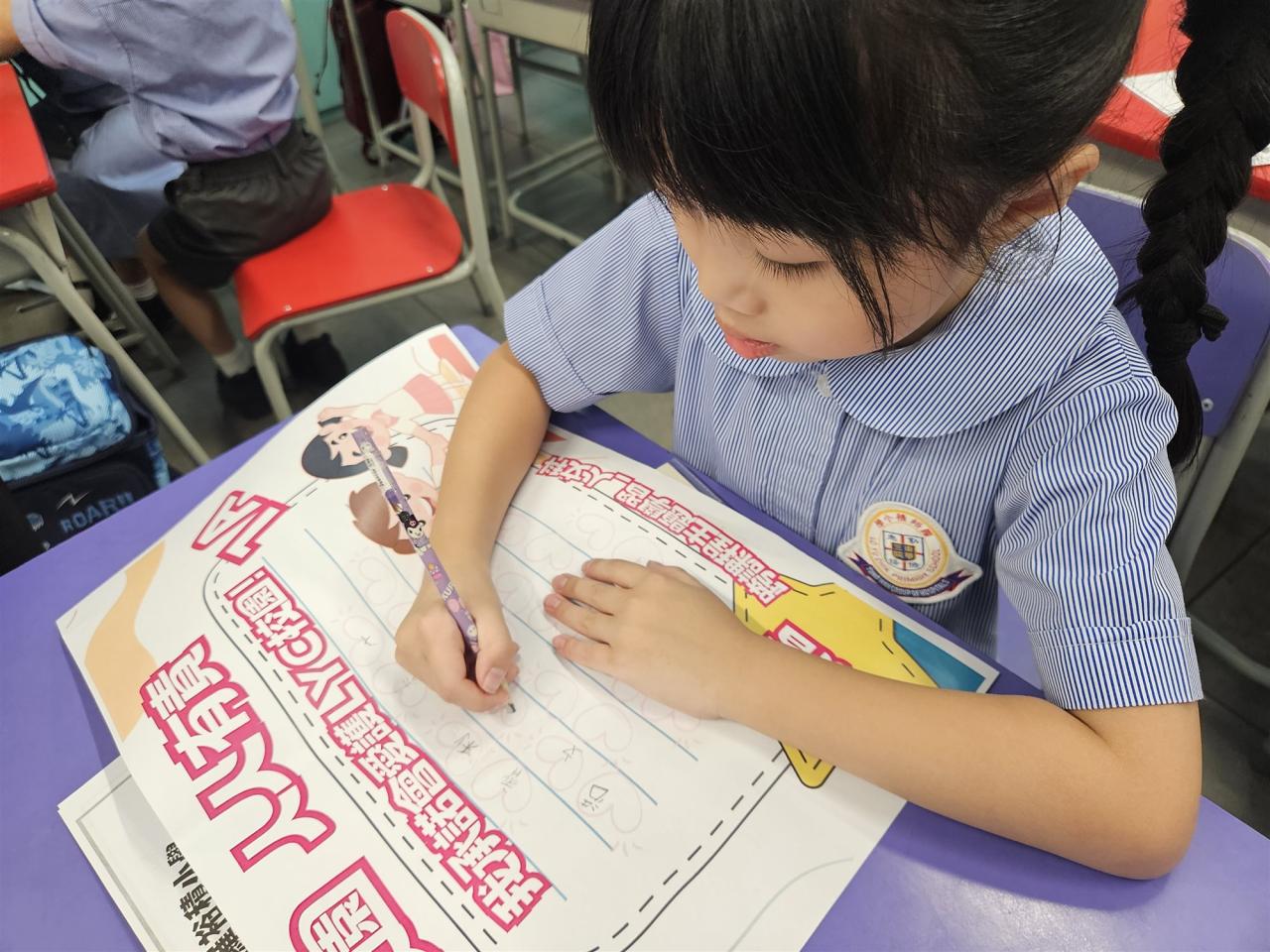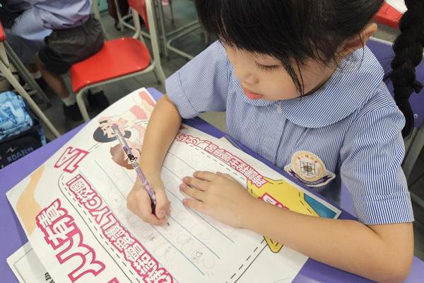 整個主題學習透過閱讀、遊戲、人文科學習、校園遊覽、聽講座、看展覽等多元化活動,加深一年級小朋友們對羅裕積小學的認識,增加他們對學校的歸屬感,讓他們快樂地投入校園生活,樂於做個好學生。9月19日,一年級學生在人文科老師的導覽下,邊遊校園,邊完成各式「打卡」任務,很是樂在其中。