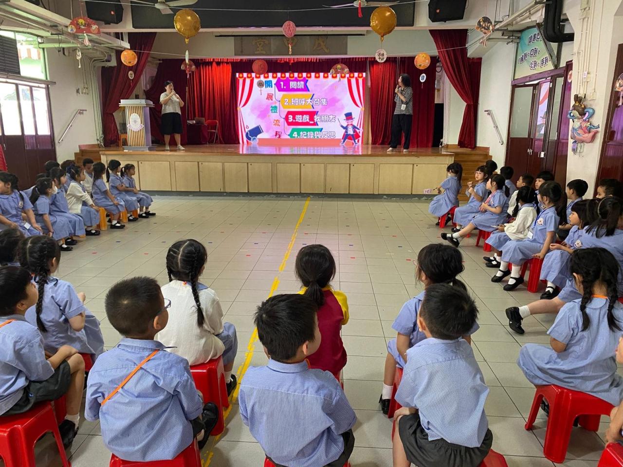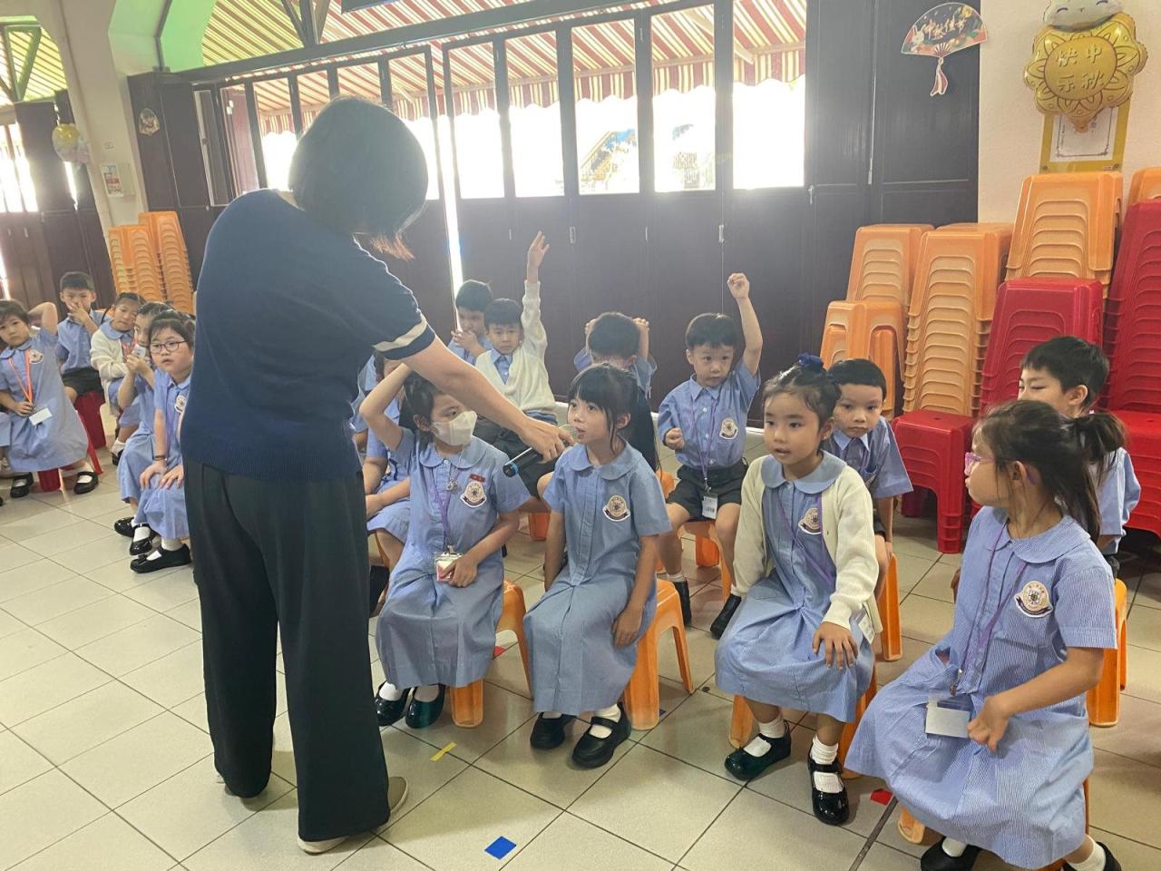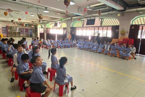 為了增加一年級學生對學校的歸屬感,讓他們快樂地投入校園生活,一年級跨課程主題學習「我愛校園」活動持續進行中。9月26日那天一年級學生齊聚禮堂,開展級本活動。同學們都很喜歡圖書館主任梁老師和學術主任陳老師講的有趣繪本故事《我真的要自己一個人上學嗎?》,而老師們都很欣賞各班同學在「班呼大召集」中的表現,同學們都能精神抖擻地演繹班呼,為自己班加油打氣。最後還玩了「找朋友」的遊戲,透過活動不少人成功認識了新朋友。