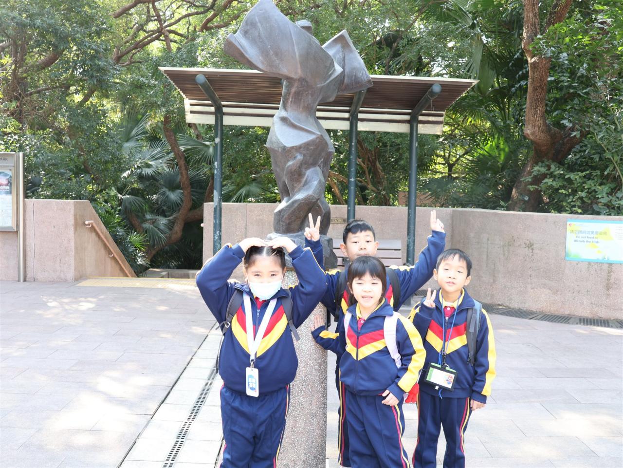小二學生先在旅遊車上遊覽油尖旺社區,再進入九龍公園參觀,體驗芳草碧綠、水聲潺潺的悠閒之境。
