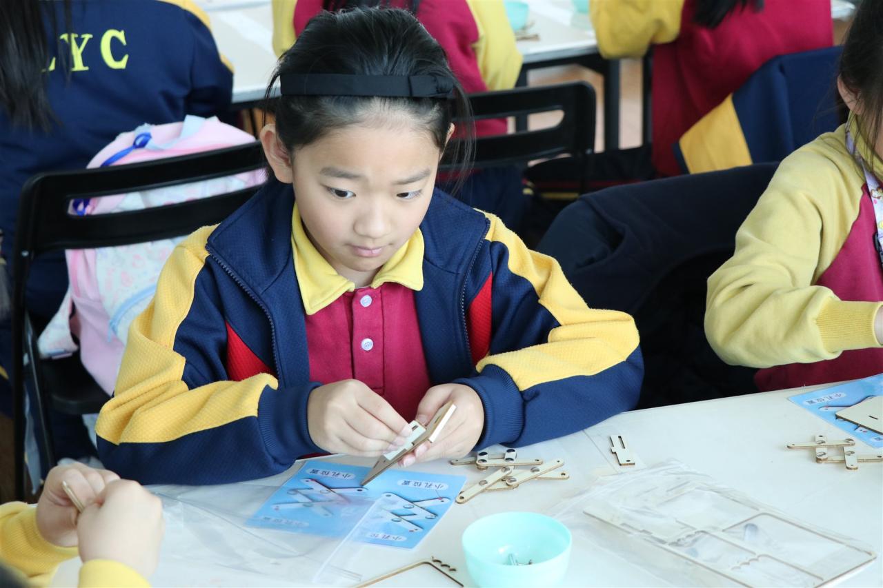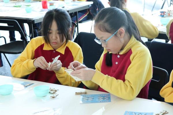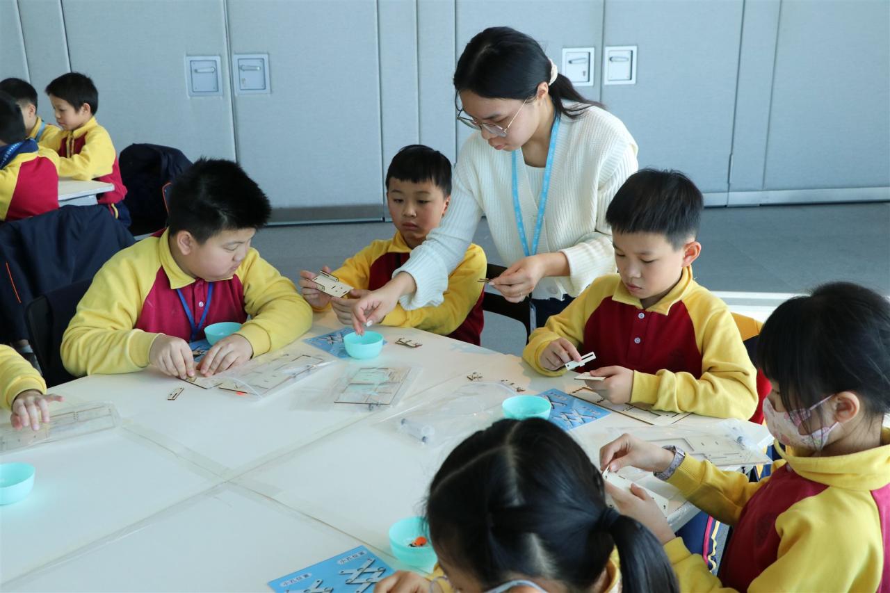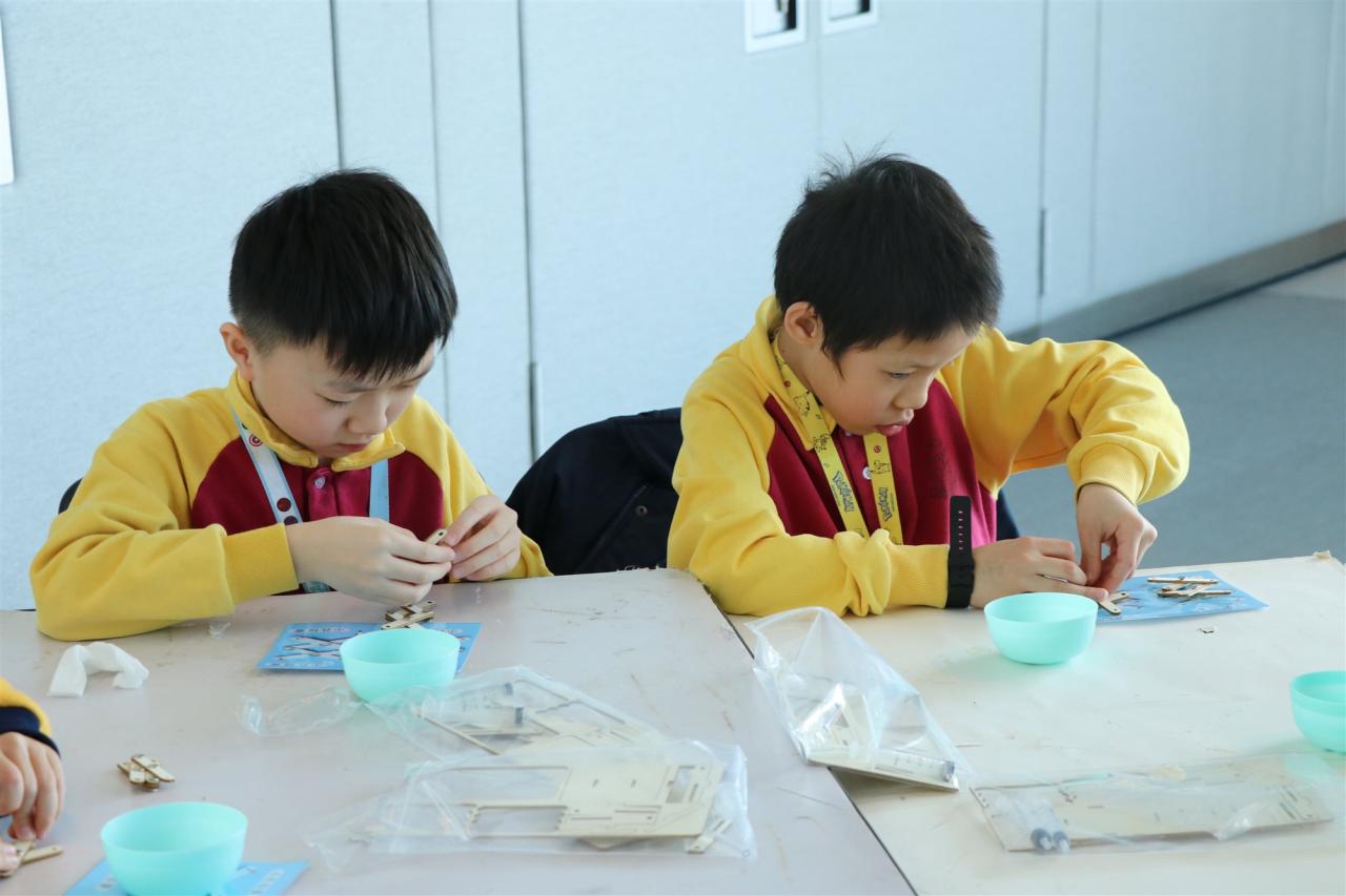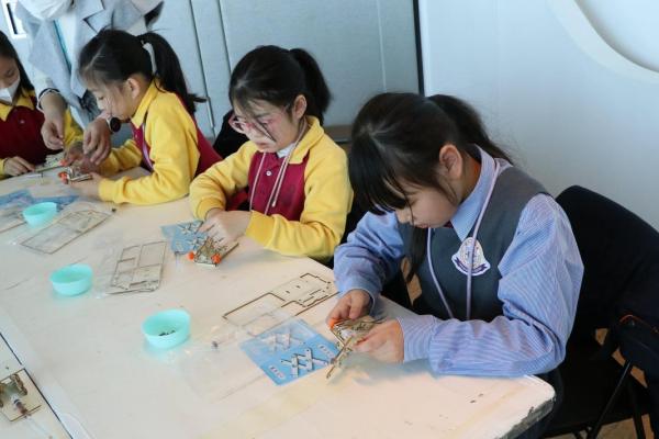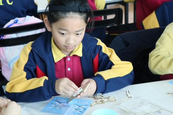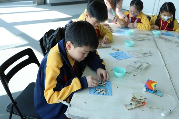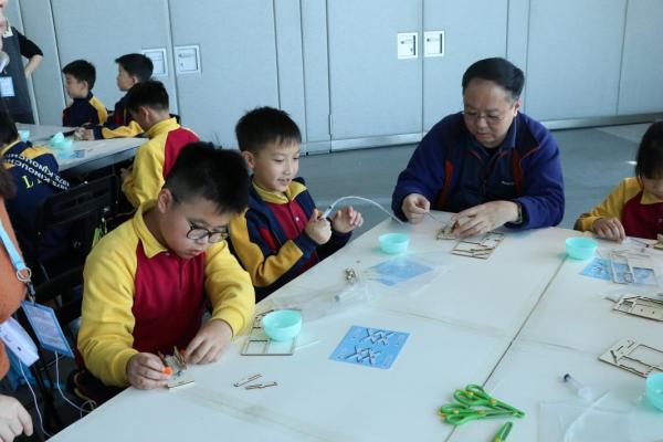 三年級同學到訪天際100參與液壓升降台工作坊,學生透過製作模型學習液壓推動原理,提升學生對科學的認識。