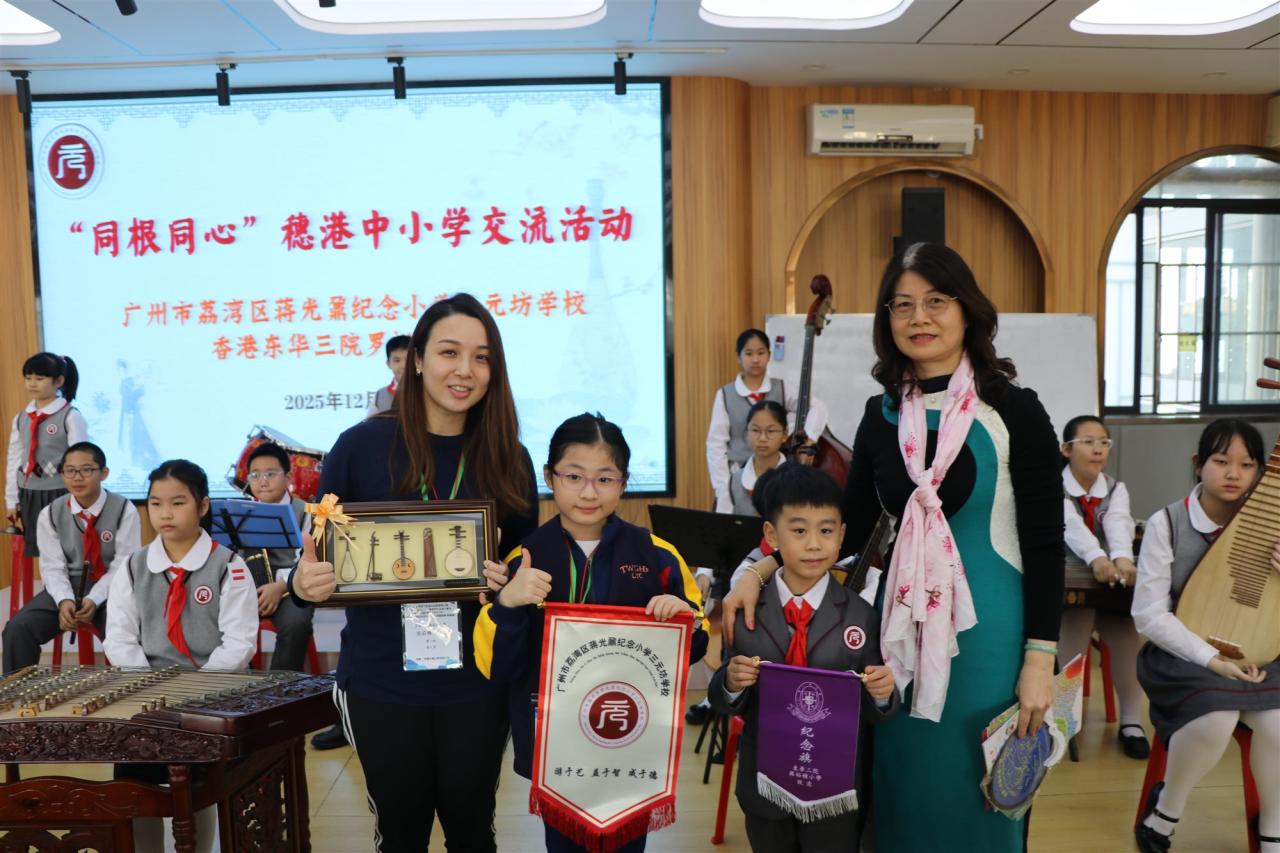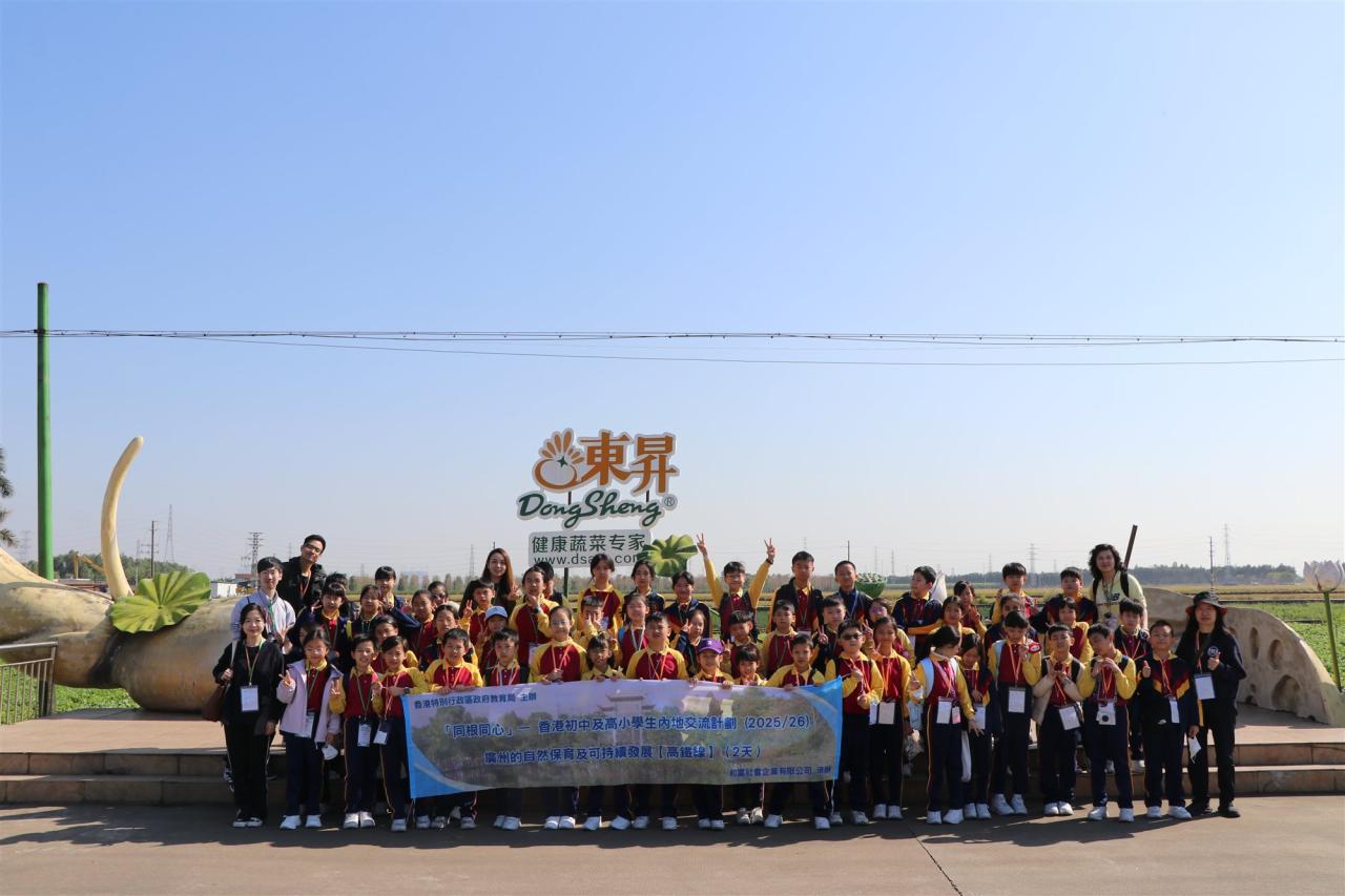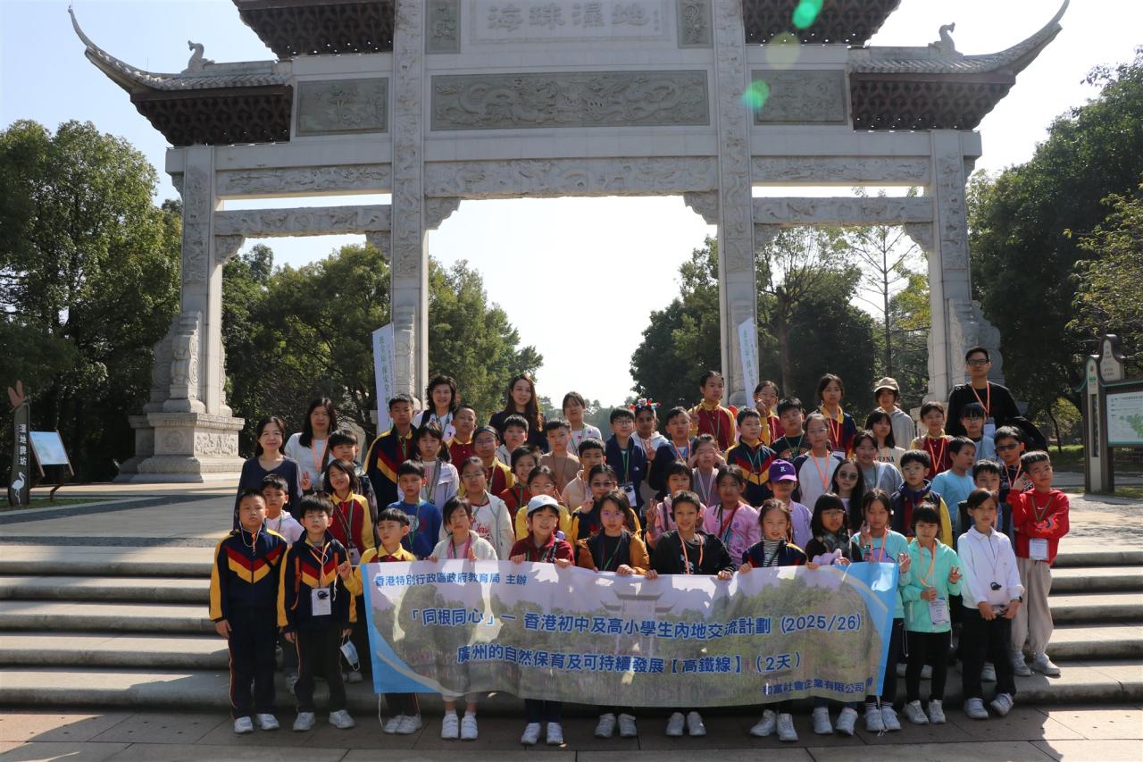 本校小四學生參與了由教育局資助的「同根同心」內地交流計劃,前往廣州展開兩天考察之旅。學生除了走訪環保企業、濕地公園及有機農場,見證國家在自然保育與可持續發展的成就外,更特別探訪了廣州市荔灣區蔣光鼐紀念小學三元坊學校。透過參與特色課堂與師生互動,兩地學生建立了深厚友誼。這趟旅程讓同學在實地考察中體悟國家發展與文化傳承,有效強化了國民身份認同與愛國情懷。