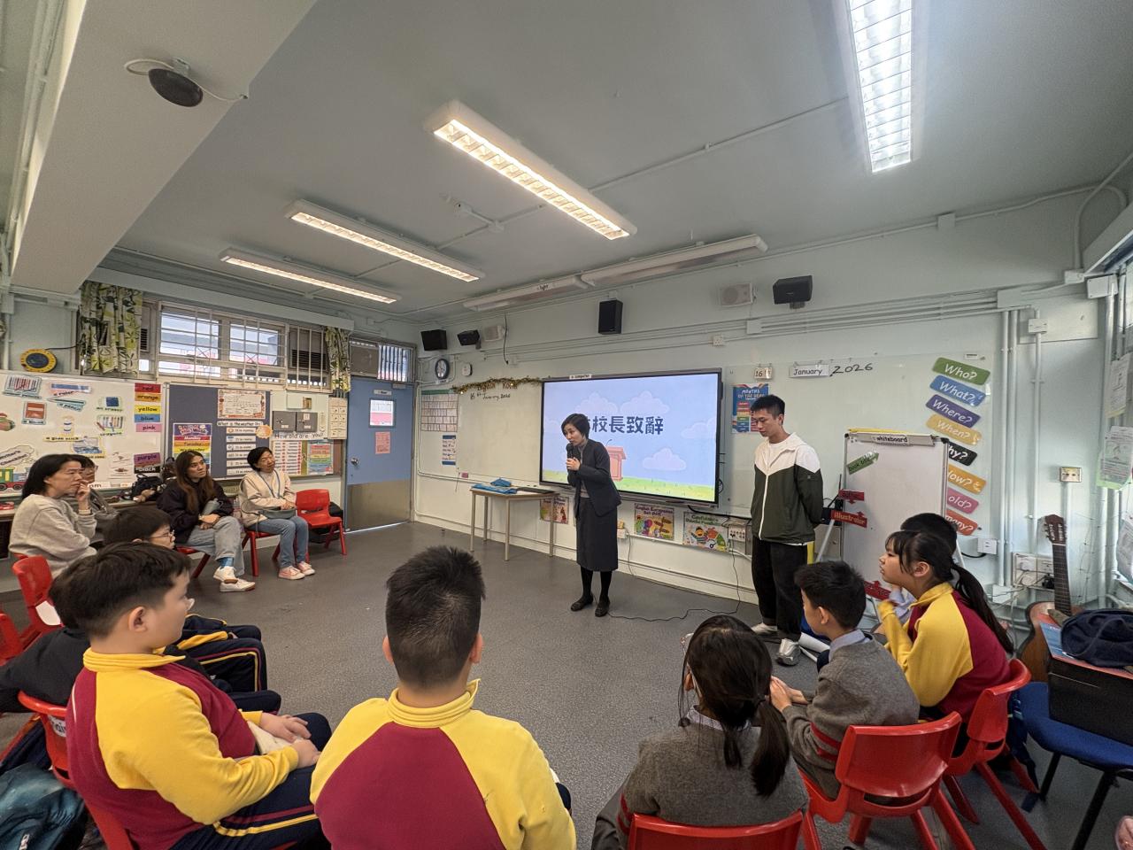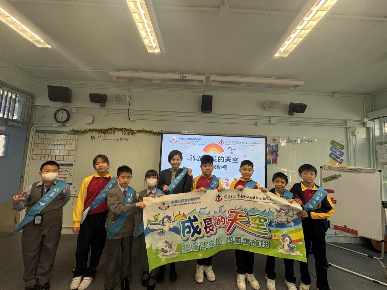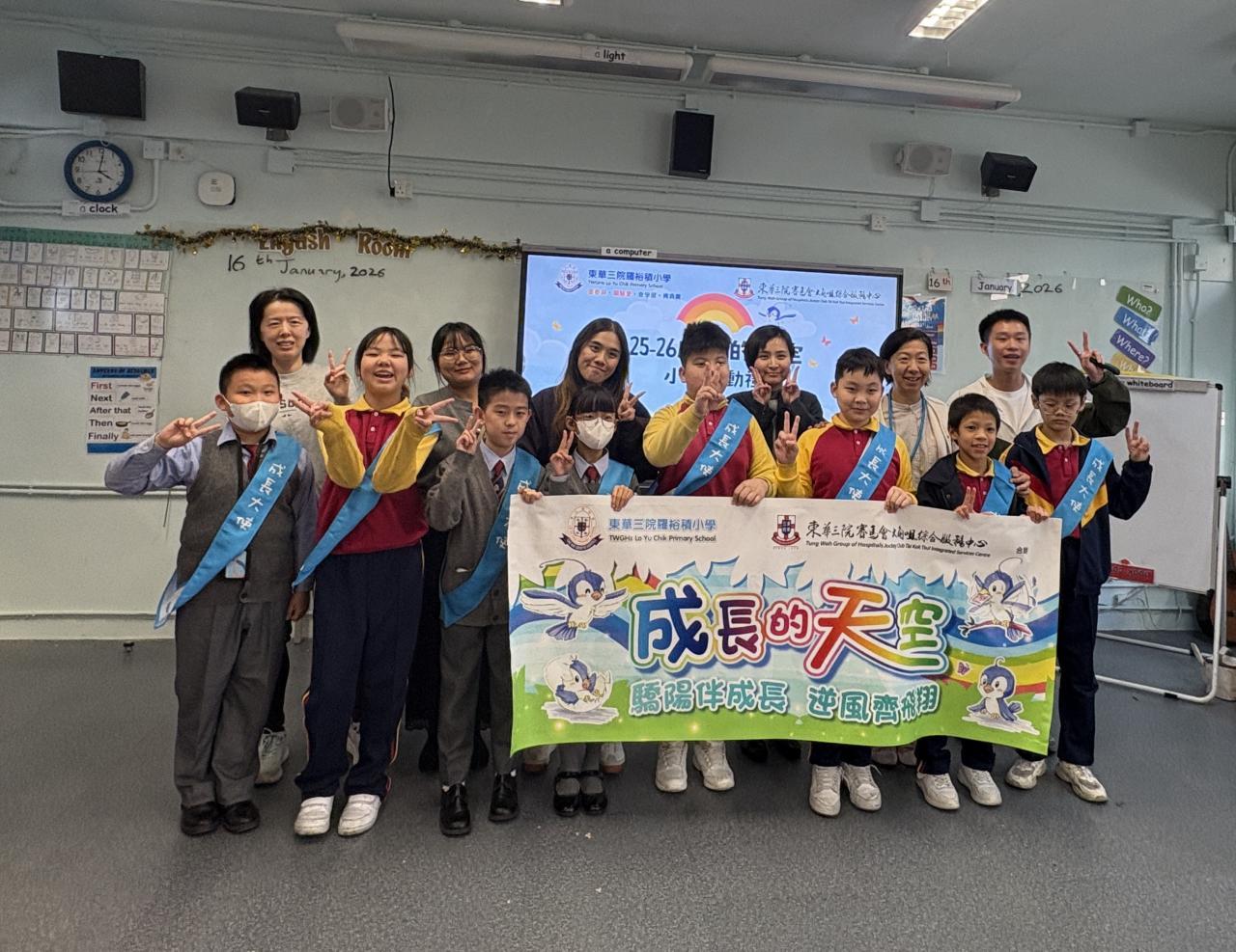 本校與東華三院賽馬會大角咀綜合服務中心協辦的成長的天空計劃,為期三年。是次舉辦迎新啟動禮讓家長和學生了解「成長的天空計劃」的理念及活動,增強學生的參與及投入感。當日林校長、家長們、社工共聚一堂,共同參與啟動儀式。全部學生及家長專心聆聽導師的介紹,並積極參與啟動禮活動。