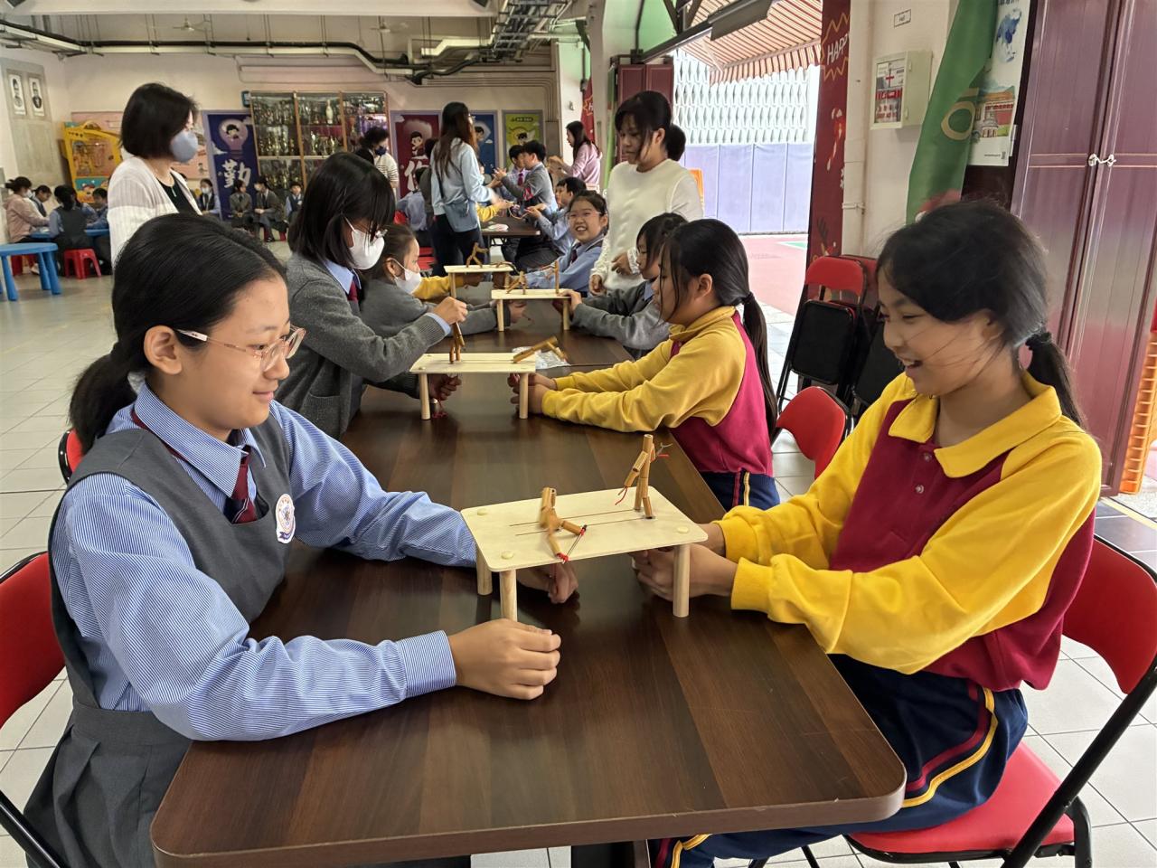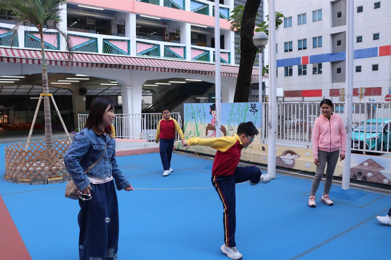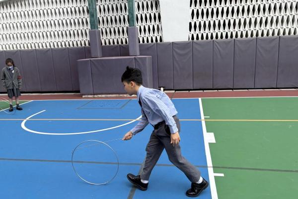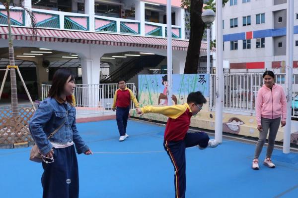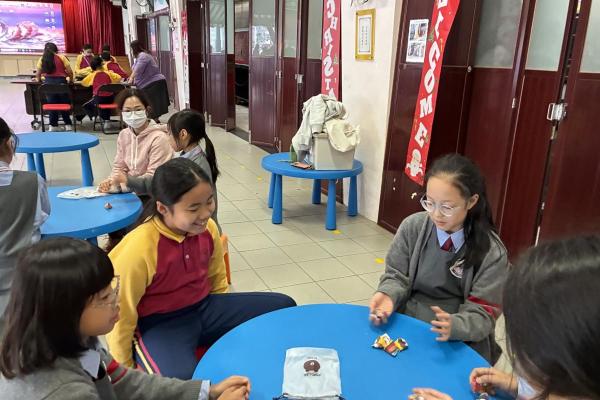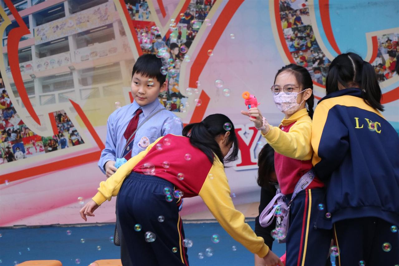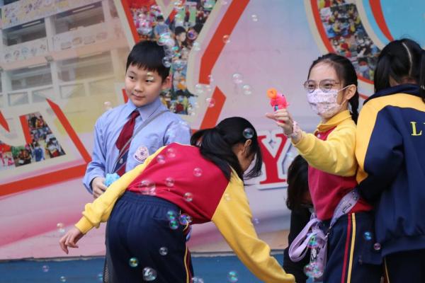 12月12日是本校四年級跨課程主題學習《香港今昔》的「懷舊遊戲日」。老師們在操場和禮堂設置了不同的童玩區,讓同學們體會舊有玩具的樂趣。在家長義工的協助下,同學們進行了精彩的竹節人大戰和陀螺比賽,玩了抓子、翻花繩,還嘗試了跳橡皮筋和滾鐵圈,而最受歡迎的要屬泡泡機了,看着一顆顆滿載小朋友笑語的彩虹泡泡愈飛愈遠,愈飛愈高,大家都忍不住雀躍歡呼。 透過「懷舊遊戲日」,同學們發現只要肯發揮創意,動手做一做,大家都能自製出有趣的小玩具。