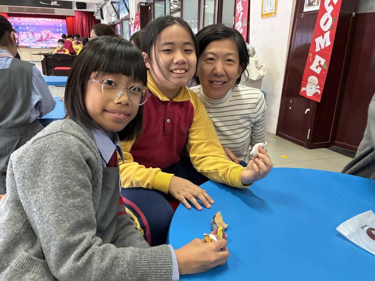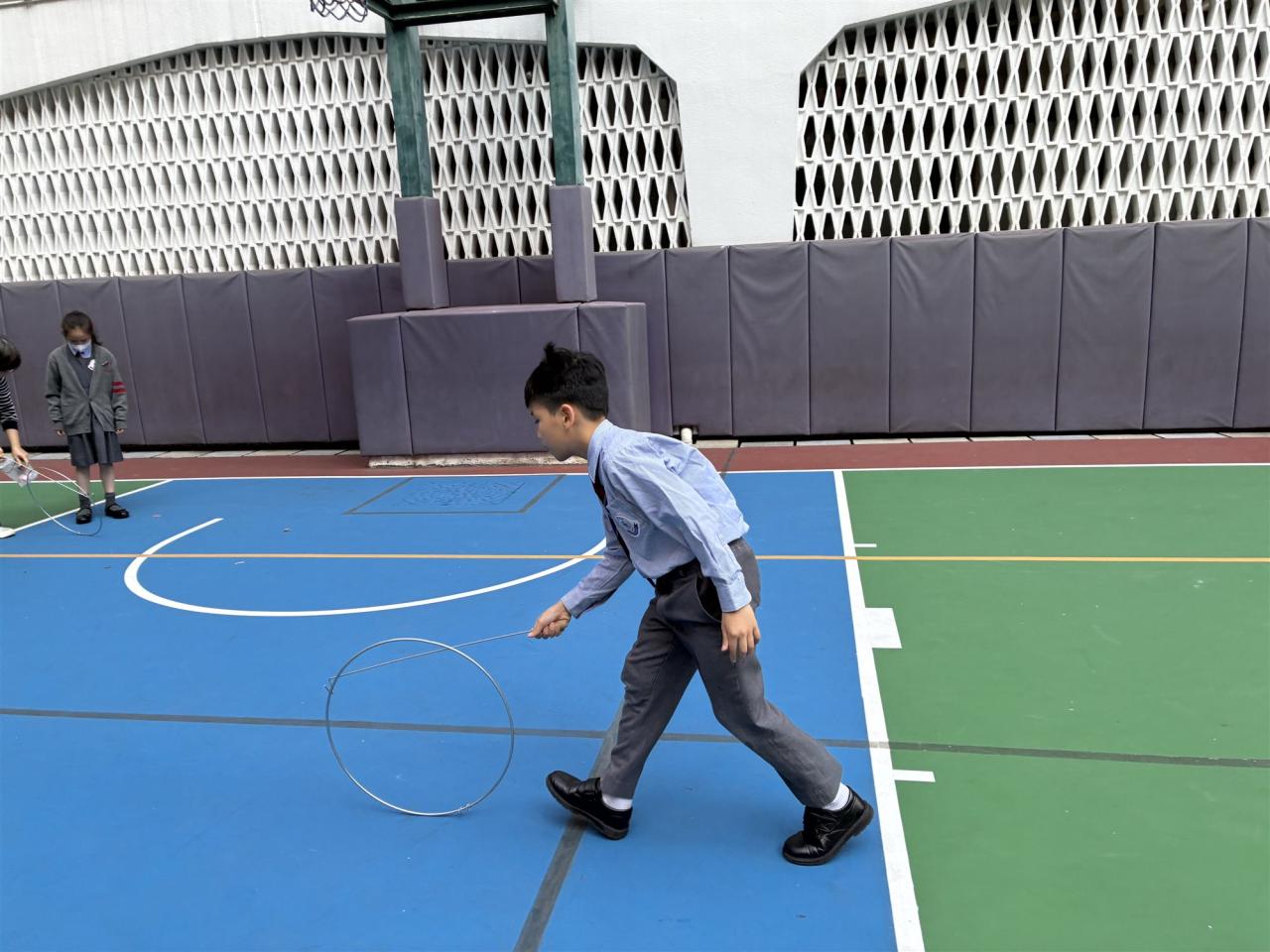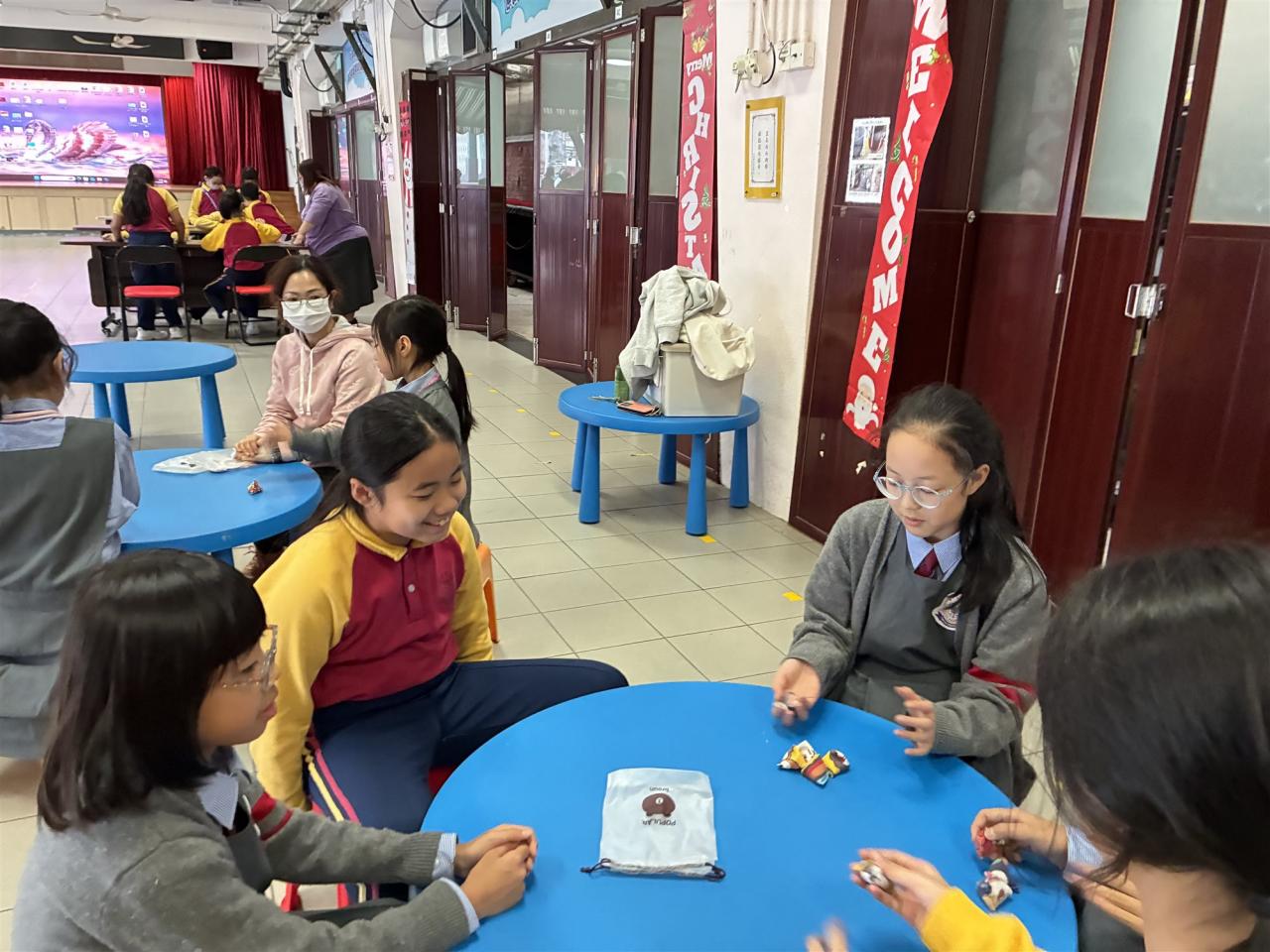 12月12日是本校四年級跨課程主題學習《香港今昔》的「懷舊遊戲日」。老師們在操場和禮堂設置了不同的童玩區,讓同學們體會舊有玩具的樂趣。在家長義工的協助下,同學們進行了精彩的竹節人大戰和陀螺比賽,玩了抓子、翻花繩,還嘗試了跳橡皮筋和滾鐵圈,而最受歡迎的要屬泡泡機了,看着一顆顆滿載小朋友笑語的彩虹泡泡愈飛愈遠,愈飛愈高,大家都忍不住雀躍歡呼。 透過「懷舊遊戲日」,同學們發現只要肯發揮創意,動手做一做,大家都能自製出有趣的小玩具。