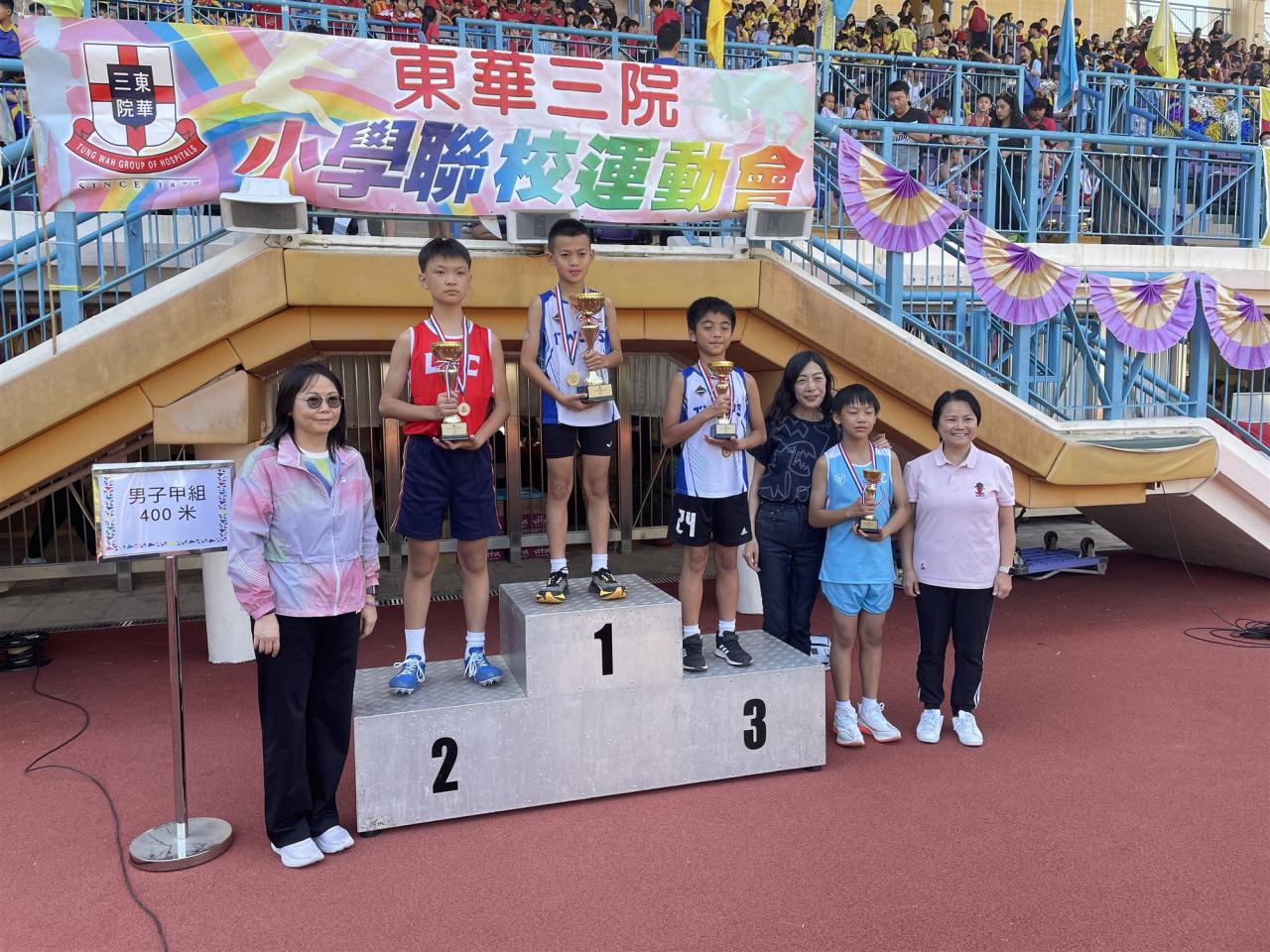 本校於2024年10月24日參加東華三院小學聯校運動會,獲得男丙60米冠軍、男甲400米亞軍、男乙跳高季軍、女甲200米殿軍、女特100米殿軍及男特200米殿軍。