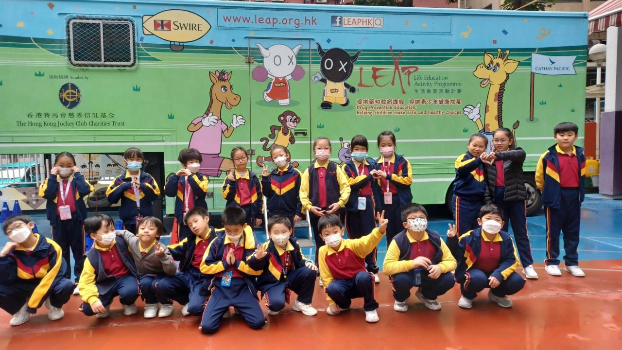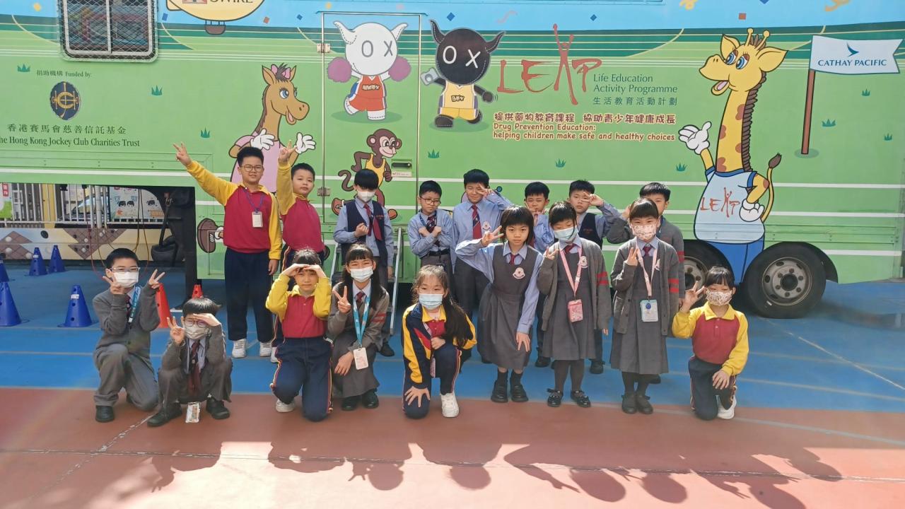 2024-02-02 學生們登上「哈樂車」,學習有關生活教育的知識。在這個活動中,學生們學習了關於身體知識、食物營養、藥物知識以及社交情緒學習這四個不同範疇的知識。透過以故事為基礎的課程,學生們培養了健康生活觀念和正確使用藥物的態度。 公民教育活動