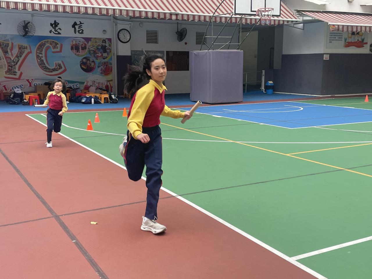 田徑校隊為本校陣容最強大的體育校隊,隊員會因應不同的才能,在不同的範疇各展所長,例如跑項、跳遠、擲壘球等。學校亦會安排隊員參與各項田徑比賽,包括九龍南區小學校際田徑比賽、東華三院小學聯校運動會及友校接力邀請賽,務求使隊員從比賽過程中學習,表現出自信積極的態度。