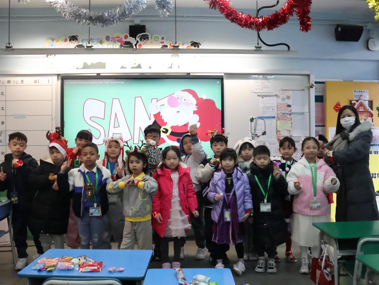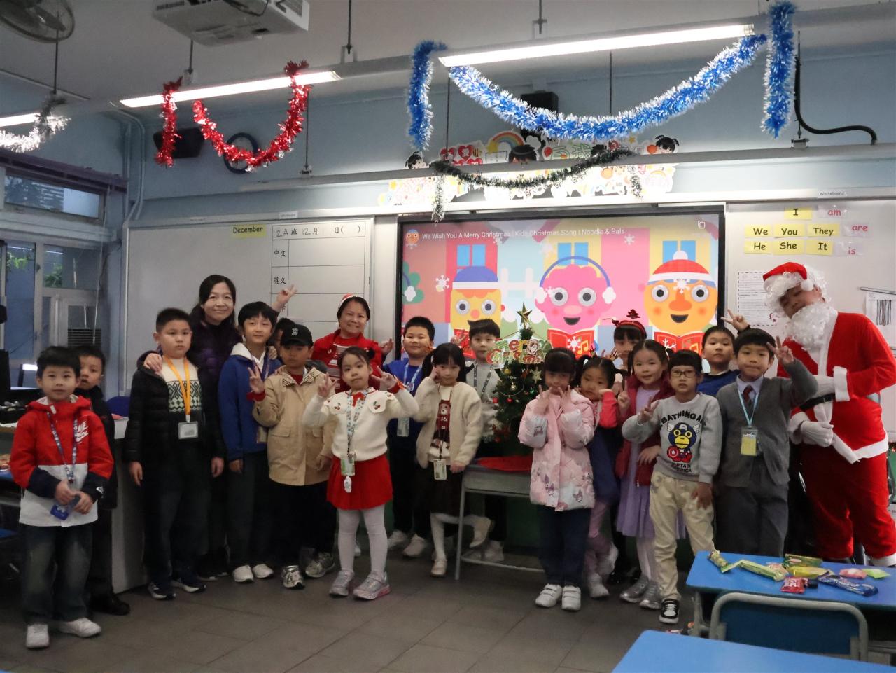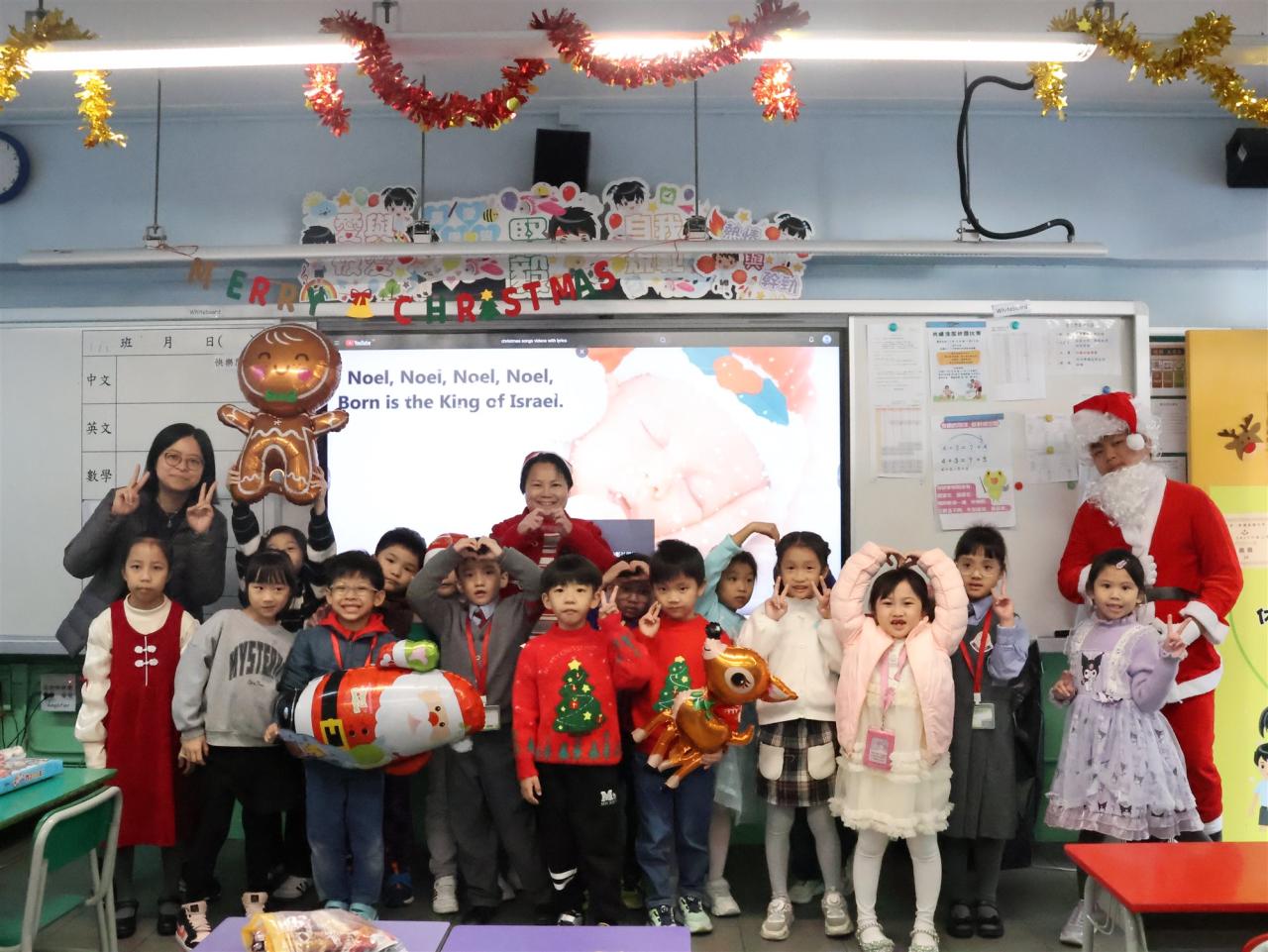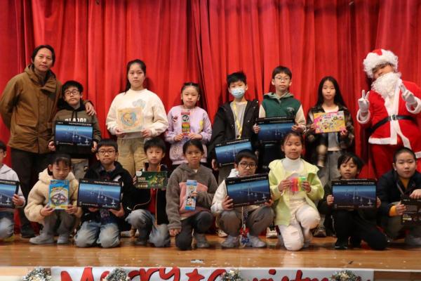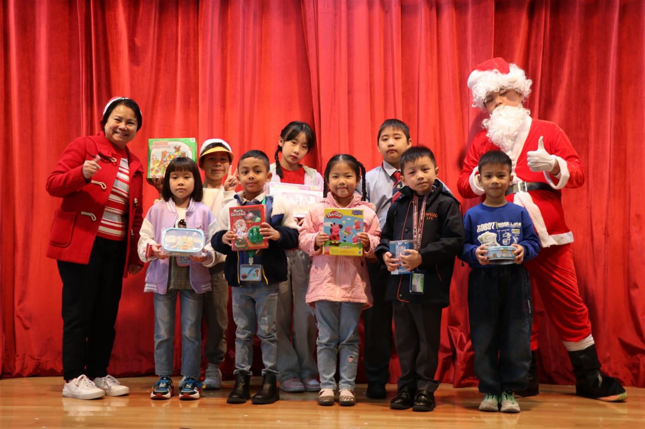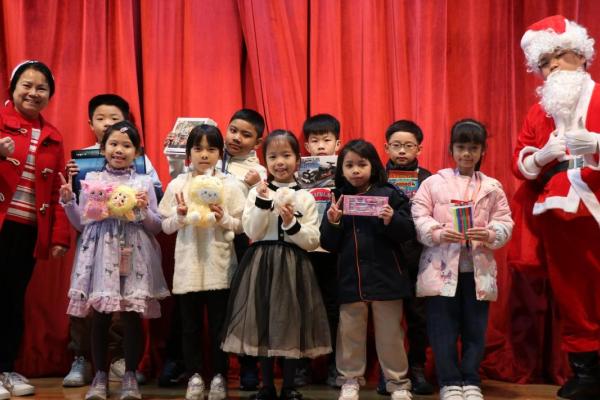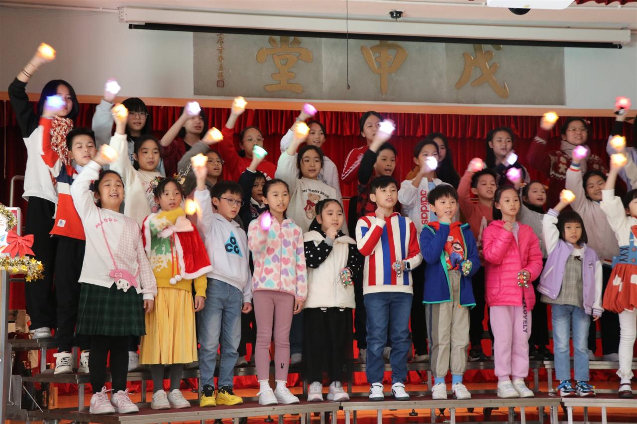 全校同學參與學校舉辦的聖誕聯歡會,當中有古箏班、合唱團、小提琴班同學及魔術師表演,還有聖誕老人與眾同樂,校長及老師們更送出大量聖誕禮物,讓學生歡度一個愉快的早上。