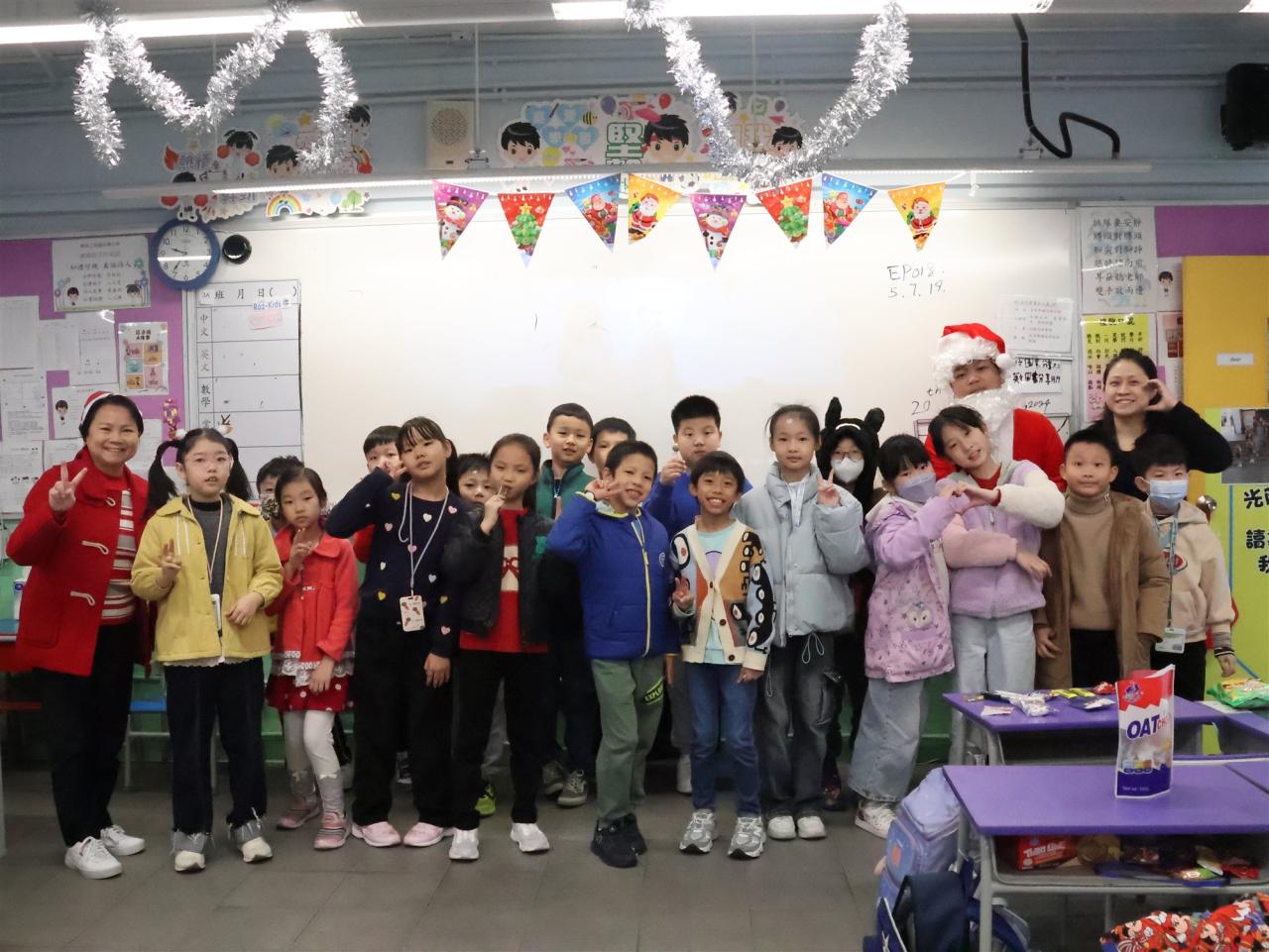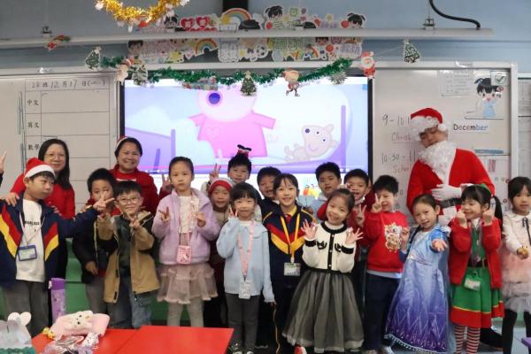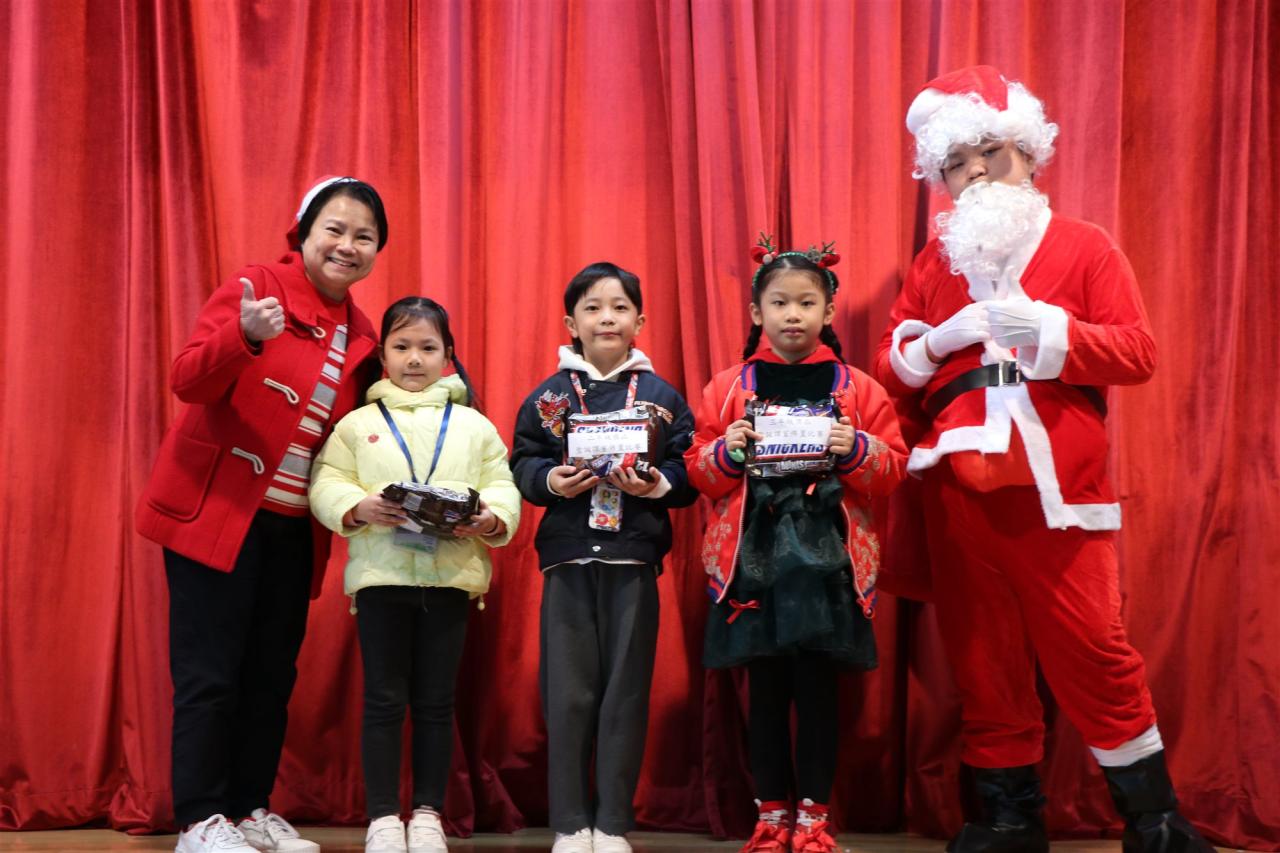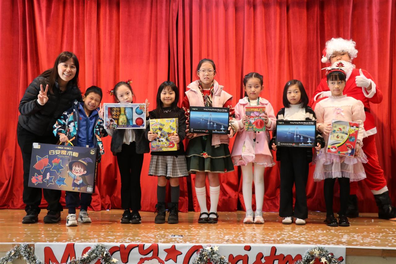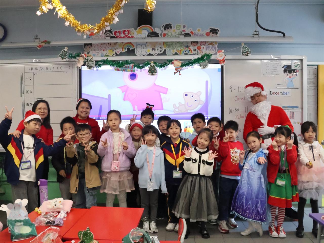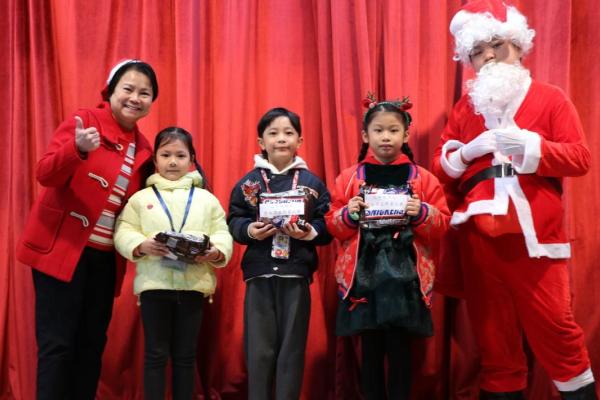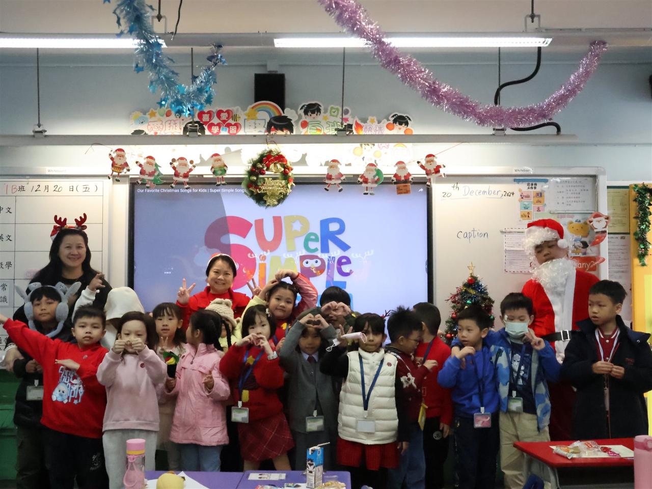 全校同學參與學校舉辦的聖誕聯歡會,當中有古箏班、合唱團、小提琴班同學及魔術師表演,還有聖誕老人與眾同樂,校長及老師們更送出大量聖誕禮物,讓學生歡度一個愉快的早上。