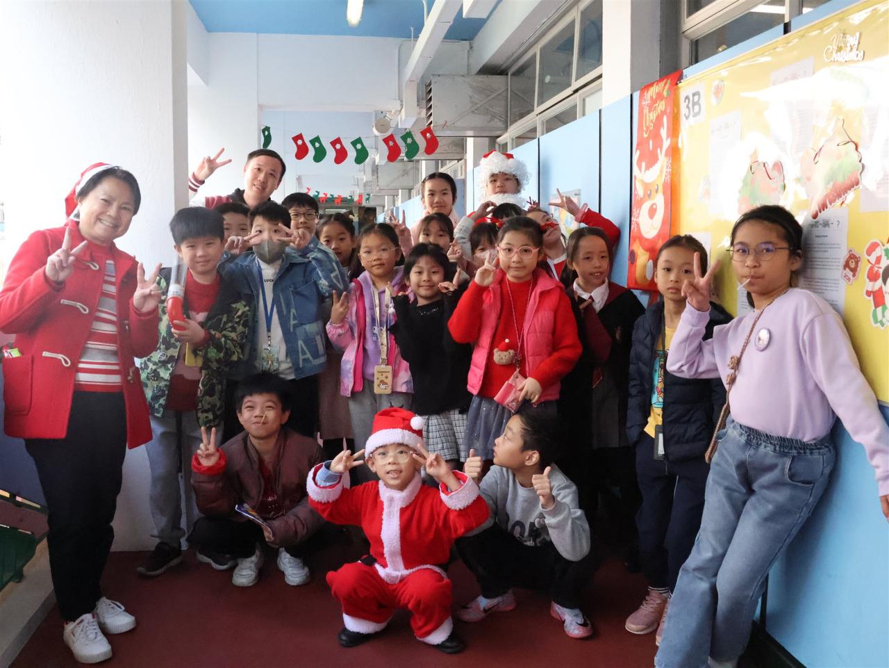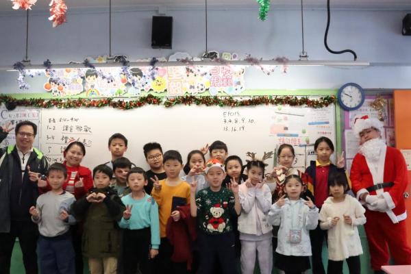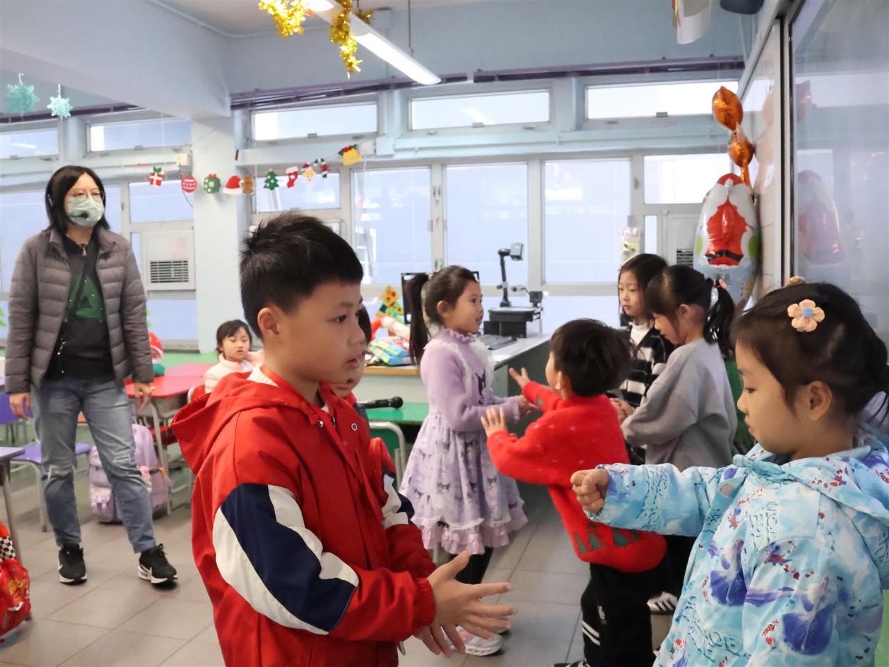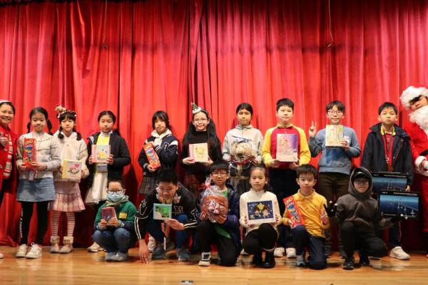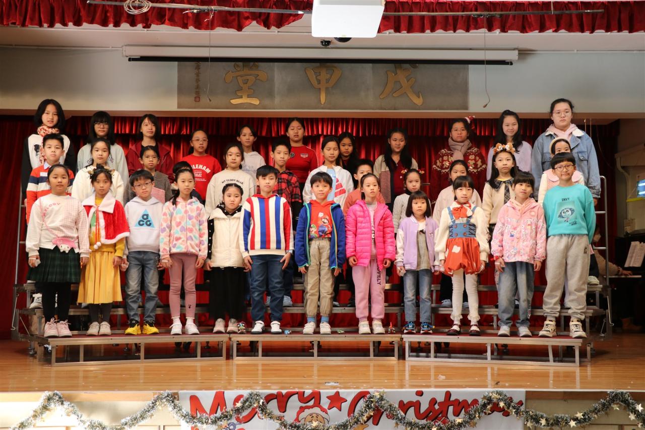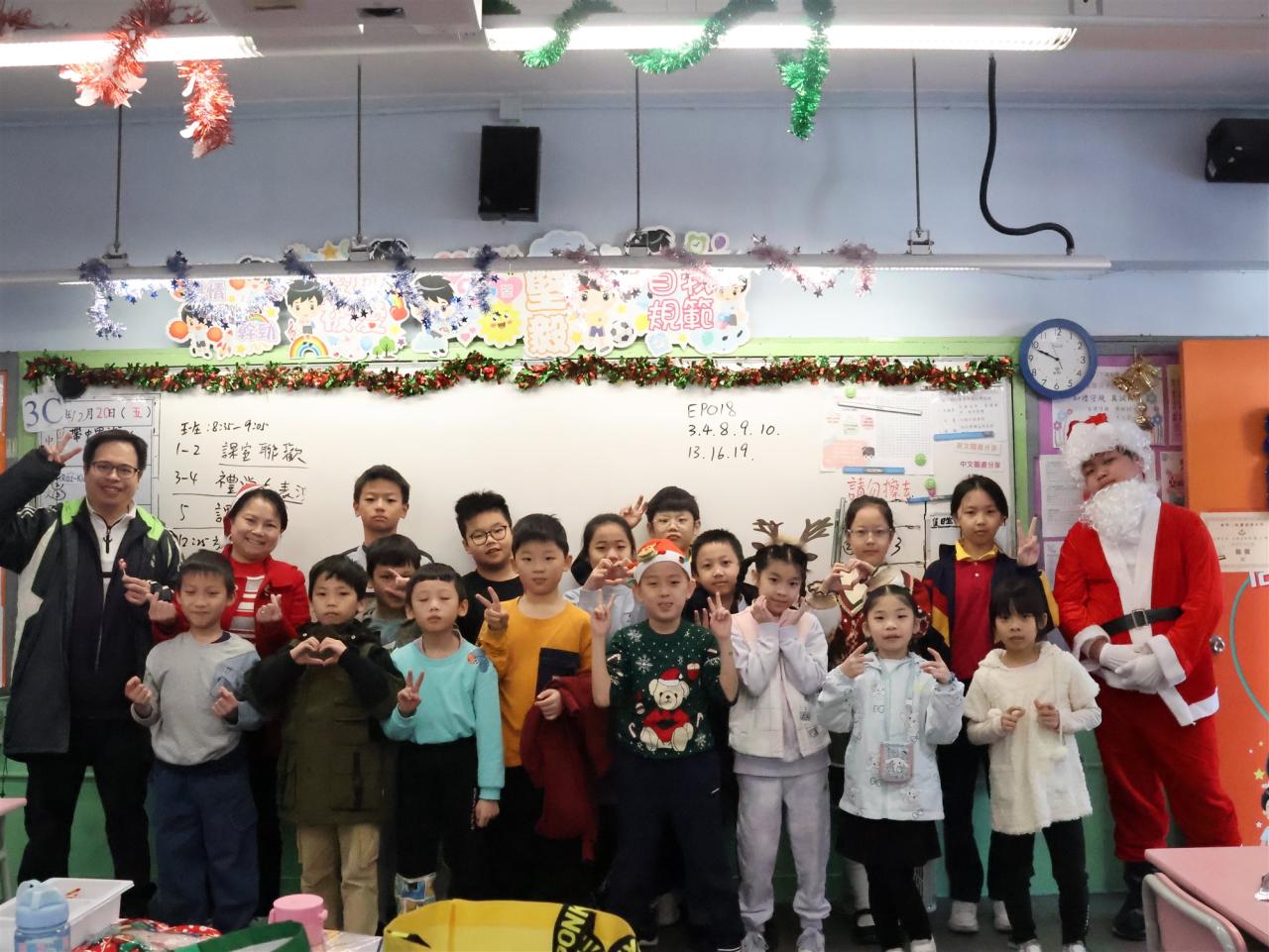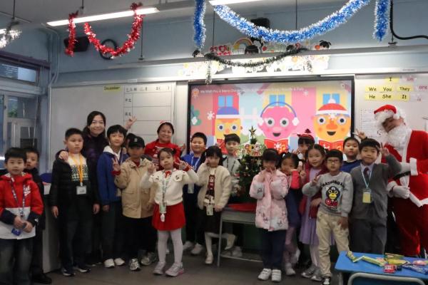 全校同學參與學校舉辦的聖誕聯歡會,當中有古箏班、合唱團、小提琴班同學及魔術師表演,還有聖誕老人與眾同樂,校長及老師們更送出大量聖誕禮物,讓學生歡度一個愉快的早上。