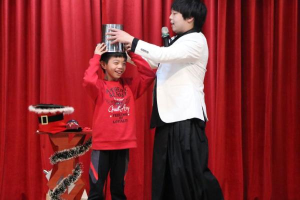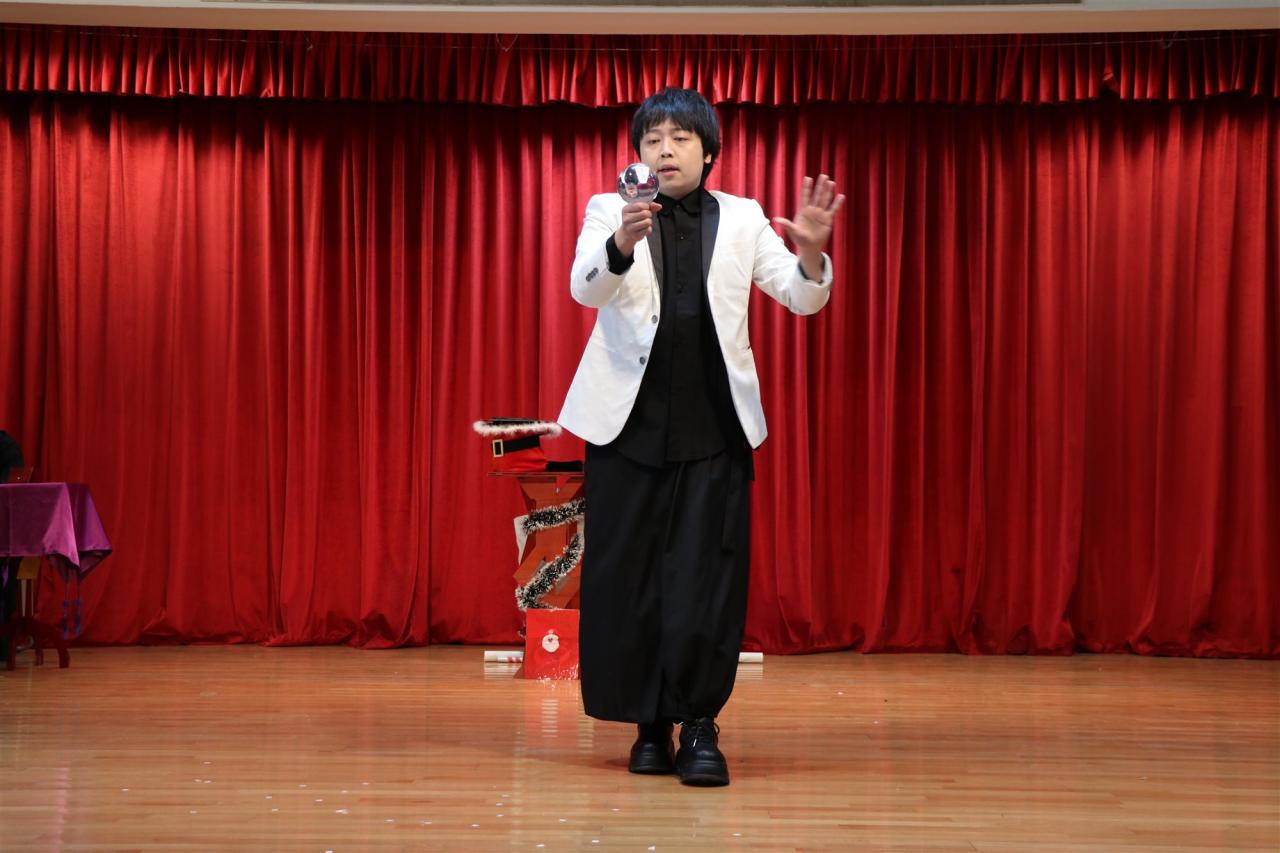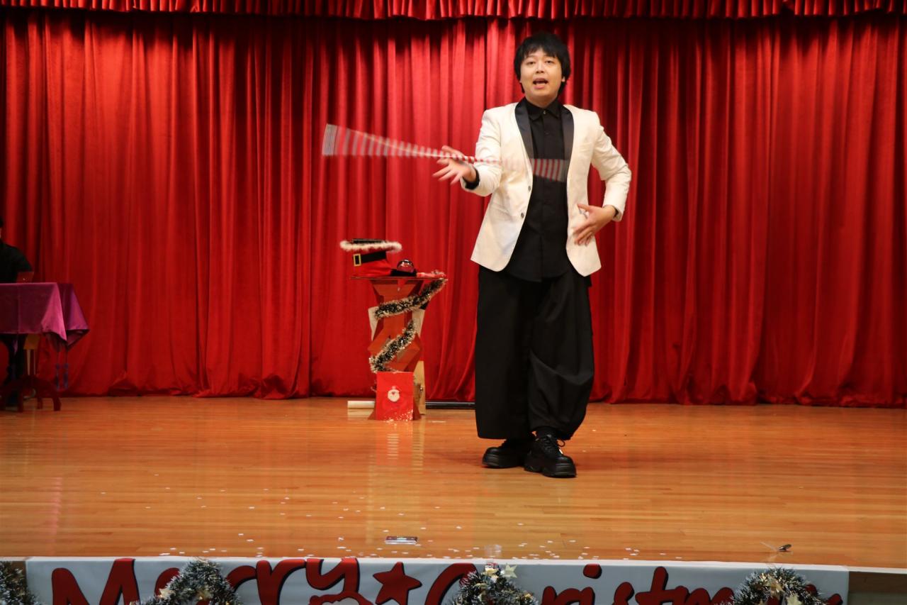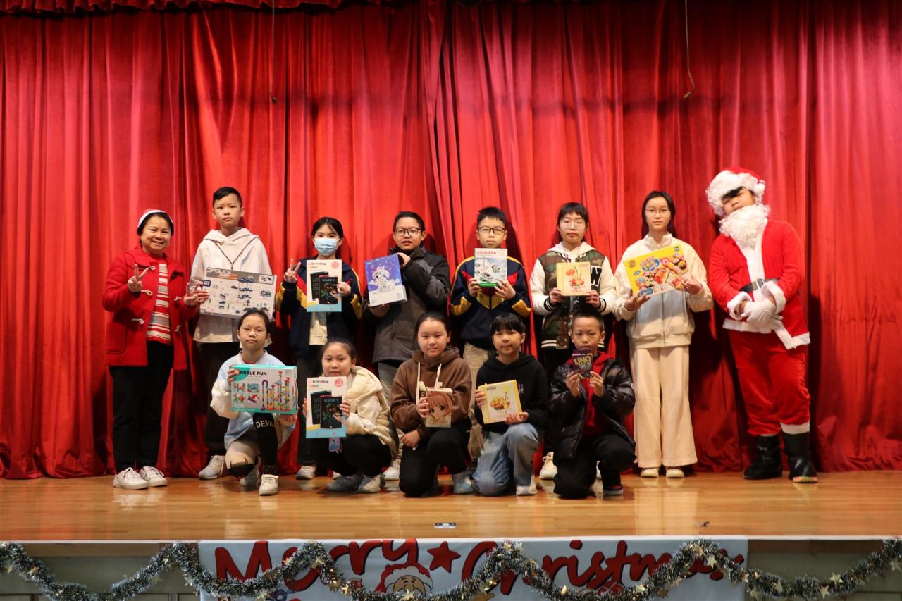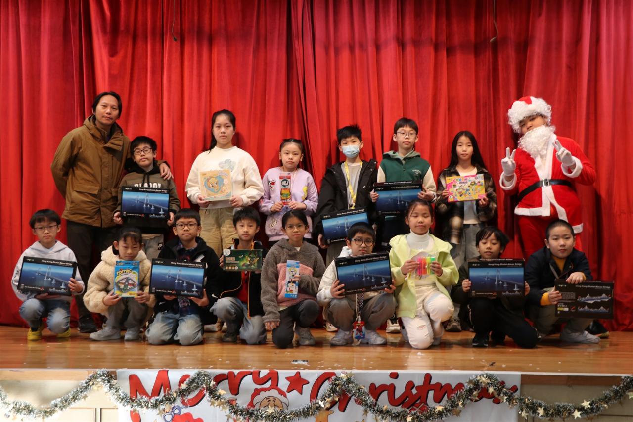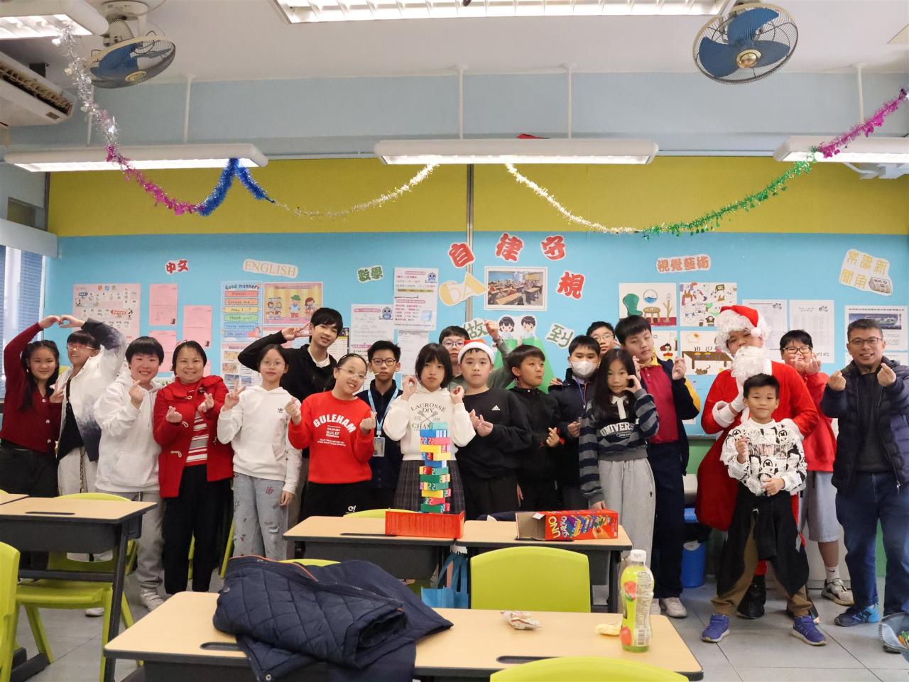 全校同學參與學校舉辦的聖誕聯歡會,當中有古箏班、合唱團、小提琴班同學及魔術師表演,還有聖誕老人與眾同樂,校長及老師們更送出大量聖誕禮物,讓學生歡度一個愉快的早上。