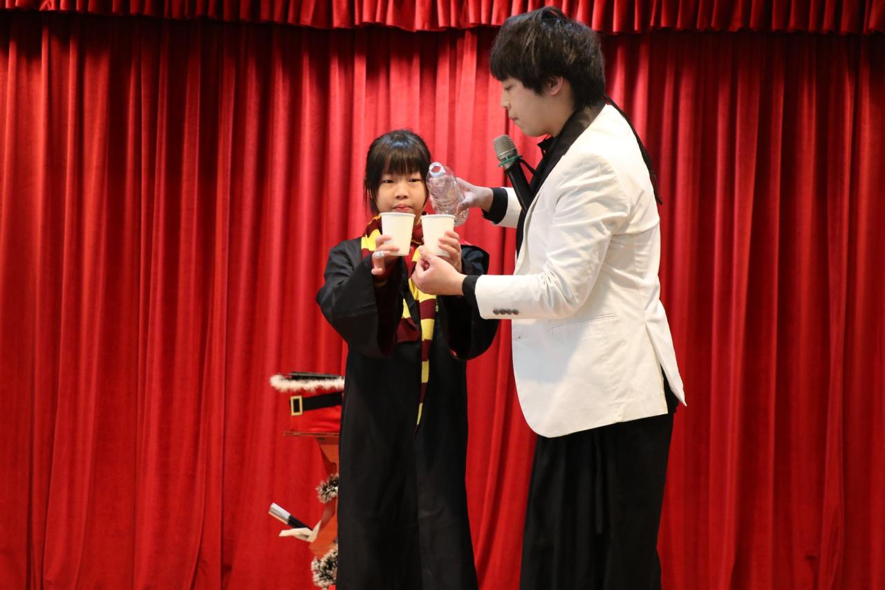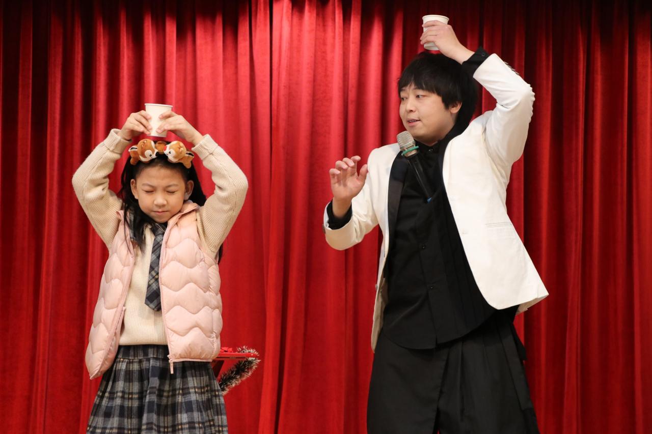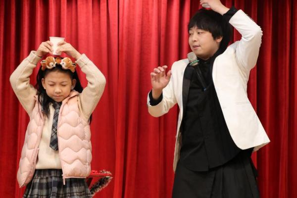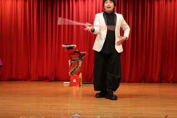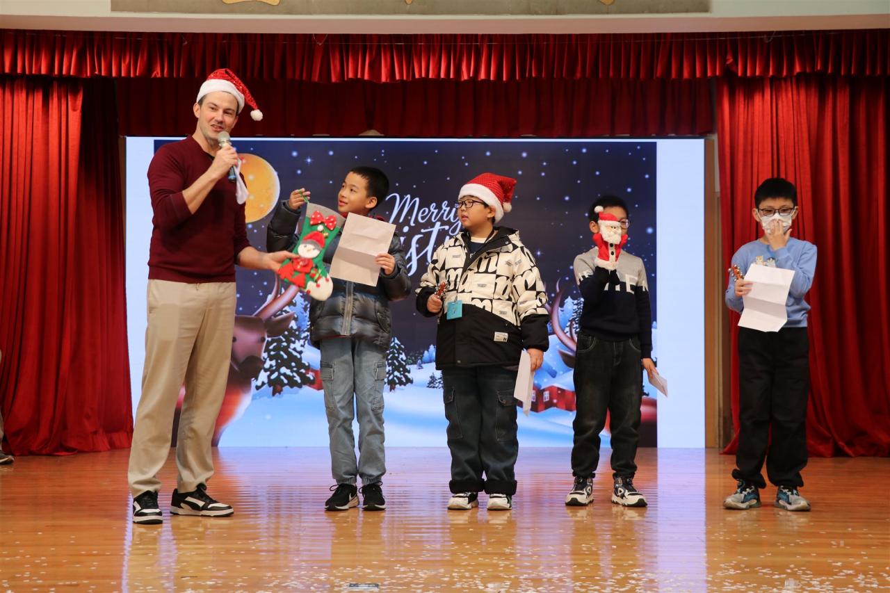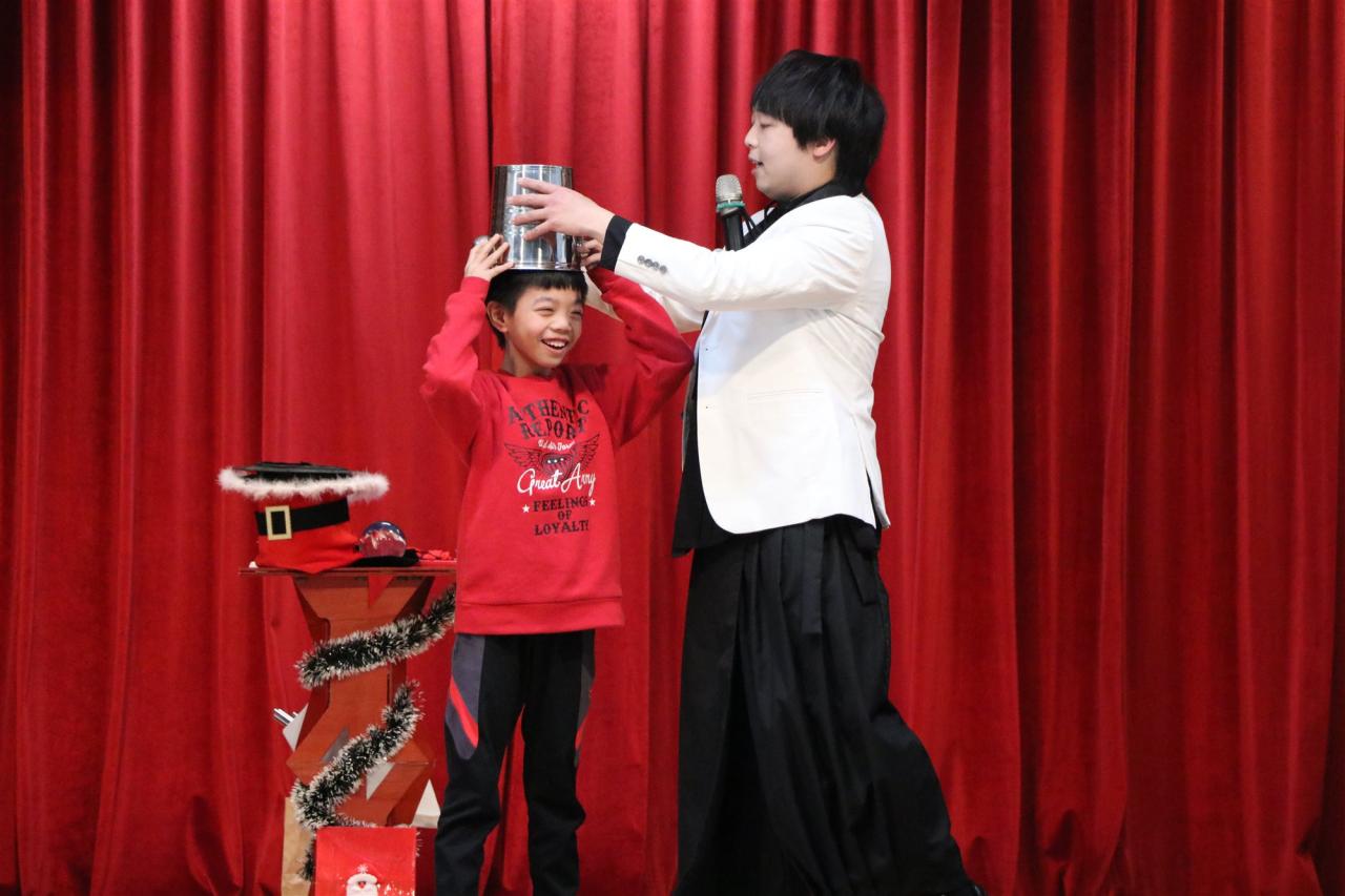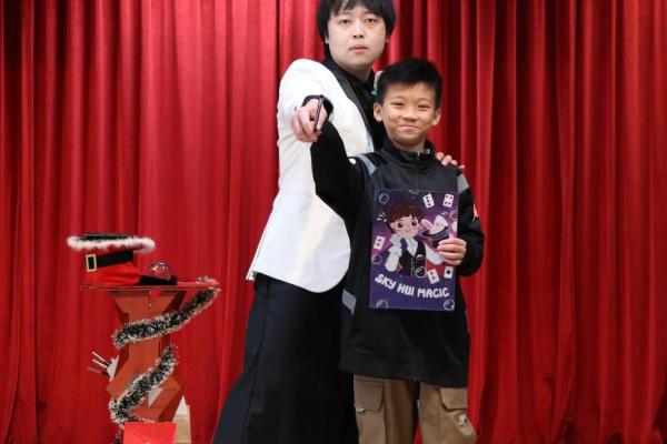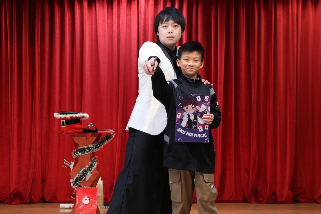 全校同學參與學校舉辦的聖誕聯歡會,當中有古箏班、合唱團、小提琴班同學及魔術師表演,還有聖誕老人與眾同樂,校長及老師們更送出大量聖誕禮物,讓學生歡度一個愉快的早上。