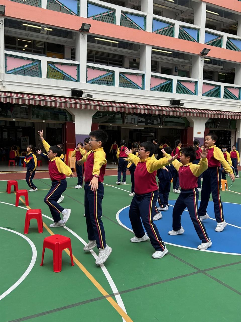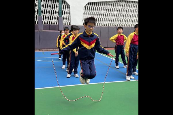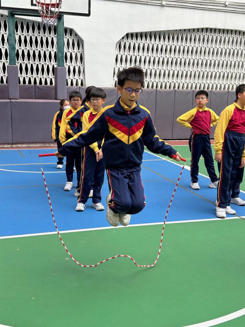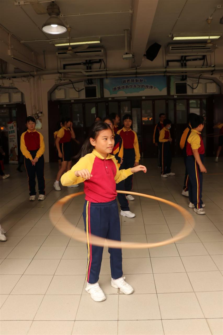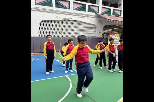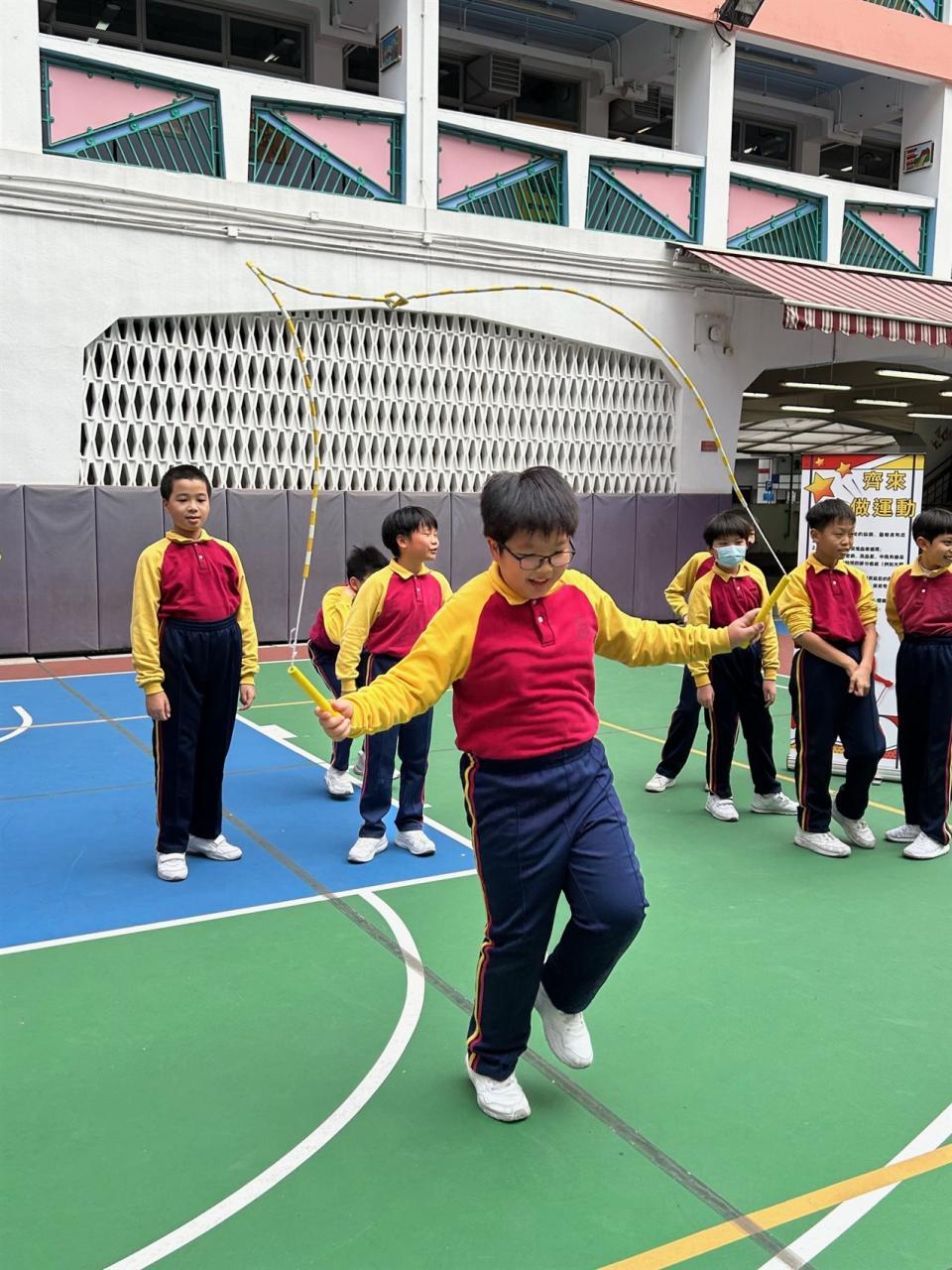 五年級同學在11月21日的多元學習課開展了跨課程主題學習「健康生活 之 齊來做運動」。 同學們在體育老師的帶領下體驗了一個小時做運動的樂趣。是次活動旨在讓同學們嘗試五種簡易的運動項目(跳繩、籃球、開合跳、超慢跑和呼拉圈),讓同學們在學習運動技巧之餘,亦逐步建立勤做運動的良好健康生活習慣。在運動間隙,同學們還可以到休憩區閱讀健康生活主題的圖書,老師提醒同學們「如果累了,就要學會休息,而不是放棄。」