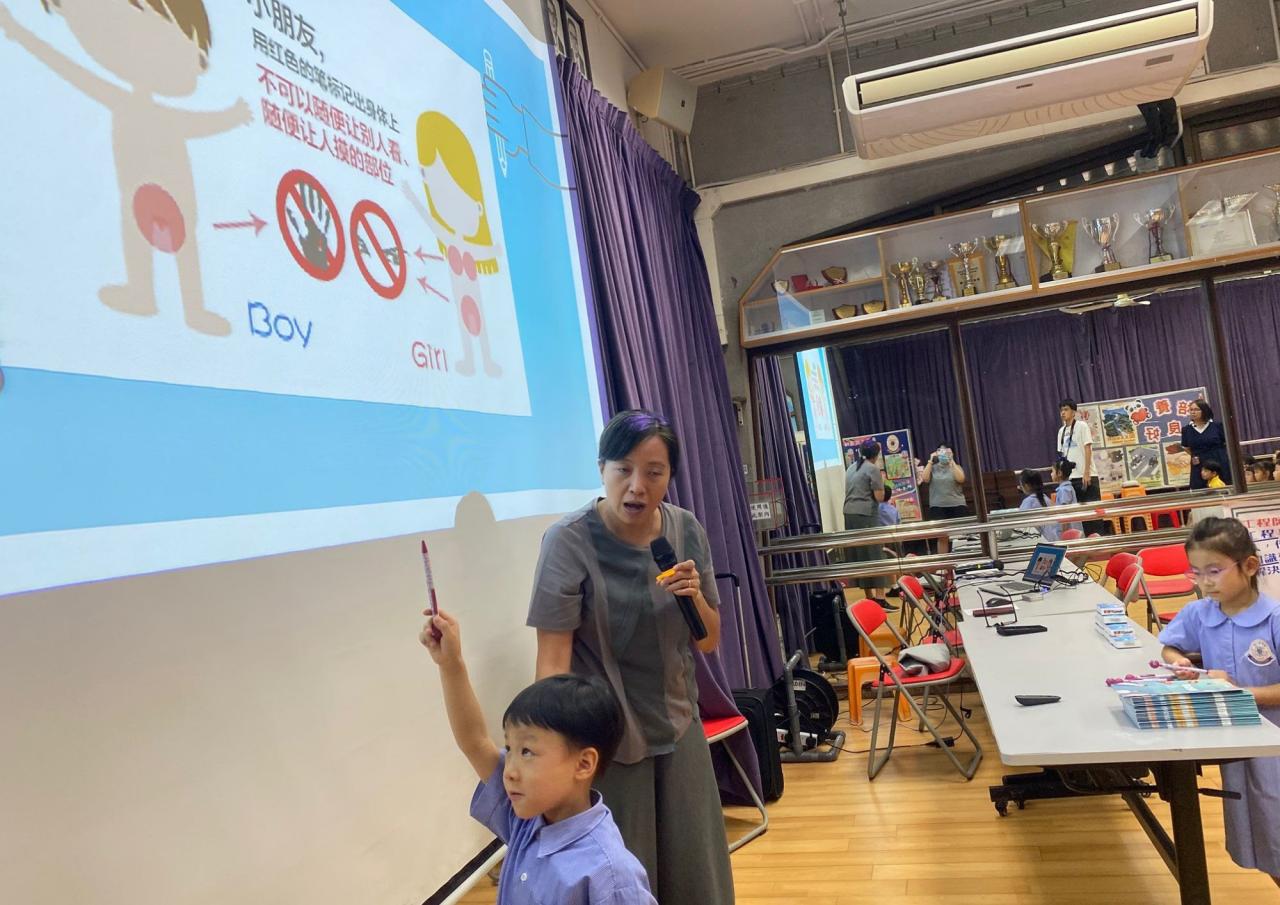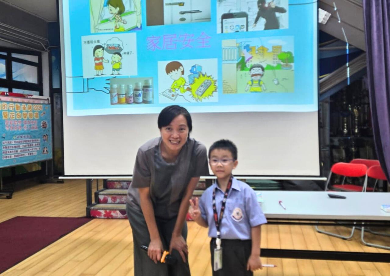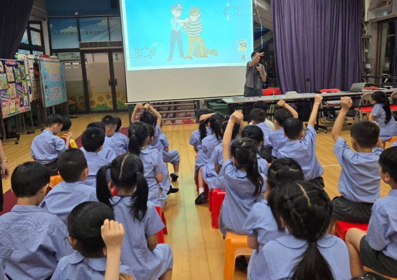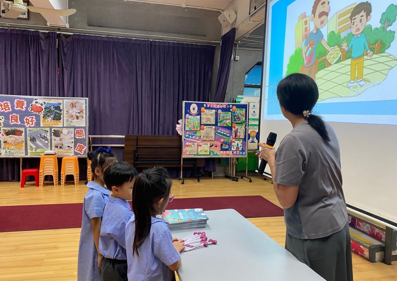10月17日是一年級跨課程主題學習「我愛校園」的總結會。是日除了有「為我們服務的人」橫額展示、圖書推介,還邀請了油尖旺區警民關係組學校聯絡主任鄭惠琼警長親臨本校為小一學生作分享講座,講座提升了學生的公民意識,令學生獲益良多。 整個跨課程主題學習為學生提供了多元、適切和有意義的學習經歷,拓寬了學生的學習基礎和視野,讓學生由關心身邊人、身邊事,再到關心社區、感恩他人,進而培養其成為守法好公民。