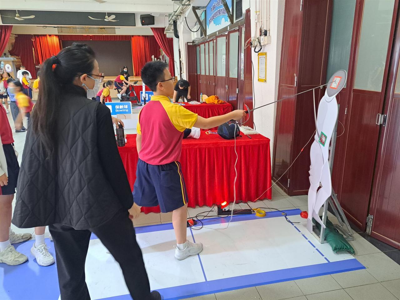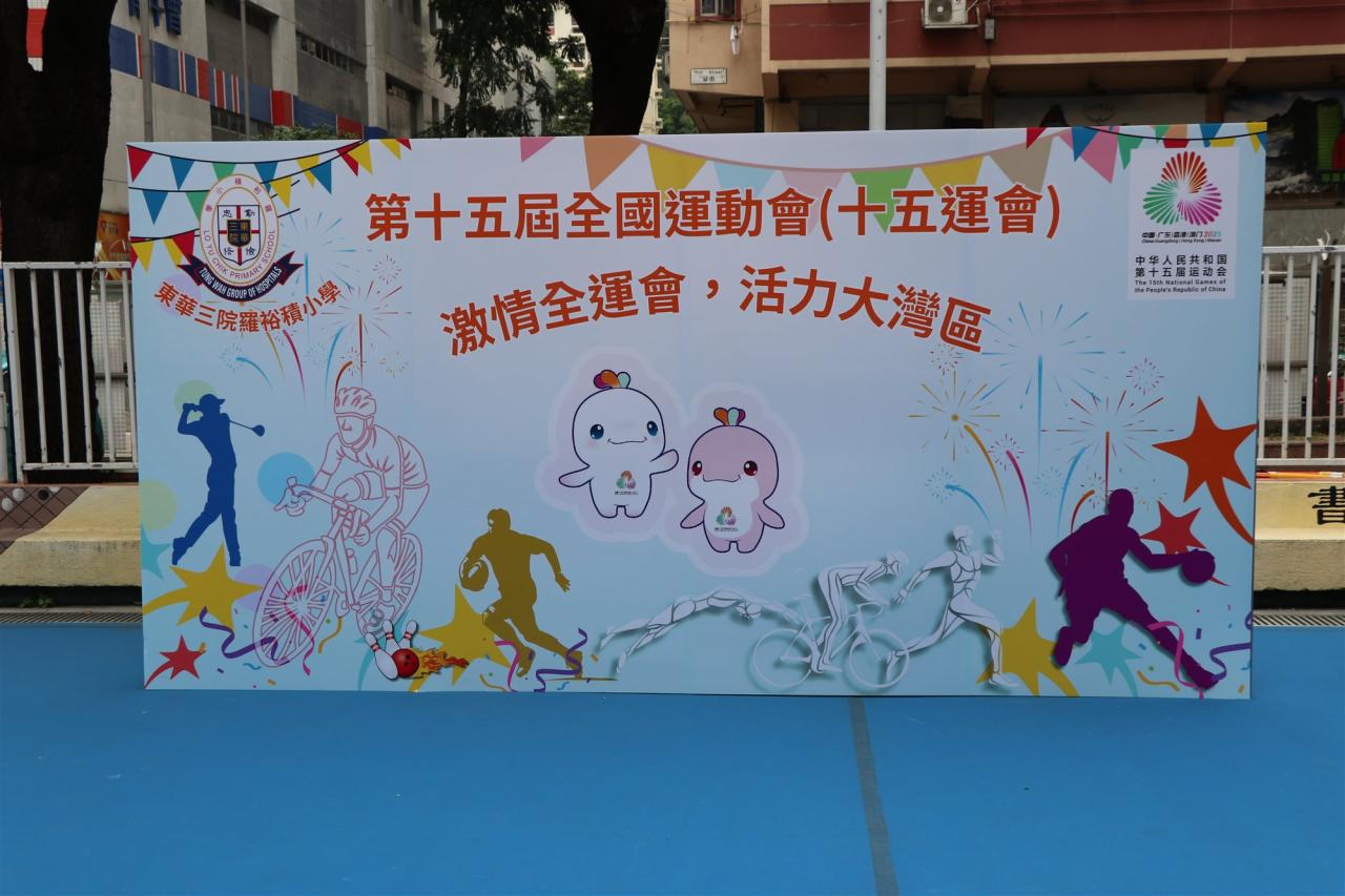 為迎接第十五屆全運會,本校於10月27日在校內舉辦了運動攤位遊戲活動,除了各類有趣的活動,亦有VR遊戲,而當中的設計以本屆香港協辦的運動項目為主題,更是活動的一大特色。當天全校同學積極參與各項運動遊戲外,亦得豐富的獎品,更在由校方精心設計的裝飾佈置前留影,共同沉醉在這項體育盛事的氣氛中。
