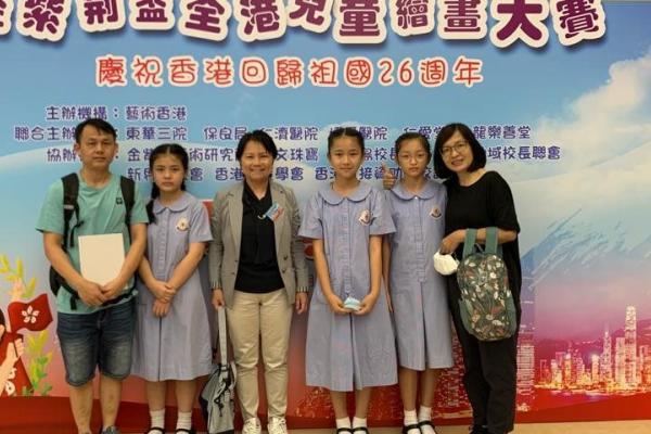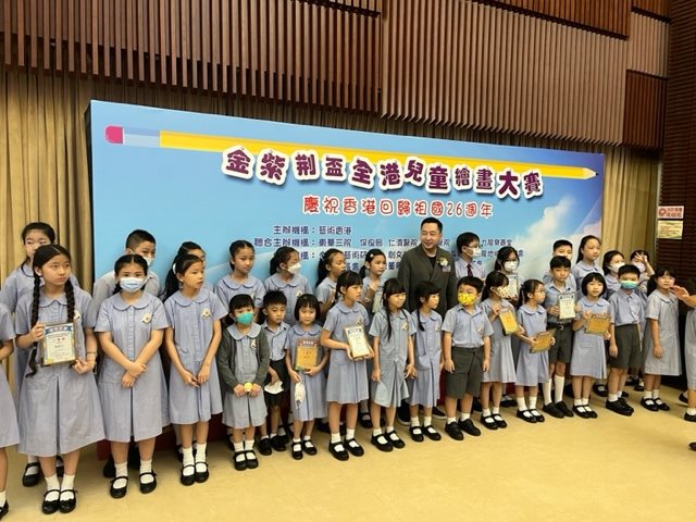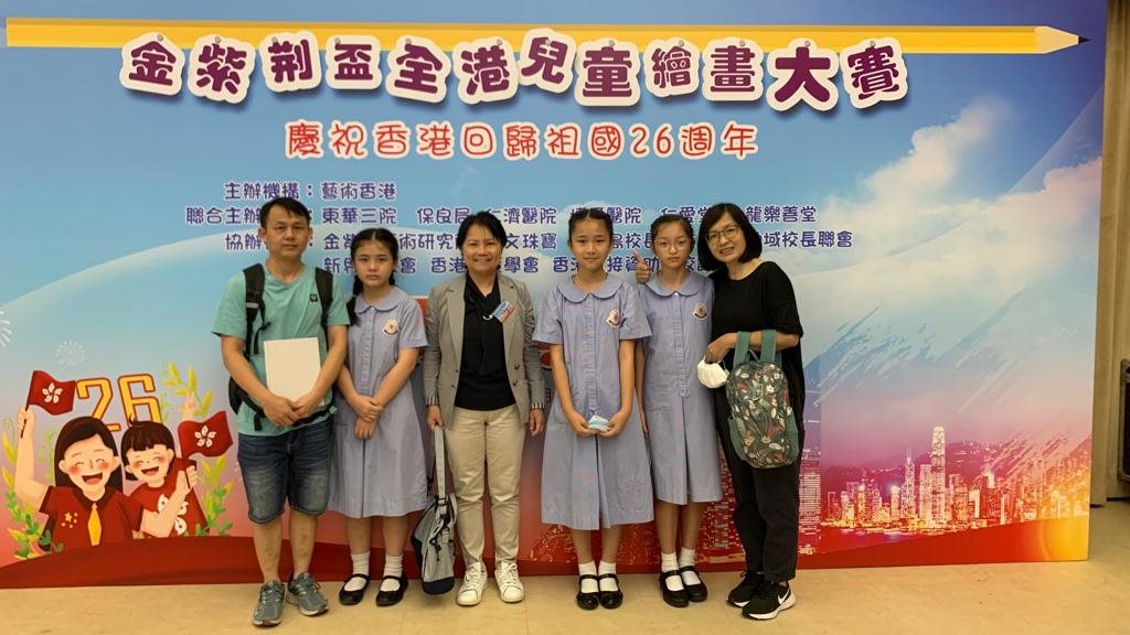 本校參加由藝術香港主辦的「金紫荊盃全港兒童繪畫大賽2023」,4B石王悦、4C程晴、5E黃心知獲優異獎。