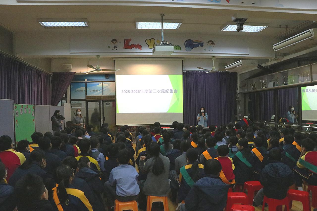 本年度風紀隊第二次集會已順利舉行,當天活動分為「日常訓練與個案探討」及「團隊訓練」兩部分。風紀隊老師首先提示風紀隊員日常當值要點,並透過真實個案,引導隊員探討如何靈活、公正且妥善地應對各類校園情境。接著,由本校社工黃姑娘帶領全體隊員進行團隊訓練活動,以培養隊員之間的默契、信任與協作精神,各風紀隊隊員都認真投入活動,並能發揮團隊精神。