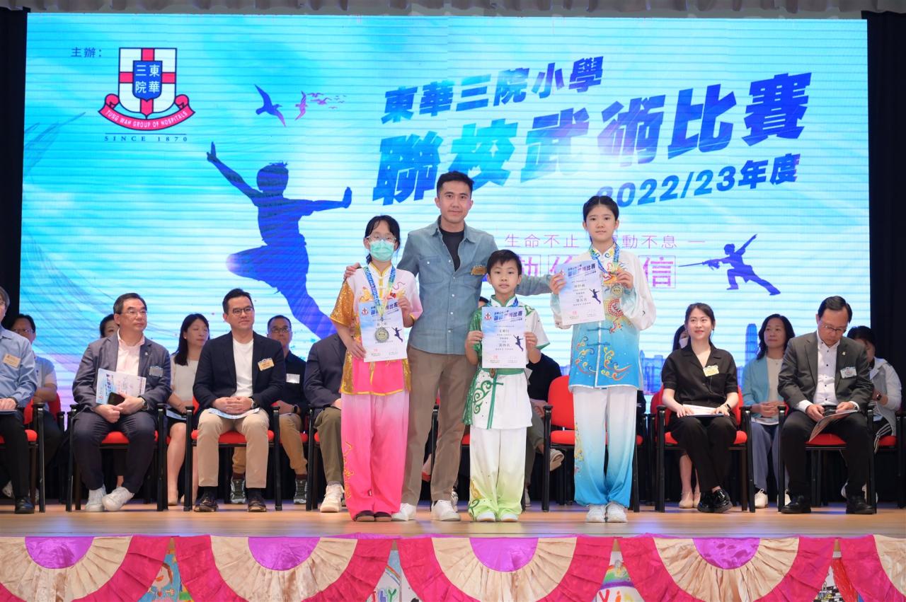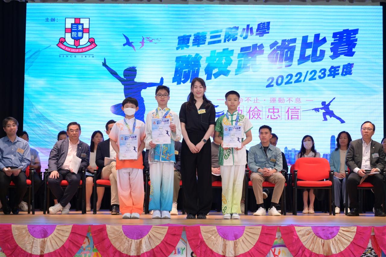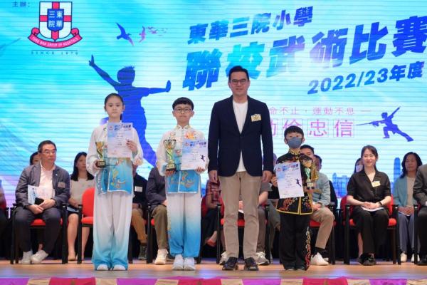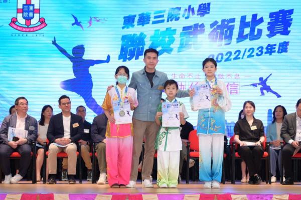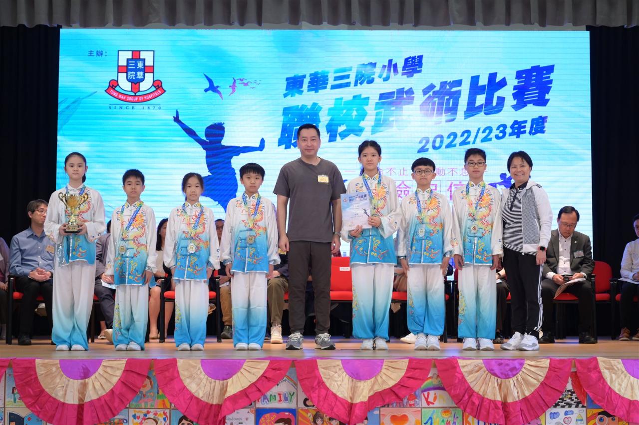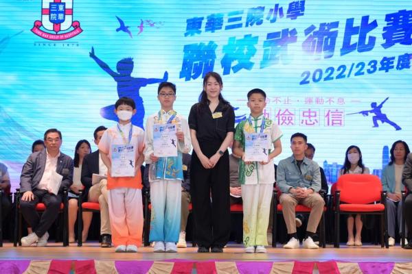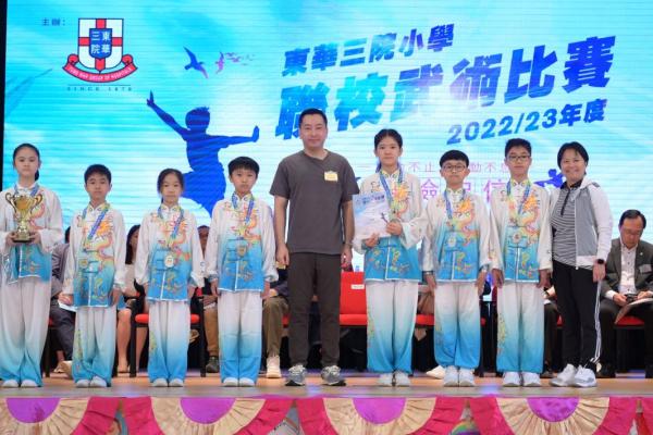 本校武術校隊參加由東華三院舉辦的「2022-2023年度東華三院小學聯校武術比賽」,6E吳志濤於個人賽(拳術)獲冠軍;6A吳宇晴於個人賽(拳術)獲季軍;6B黃曦然於個人賽(拳術)獲第四名;6D何抒函於個人賽(器械)獲第五名;本校武術隊於校隊團體賽獲亞軍、文武狀元季軍。