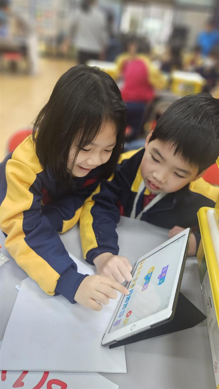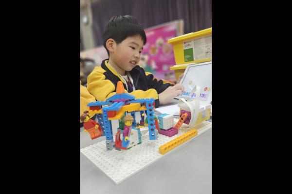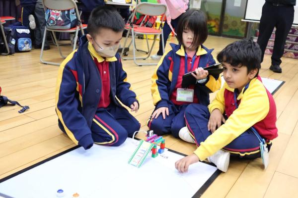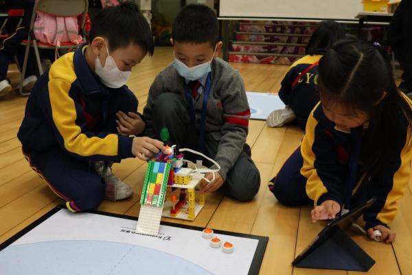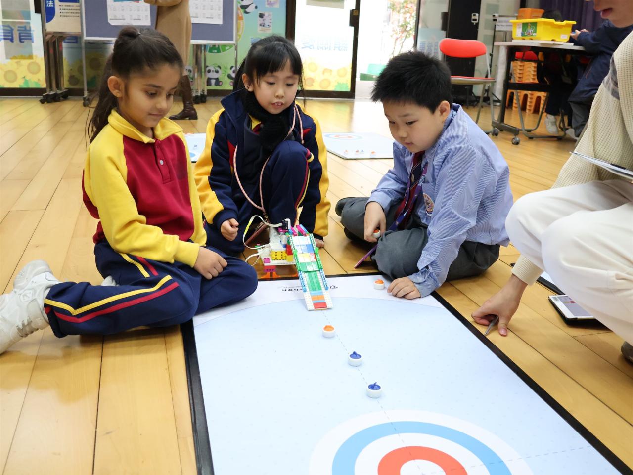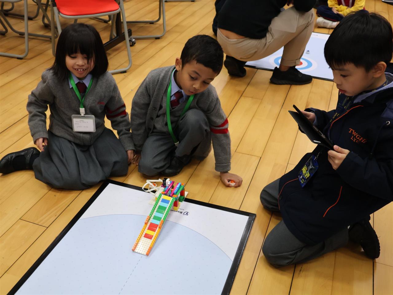 一年級同學運用LEGO套件認識編程的基礎知識,同時透過組裝LEGO 積本裝置,挑戰冰壺遊戲,各同學期望在遊戲中爭取佳績。