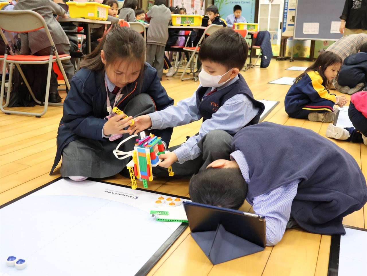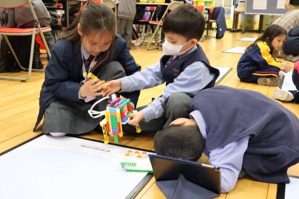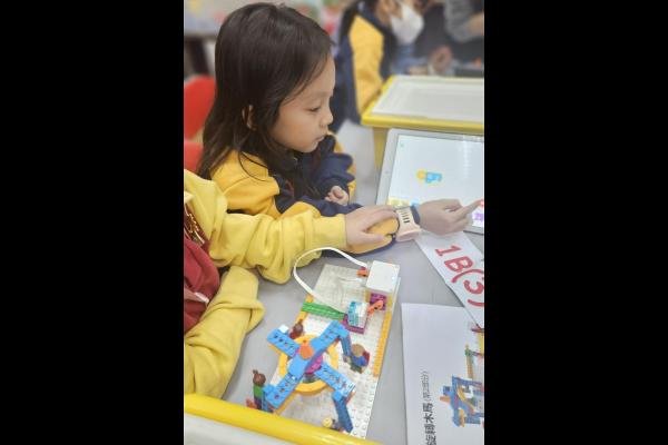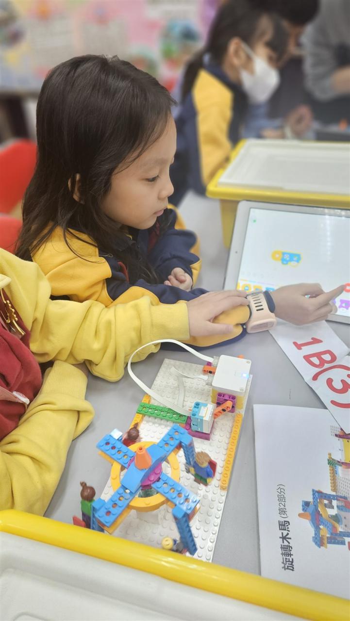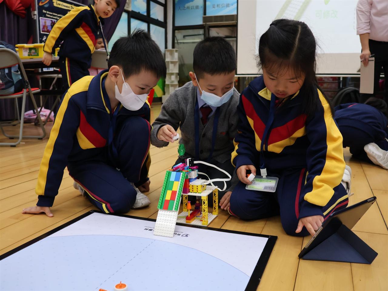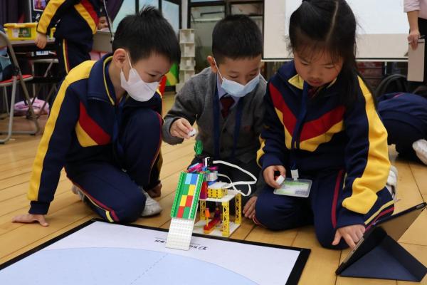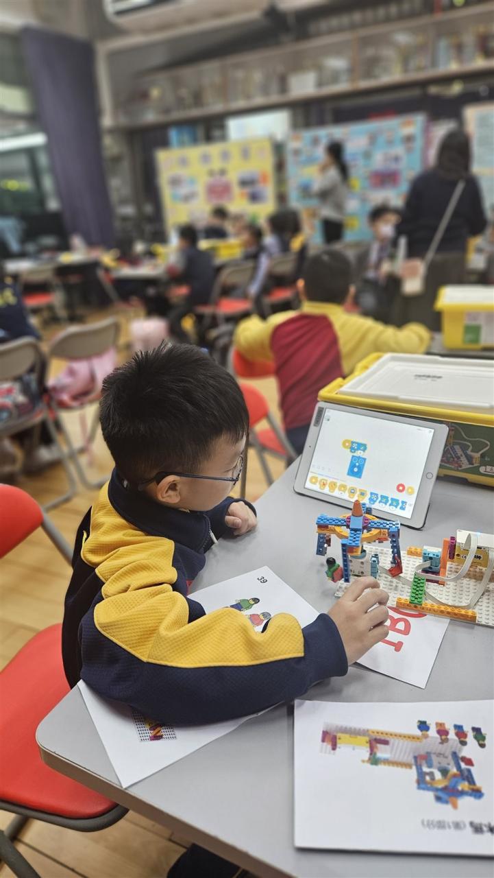 一年級同學運用LEGO套件認識編程的基礎知識,同時透過組裝LEGO 積本裝置,挑戰冰壺遊戲,各同學期望在遊戲中爭取佳績。