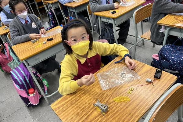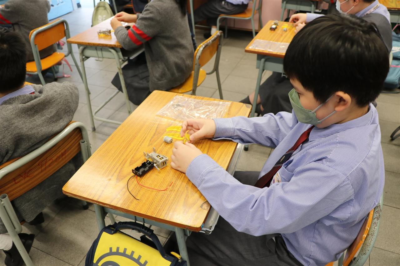 參加由張明添中學舉辦的「小小科藝創建師計劃」學生工作坊,讓同學體驗動手製作機械作品的過程,提升學生動手做的能力及培養科藝素養精神。