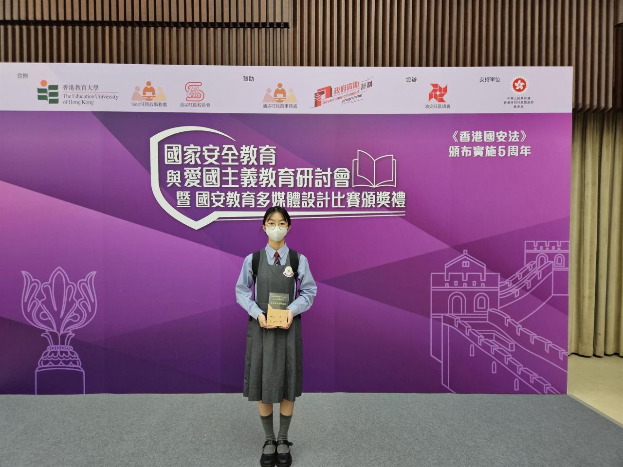 2025-03-31 主辦:油尖旺民政事務處 油尖旺校長會 香港教育大學本校參加油尖旺民政事務處、油尖旺校長會及香港教育大學舉辦的「國安教育多媒體設計比賽」高小組,本校獲得「最踴躍參與學校獎」,另外 6B許晴獲得亞軍,5B許林偉獲得季軍及5B李書羽獲得優異獎。亞軍許晴 6B季軍許林偉 5B優異獎李書羽 5B最踴躍參與學校獎 所有 學術