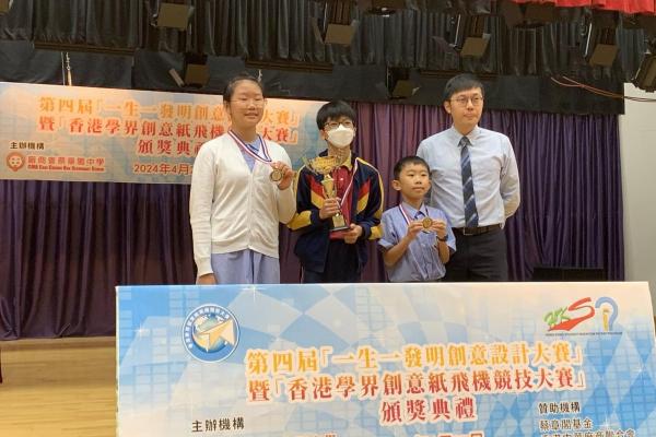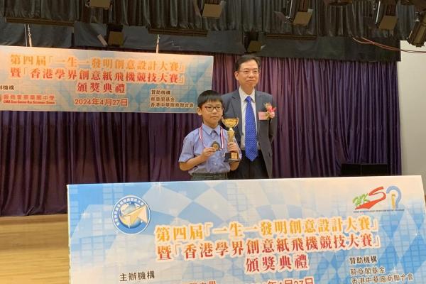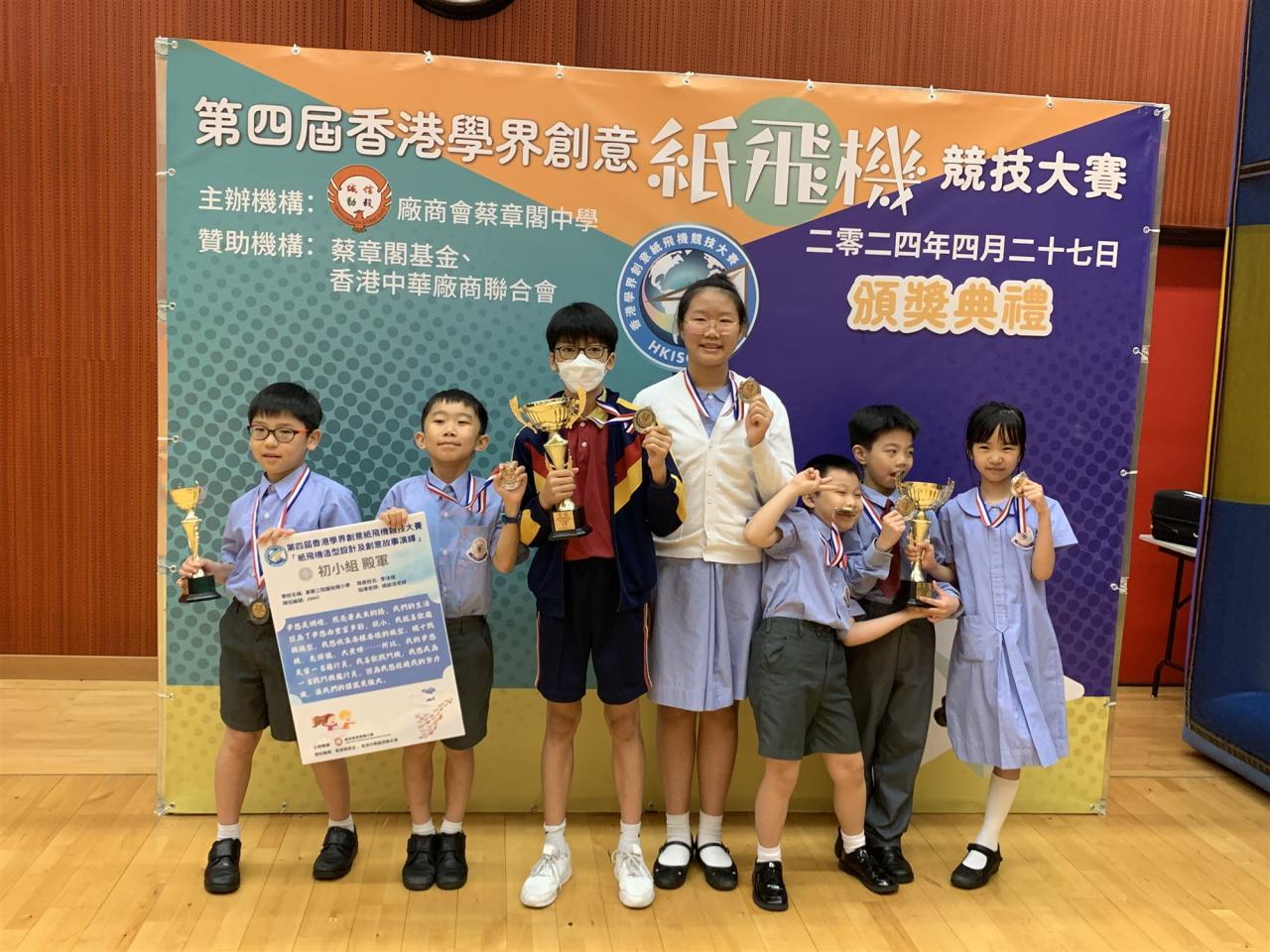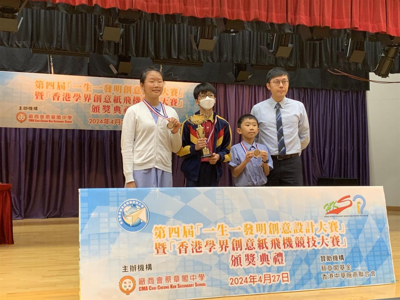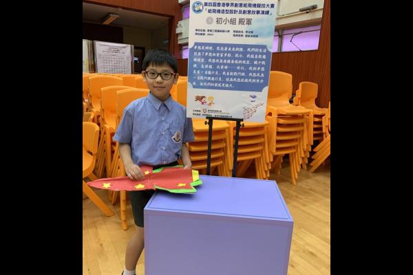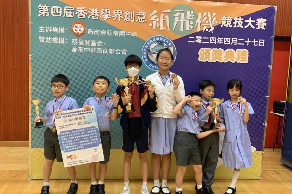 2023-12-16 主辦:廠商會蔡章閣中學參加由廠商會蔡章閣中學主辦的第四屆香港學界創意紙飛機競技大賽,2A陳炯城、張梓軒、3D王善童獲得飛行距離最遠(初小組)亞軍;4C方富恆、6B梁家豪、梁頌恩獲得飛行距離最遠(高小組)亞軍;3D李沐傑獲得紙飛機造型設計及創意故事演繹(初小組)殿軍。紙飛機造型設計及創意故事演繹(初小組) 殿軍李沐傑 3D飛行距離最遠(高小組) 亞軍方富恆 4C梁家豪 6B梁頌恩 6B飛行距離最遠(初小組) 亞軍陳炯城 2A張梓軒 2A王善童 3D 所有 學術