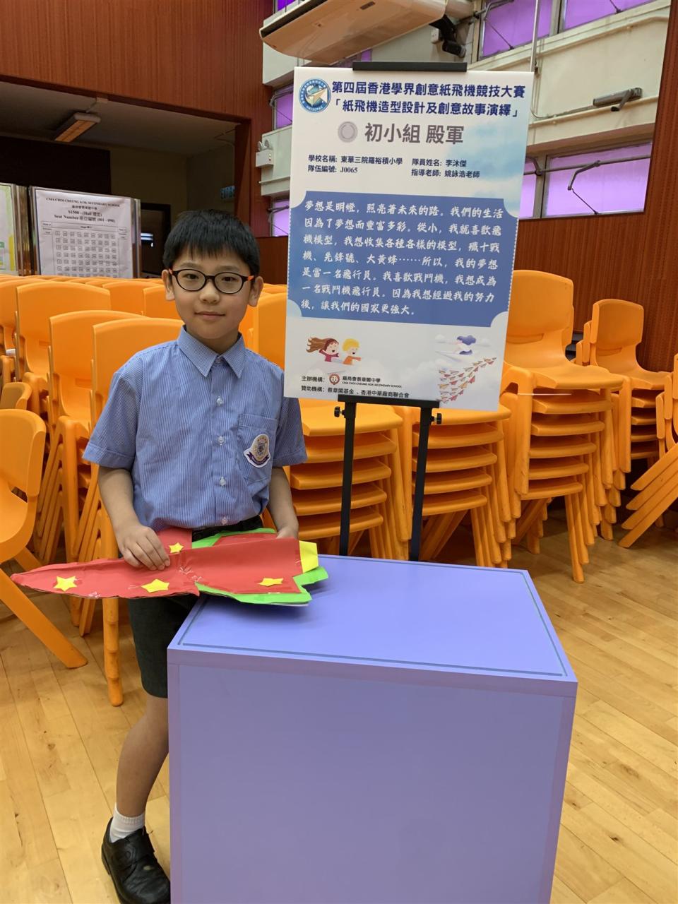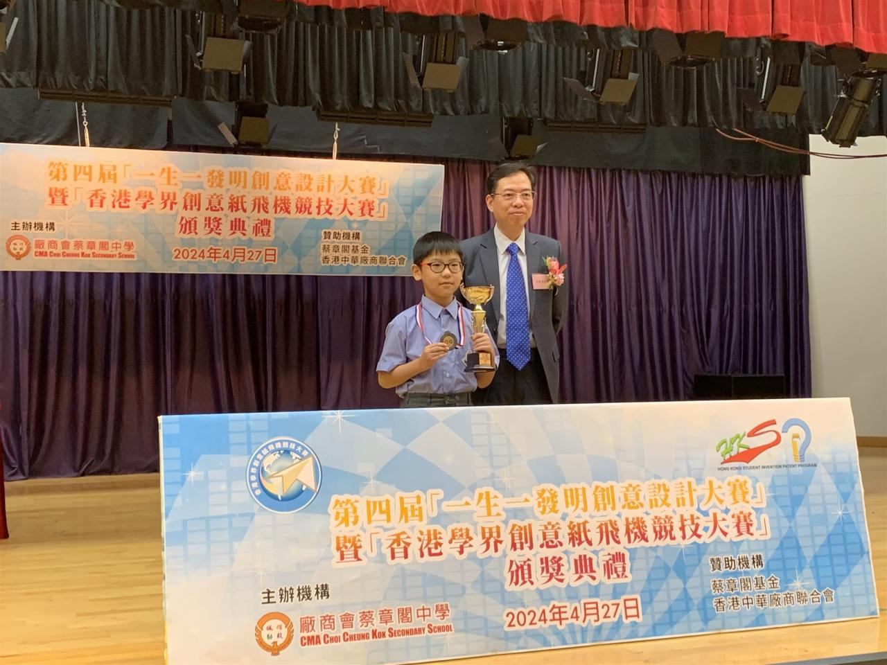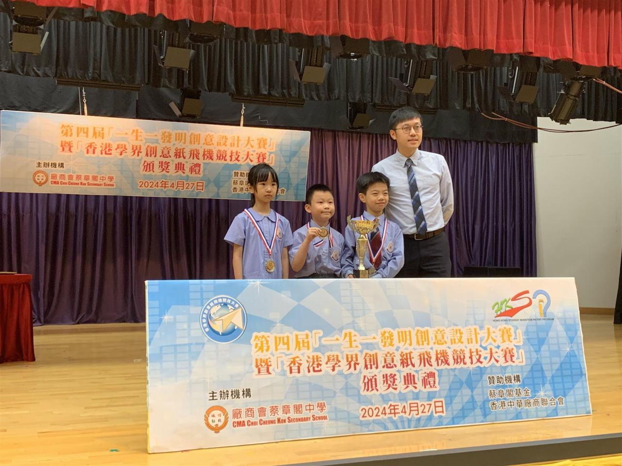 2023-12-16 主辦:廠商會蔡章閣中學參加由廠商會蔡章閣中學主辦的第四屆香港學界創意紙飛機競技大賽,2A陳炯城、張梓軒、3D王善童獲得飛行距離最遠(初小組)亞軍;4C方富恆、6B梁家豪、梁頌恩獲得飛行距離最遠(高小組)亞軍;3D李沐傑獲得紙飛機造型設計及創意故事演繹(初小組)殿軍。紙飛機造型設計及創意故事演繹(初小組) 殿軍李沐傑 3D飛行距離最遠(高小組) 亞軍方富恆 4C梁家豪 6B梁頌恩 6B飛行距離最遠(初小組) 亞軍陳炯城 2A張梓軒 2A王善童 3D 所有 學術
