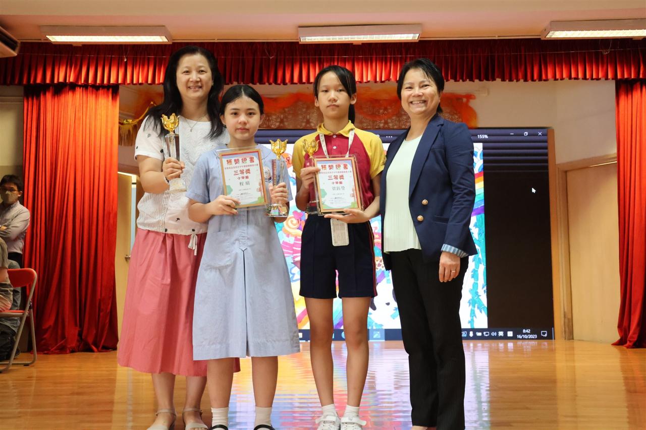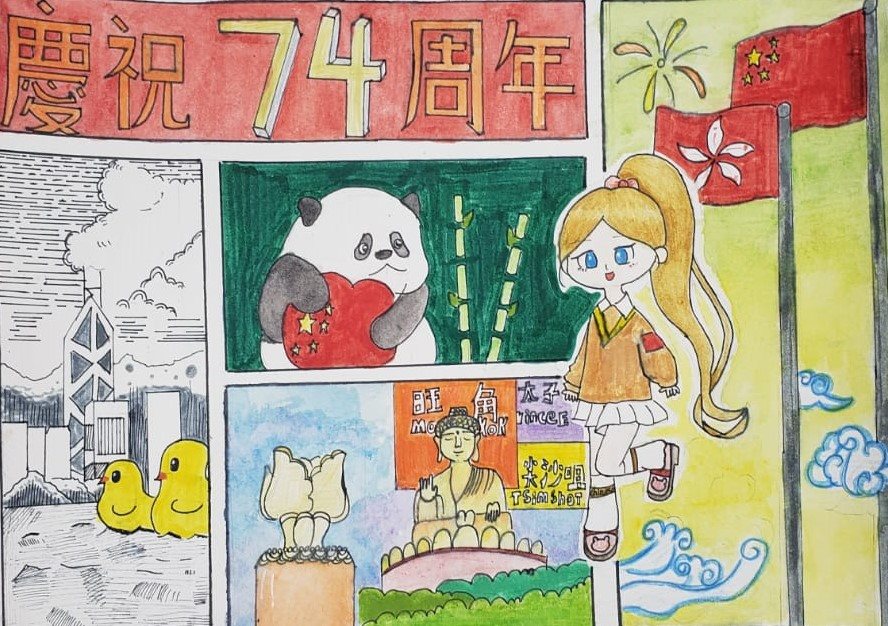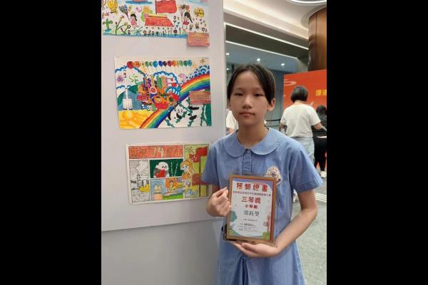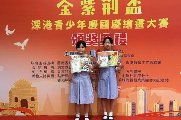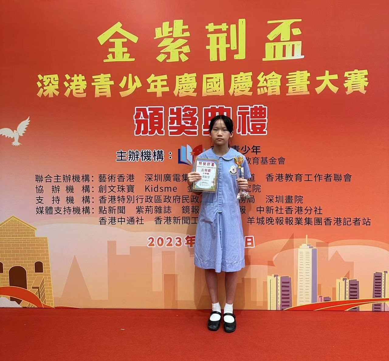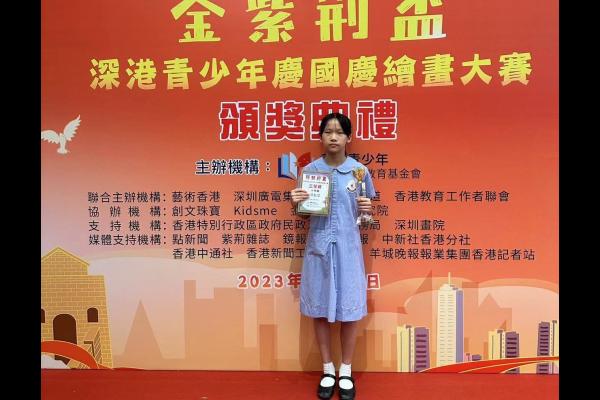 2023-09-13 主辦:藝術香港本校參加由藝術香港主辦的「金紫荊盃深港青少年慶國慶繪畫大賽 —慶祝中華人民共和國成立 74 周年」,4B梁鈺莹及5E程晴獲得三等獎。三等獎梁鈺莹 4B程晴 5E 所有 視覺藝術