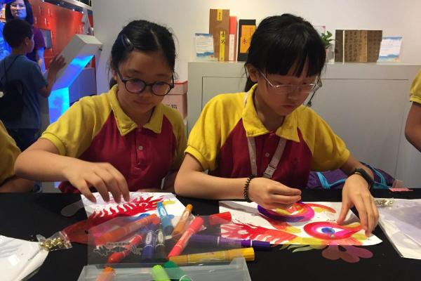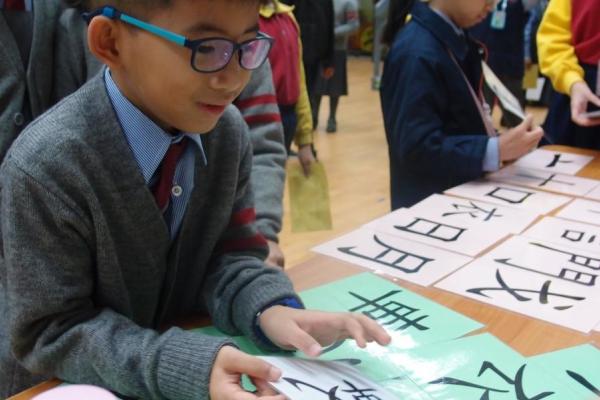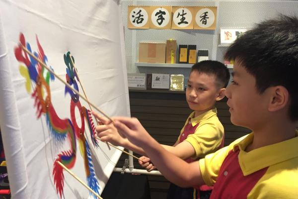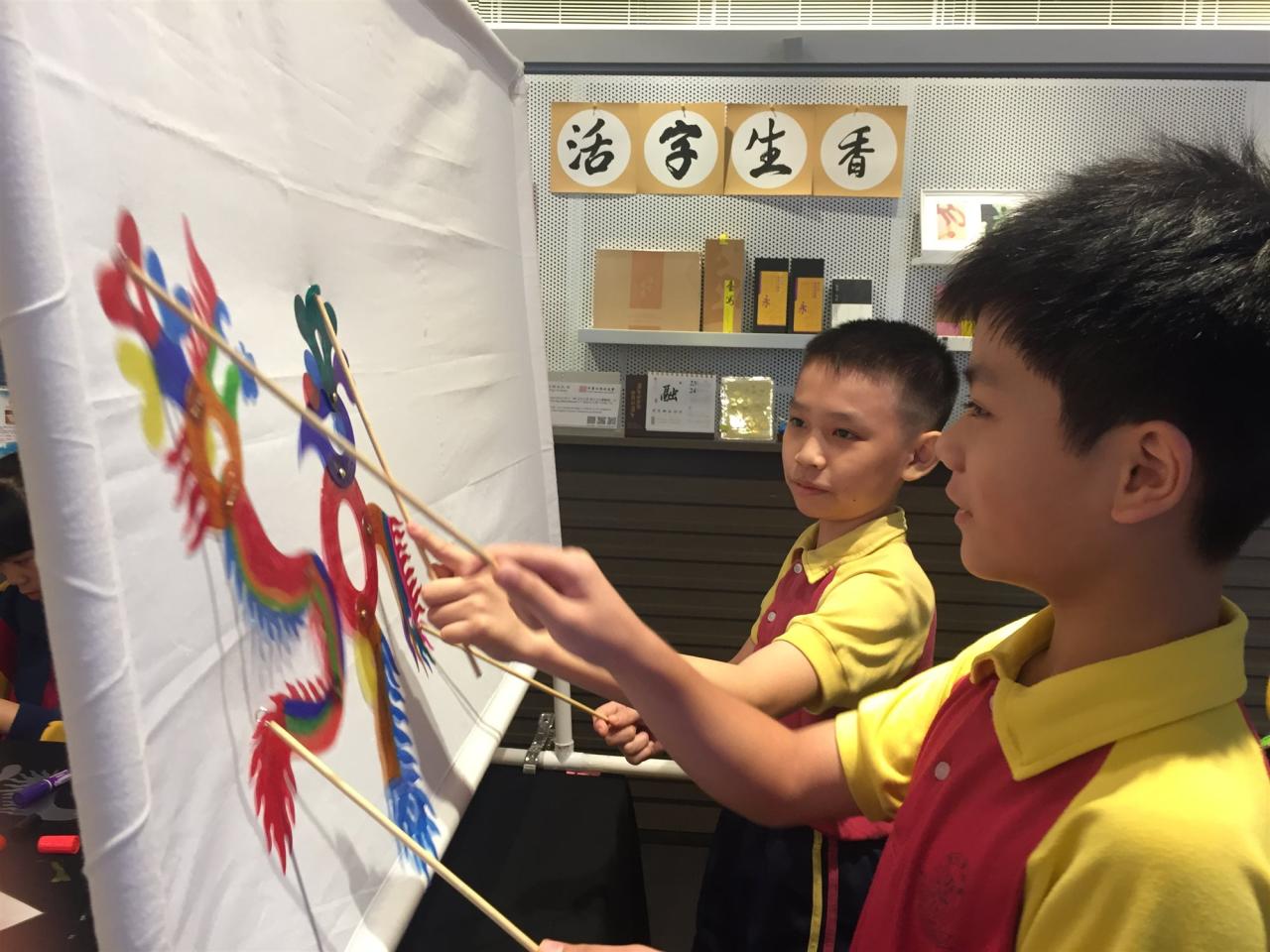 本校參加了由「中華出版促進會漢字文化推廣專業委員會與饒宗頤文化館」合辦的「活字生香—漢字的世界世界的漢字」漢字文化體驗展。展覽以漢字結合當下生活,透過創新的互動軟件,讓學生學習相關的知識和內容。如圖片所見,學生正在製作甲骨文皮影戲,並用此表演故事。