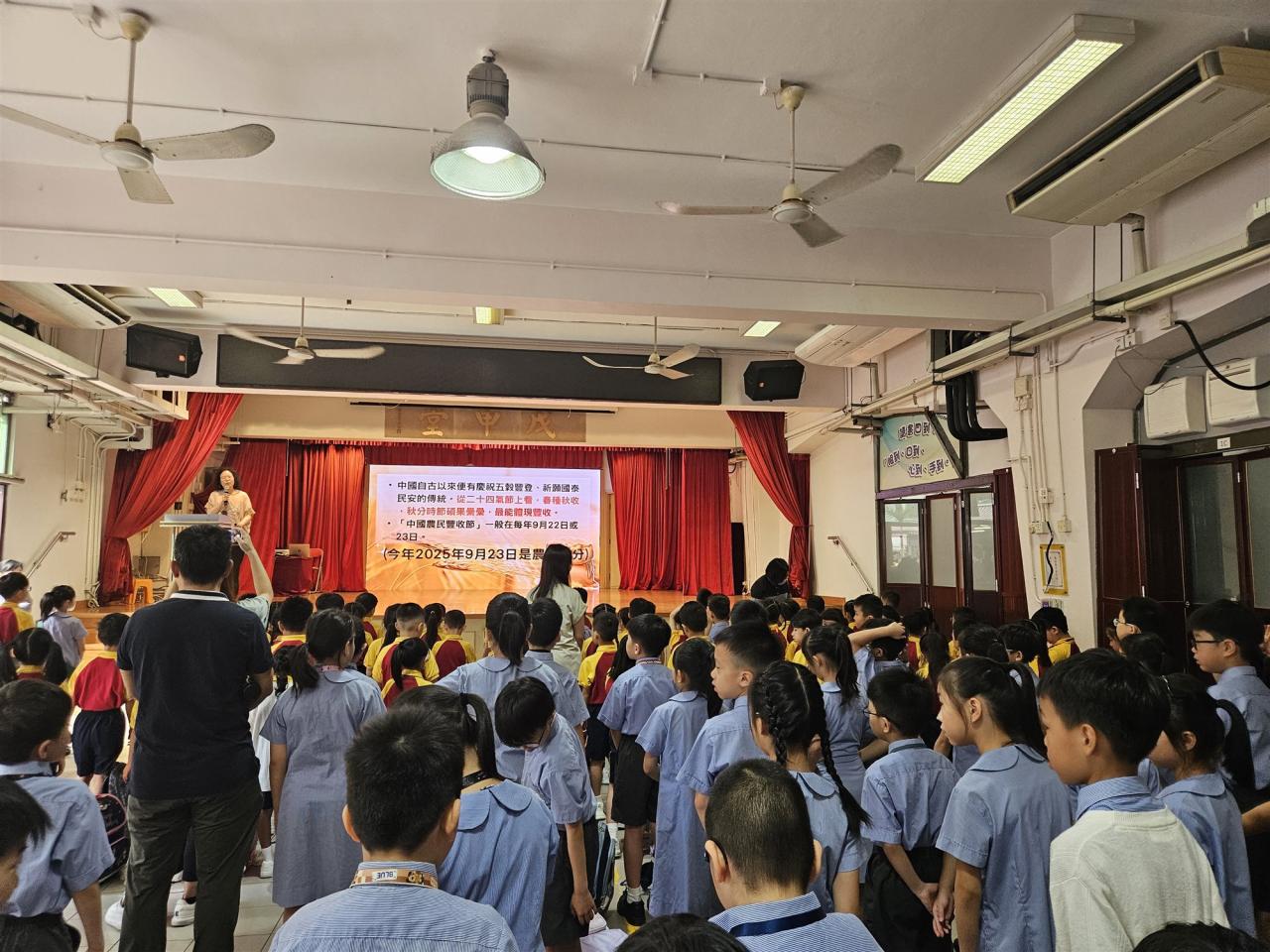 2025-09-23 「中國農民豐收節」定於每年農曆秋分日,一般在每年9月22日或9月23日。 本校在早會舉行升旗禮後,老師利用簡報向學生講解節日的來源及意義,並製作展板讓學生在小息觀看。 公民教育活動
