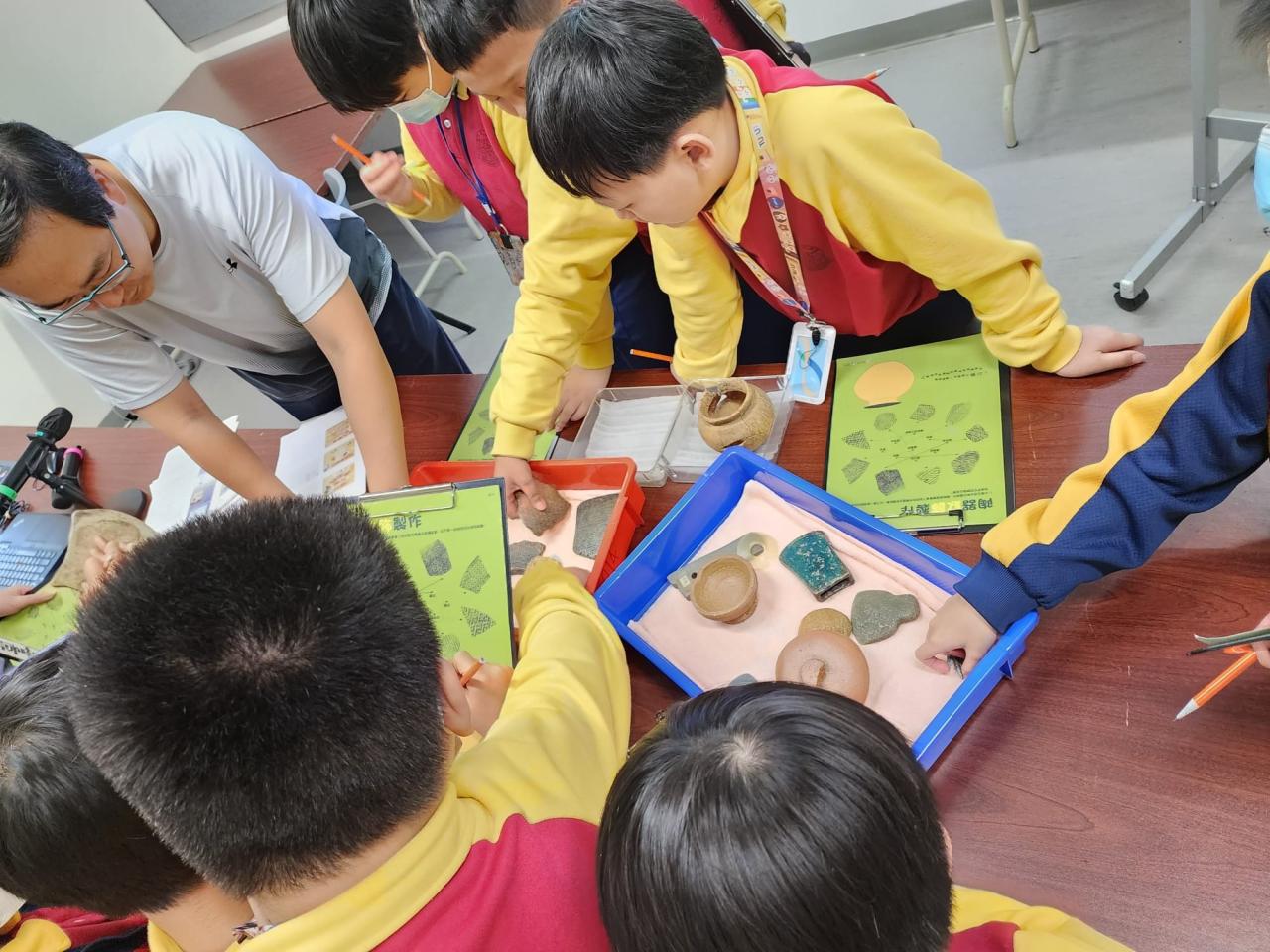 2024-02-28 四至五年級同學參加由康文署於香港文物探知館舉辦的「學校文化日計劃—考古文物多面睇」工作坊,讓學生認識考古學的基本知識、辨別文物的種類及特徵,並透過互動遊戲藉以培養學生視覺藝術的賞析能力。 視覺藝術活動