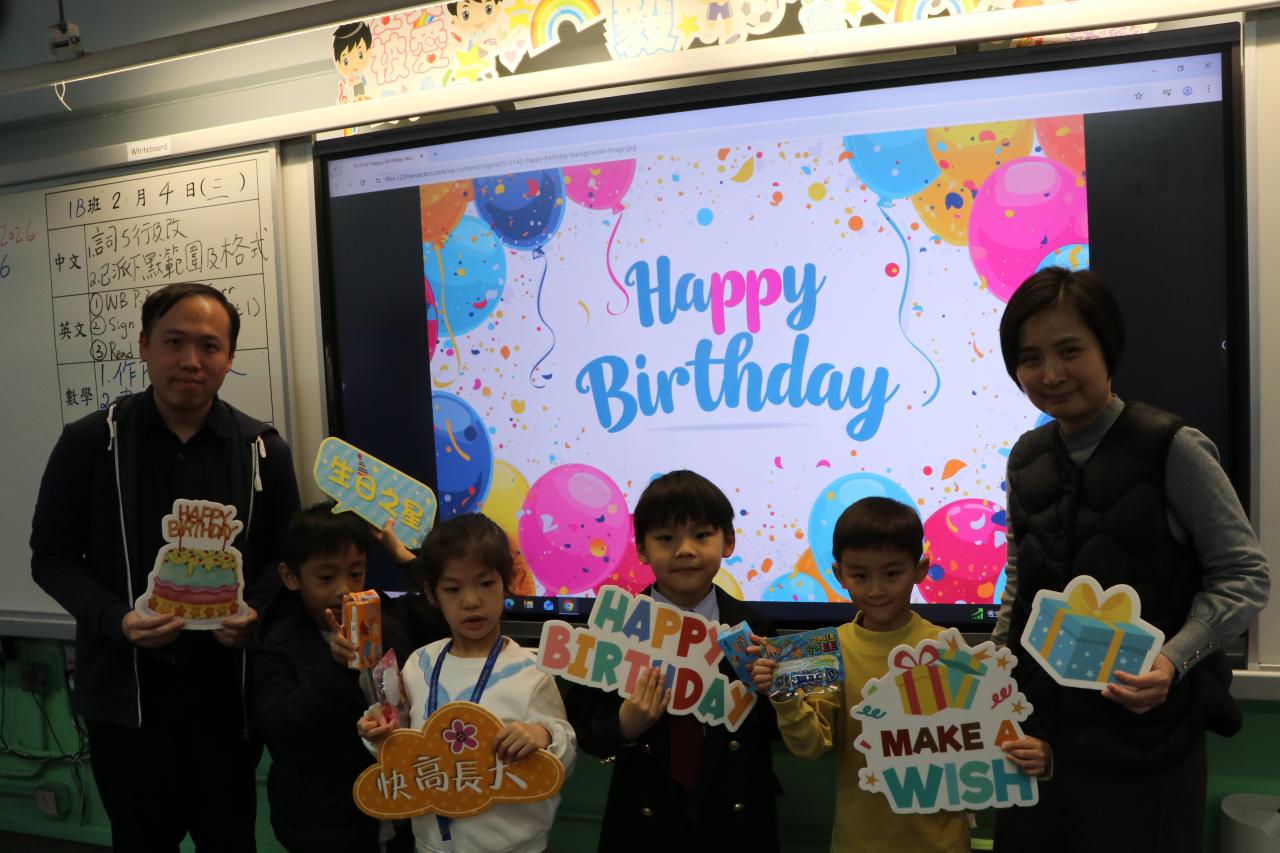 2026-02-04 為營造正向愉快的班級氣氛,促進師生關係與校園關愛文化,本年度第一次「幸福滿校園生日會」於2026年2月5日學生培育課舉行,為12月至3月生日的同學慶祝。當日生日之星可穿著喜愛服飾回校參加,分享喜悅,學校亦會送上生日禮物及祝福,讓幸福洋溢全校! 公民教育活動