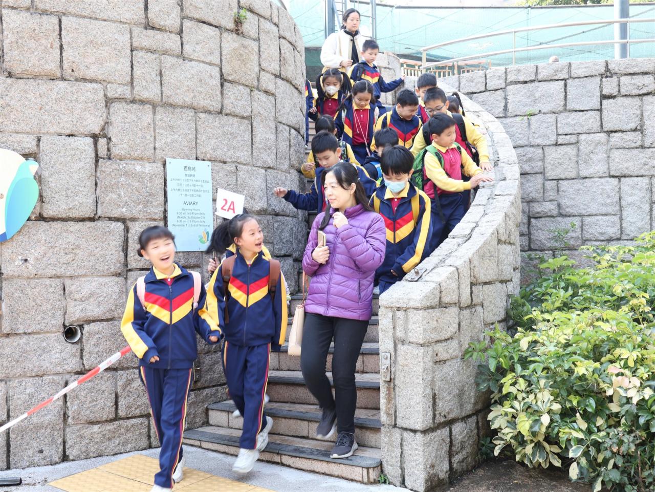 小二學生先在旅遊車上遊覽油尖旺社區,再進入九龍公園參觀,體驗芳草碧綠、水聲潺潺的悠閒之境。