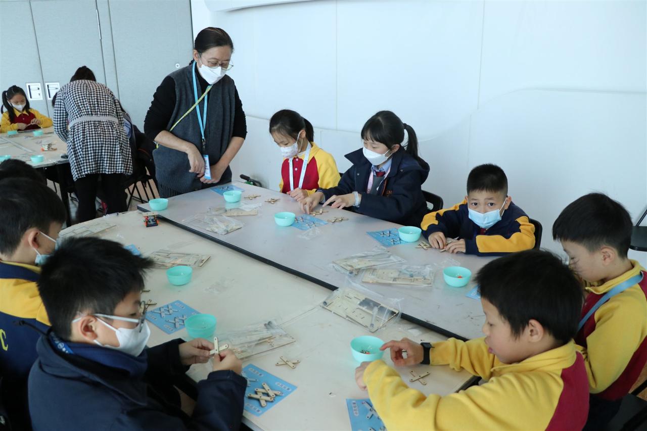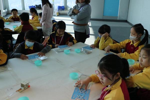 三年級同學到訪天際100參與液壓升降台工作坊,學生透過製作模型學習液壓推動原理,提升學生對科學的認識。