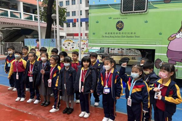2024-02-02 學生們登上「哈樂車」,學習有關生活教育的知識。在這個活動中,學生們學習了關於身體知識、食物營養、藥物知識以及社交情緒學習這四個不同範疇的知識。透過以故事為基礎的課程,學生們培養了健康生活觀念和正確使用藥物的態度。 公民教育活動
