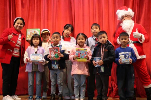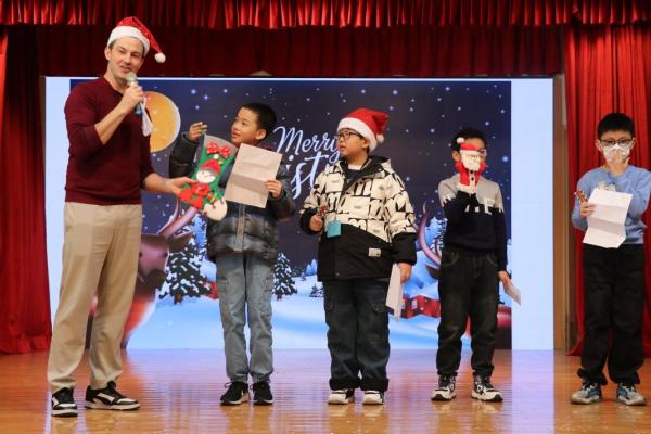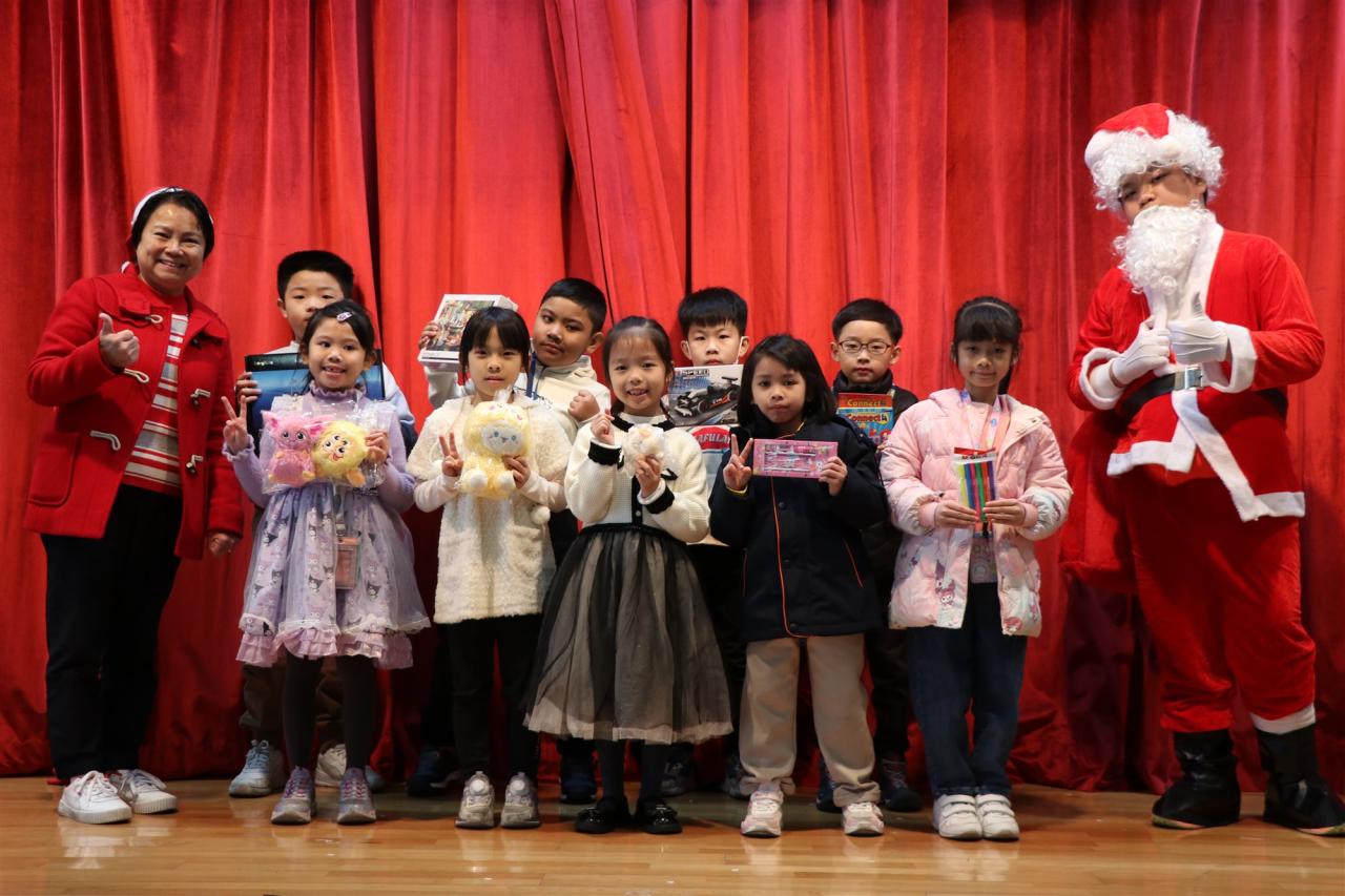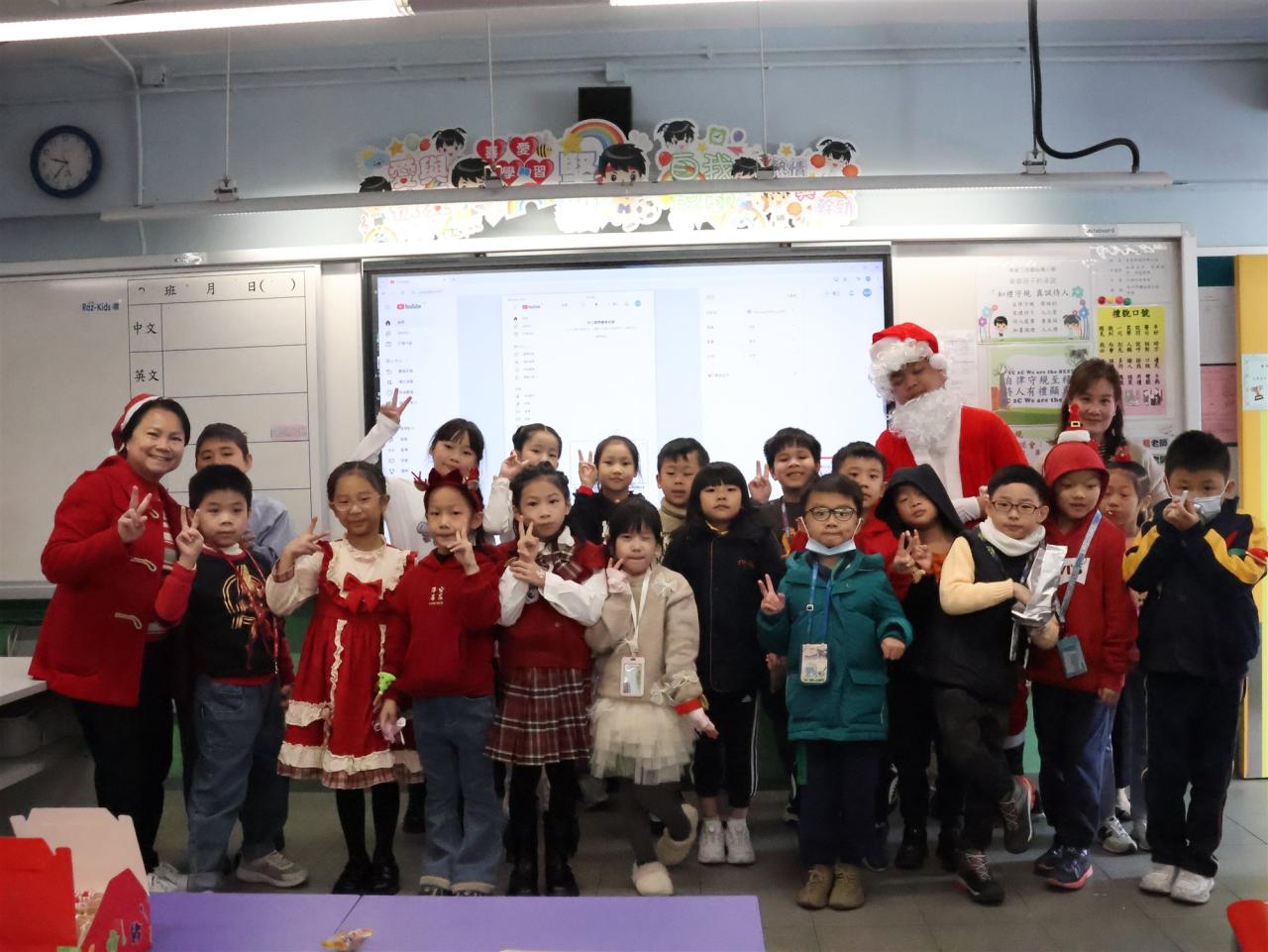 全校同學參與學校舉辦的聖誕聯歡會,當中有古箏班、合唱團、小提琴班同學及魔術師表演,還有聖誕老人與眾同樂,校長及老師們更送出大量聖誕禮物,讓學生歡度一個愉快的早上。