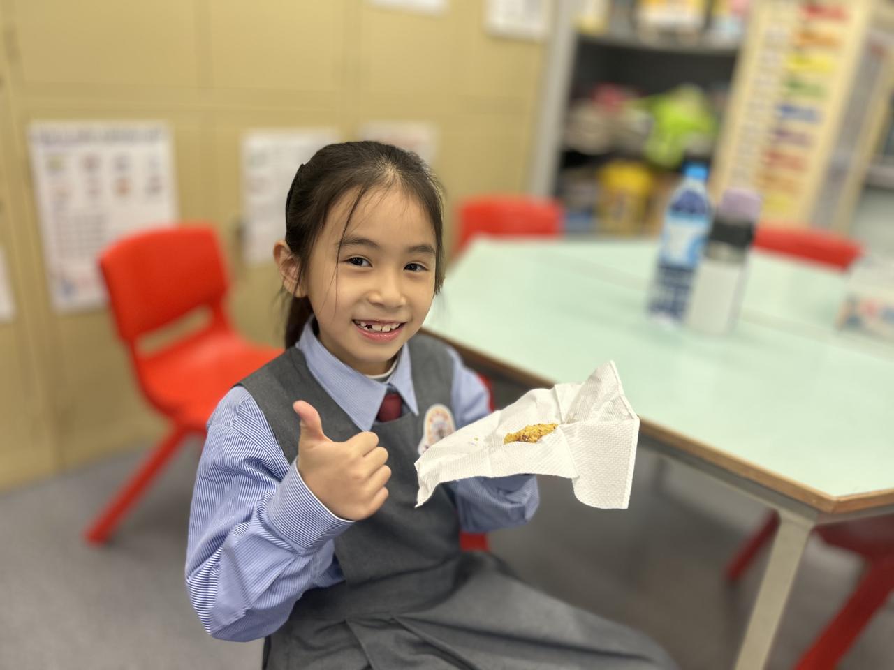 透過「邊做邊學」(Learning by Doing)的方式,孩子們不僅掌握了實用的英語知識,還在歡笑聲中感受到學習的樂趣。當他們品嚐到親手製作的蛋糕時,臉上都洋溢著滿滿的成就感和笑容!