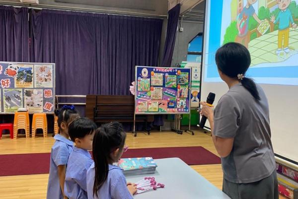 10月17日是一年級跨課程主題學習「我愛校園」的總結會。是日除了有「為我們服務的人」橫額展示、圖書推介,還邀請了油尖旺區警民關係組學校聯絡主任鄭惠琼警長親臨本校為小一學生作分享講座,講座提升了學生的公民意識,令學生獲益良多。 整個跨課程主題學習為學生提供了多元、適切和有意義的學習經歷,拓寬了學生的學習基礎和視野,讓學生由關心身邊人、身邊事,再到關心社區、感恩他人,進而培養其成為守法好公民。