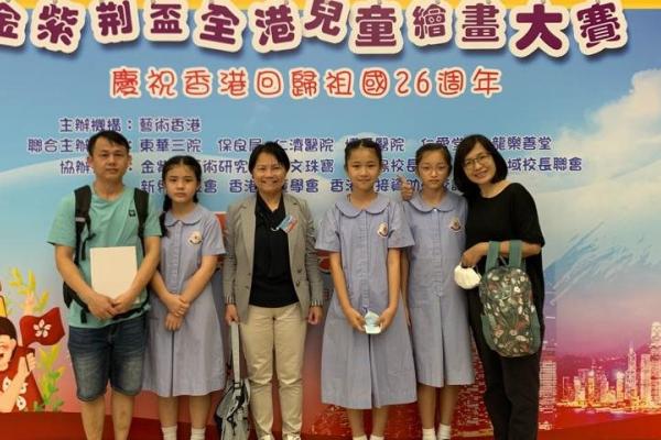 本校參加由藝術香港主辦的「金紫荊盃全港兒童繪畫大賽2023」,4B石王悦、4C程晴、5E黃心知獲優異獎。