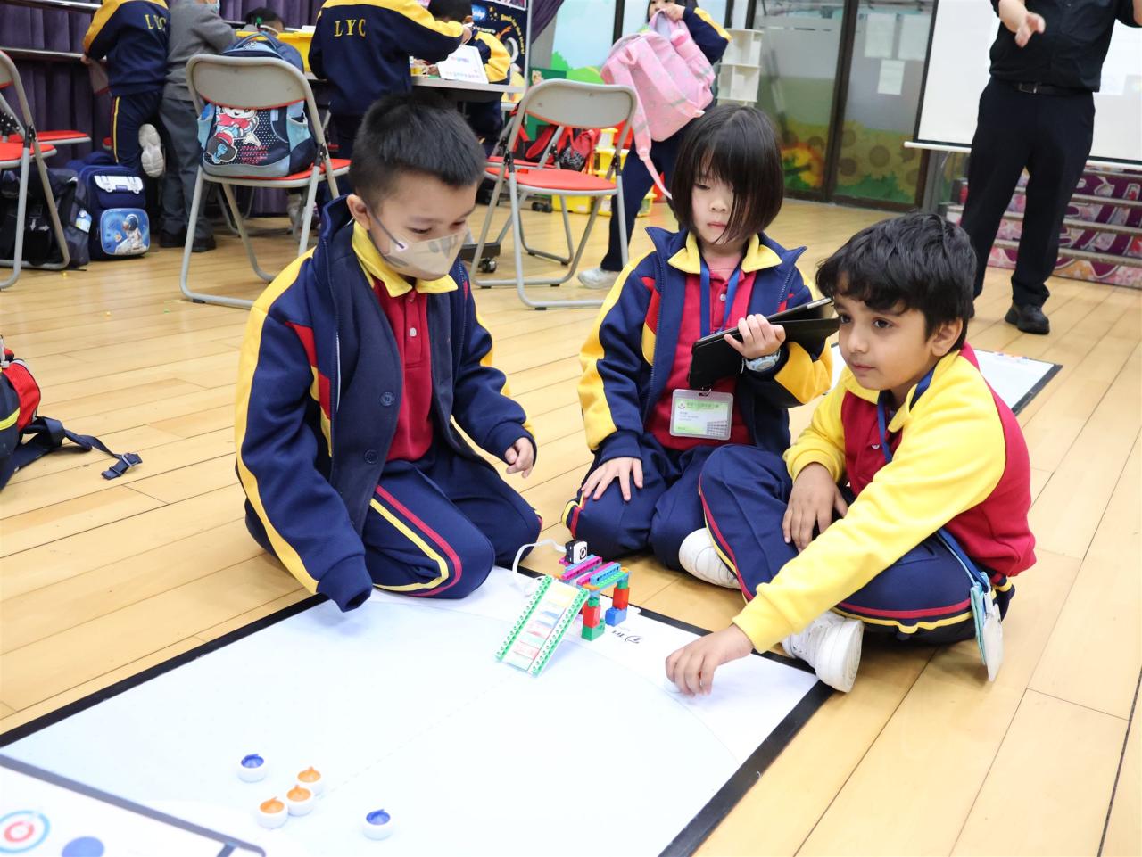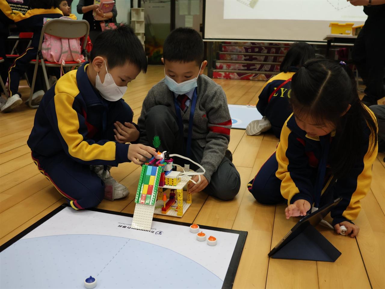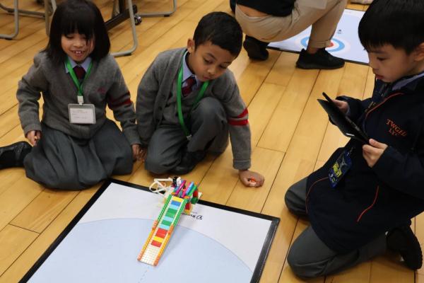 一年級同學運用LEGO套件認識編程的基礎知識,同時透過組裝LEGO 積本裝置,挑戰冰壺遊戲,各同學期望在遊戲中爭取佳績。