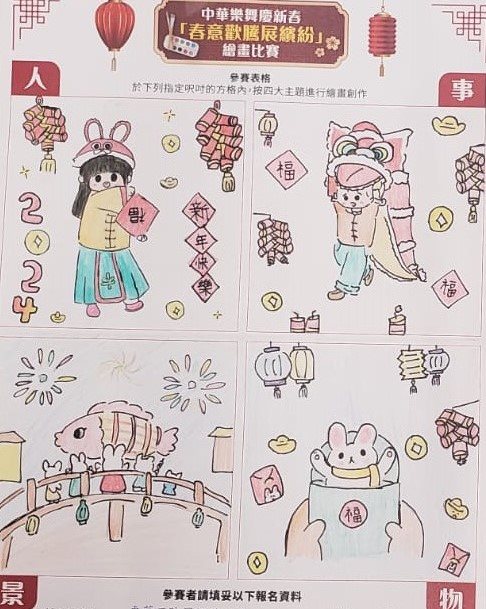 本校參加由萬鈞教育機構主辦的中華樂舞慶新春「春意歡騰展繽紛」繪畫比, 6D王思喬獲得優異獎。