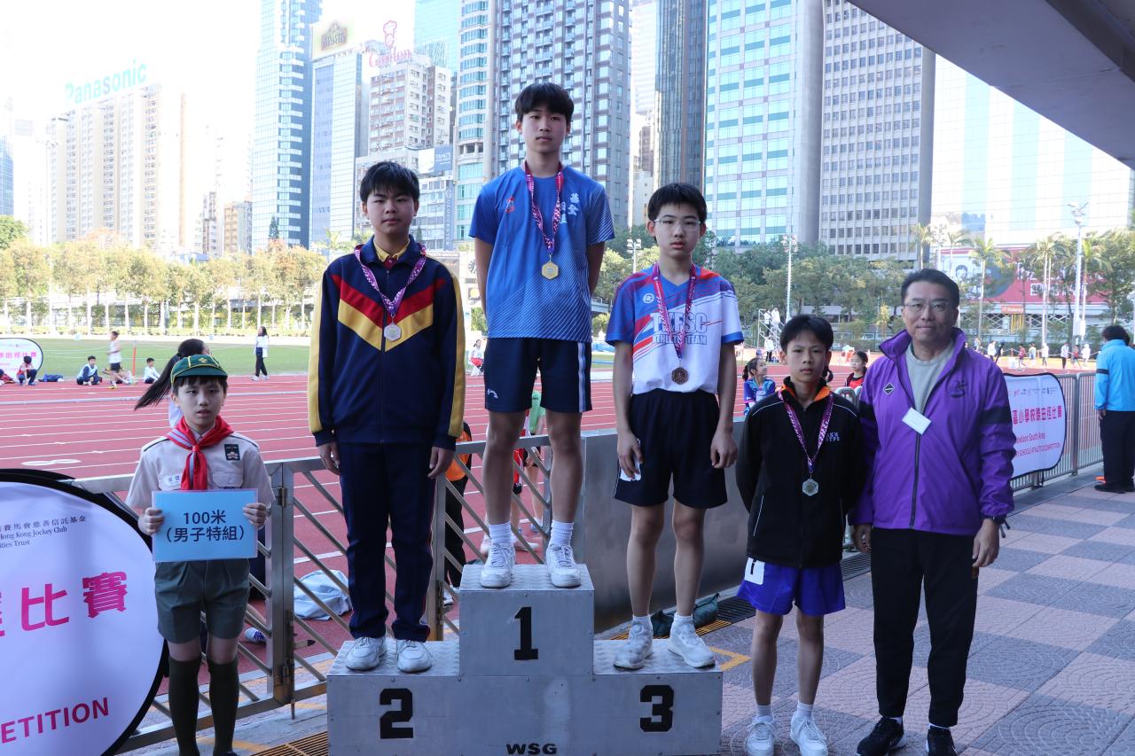 2026-01-14 本校田徑校隊於2026年1月14日出戰九南學界田徑比賽,6D班龐宇鈞同學取得男子特組一百米亞軍、5B班蔡旻兆同學取得男乙一百米第7名,其中龐同學更有機會代表九南區參與全港學界比賽。男子特組一百米亞軍6D班龐宇鈞同學男乙一百米第7名5B班蔡旻兆同學 所有 體育
